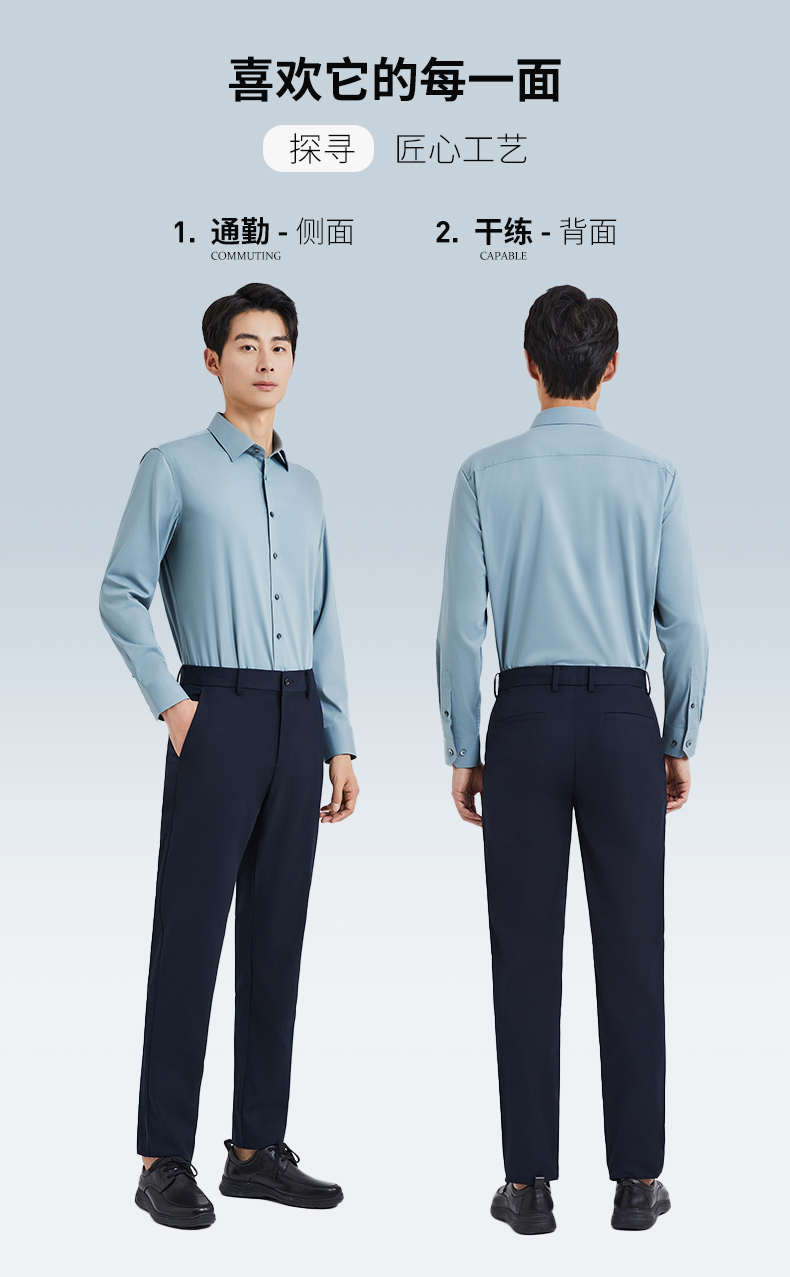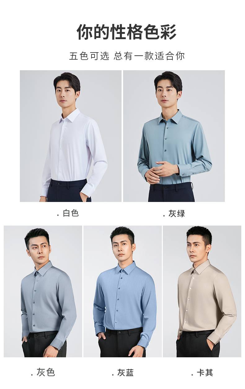 【莫代尔】圣得西男装秋季新款弹力舒适长正装衬衣2412952017A