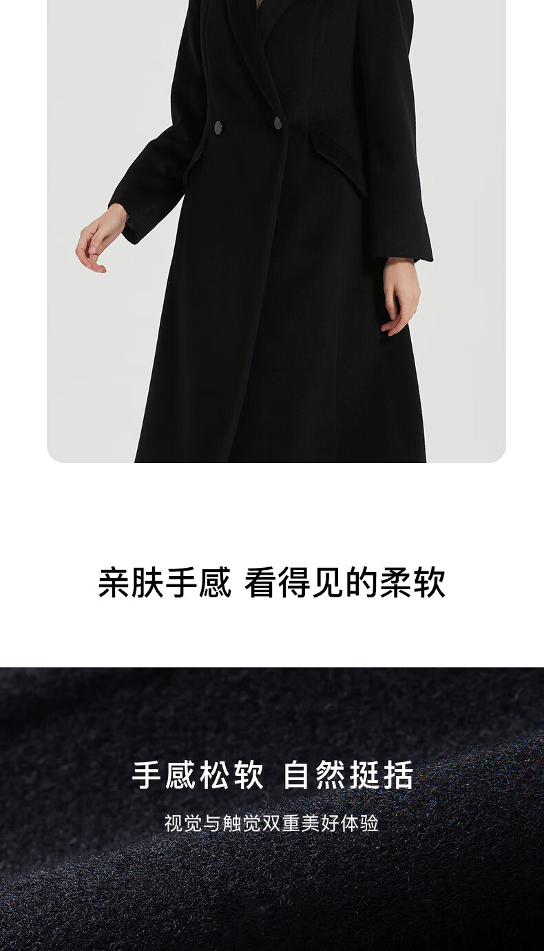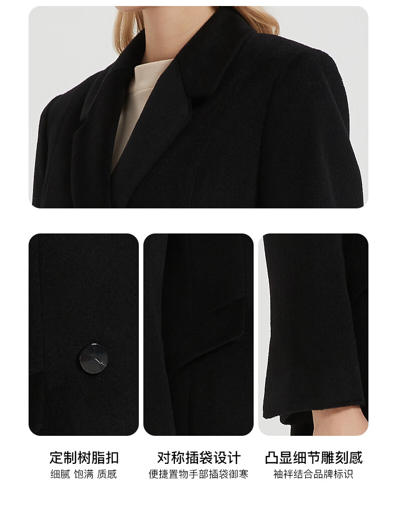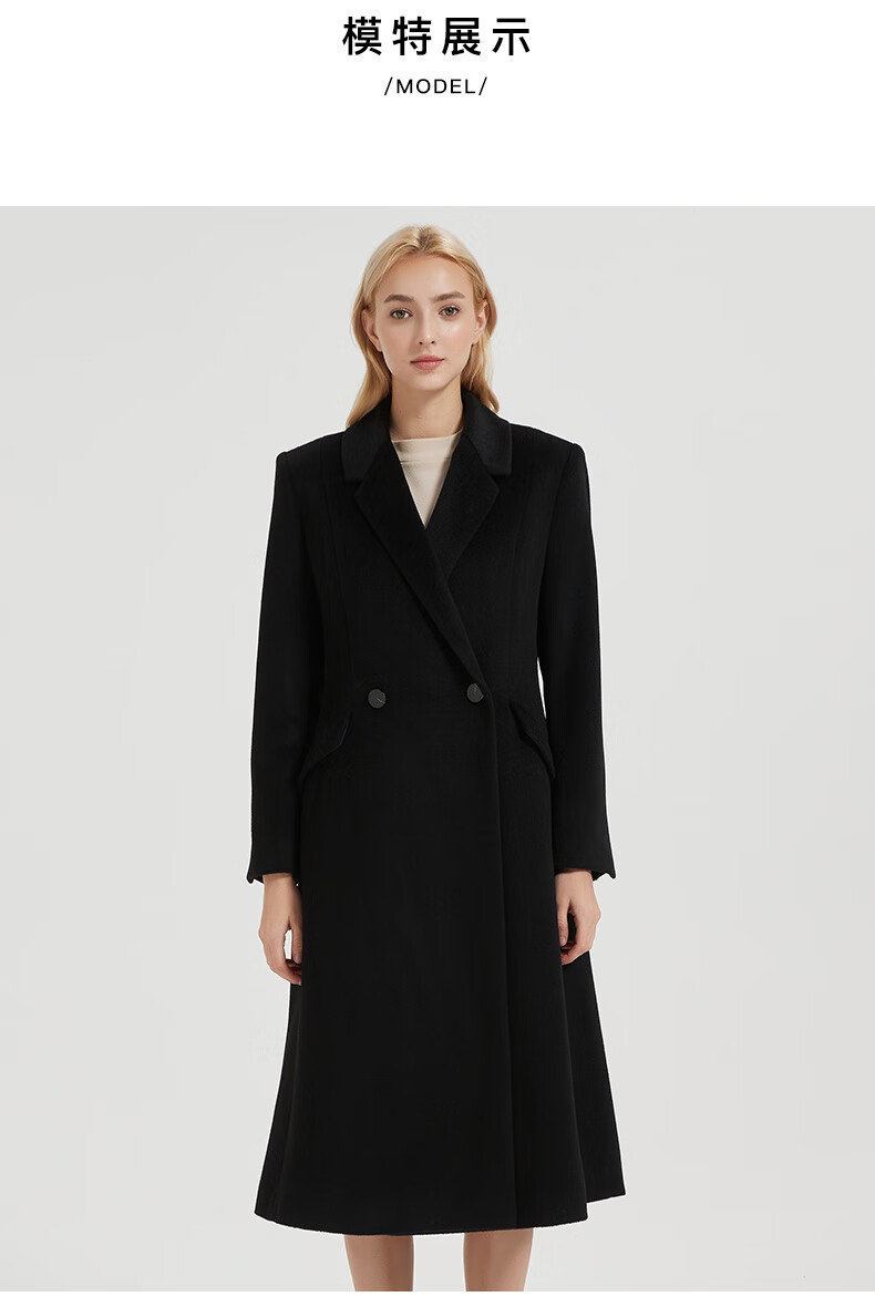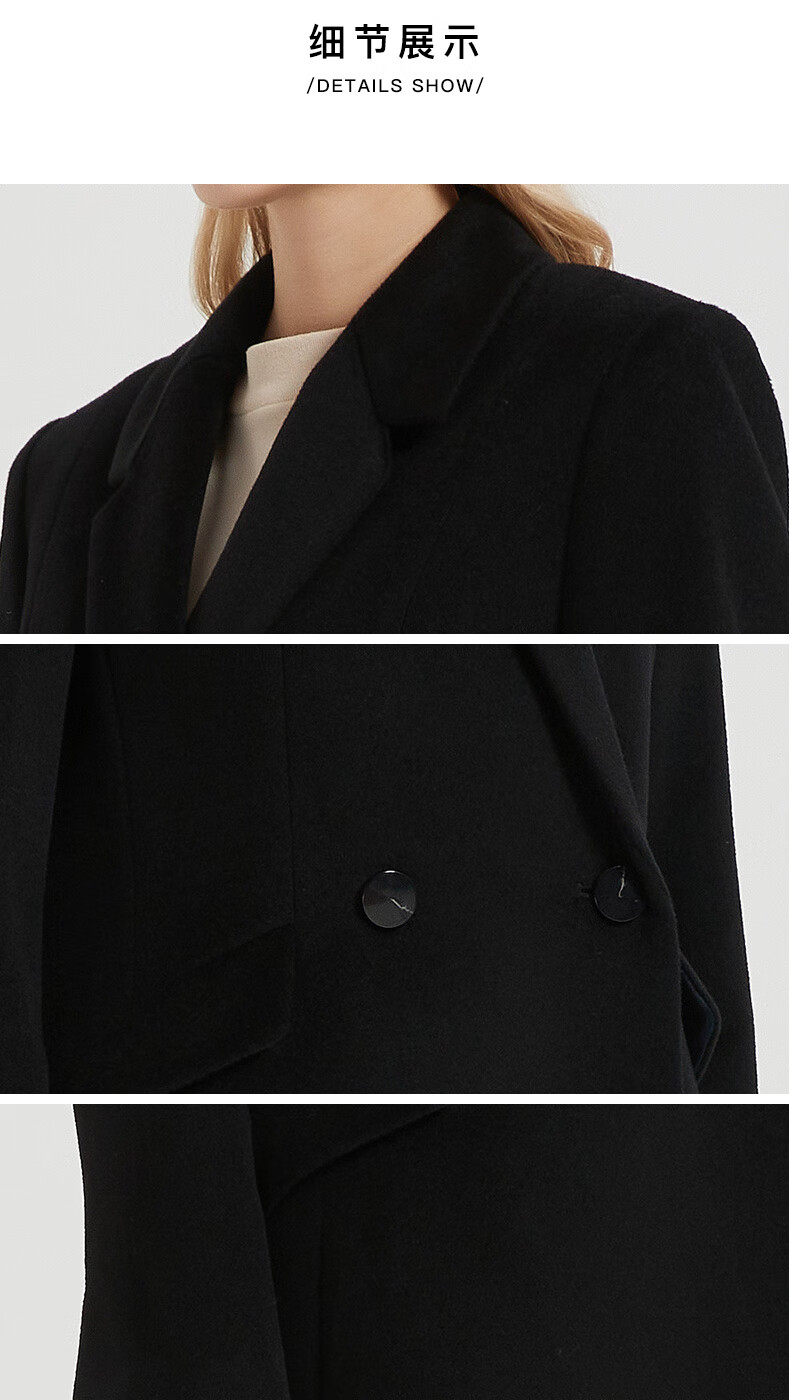 皮尔卡丹女装大衣双面呢羊绒中长款商务通勤毛呢外套P1486C1992F2