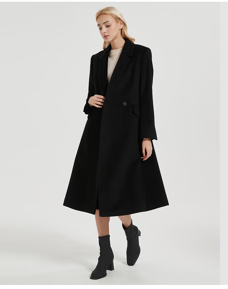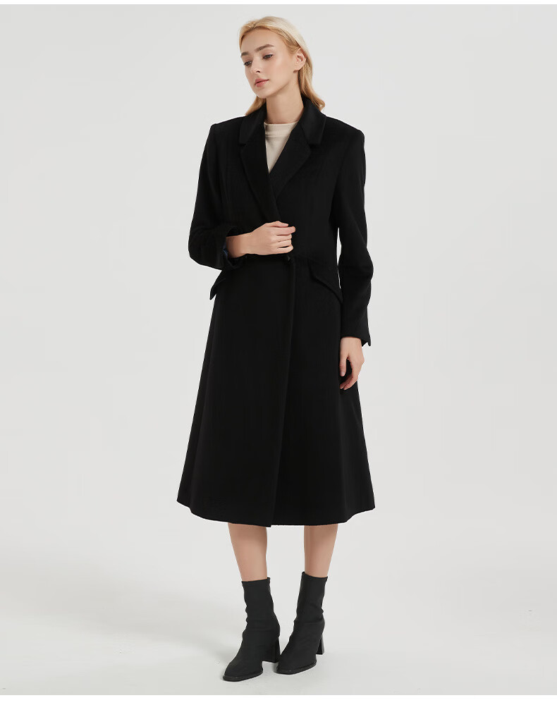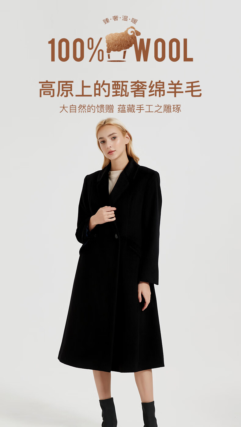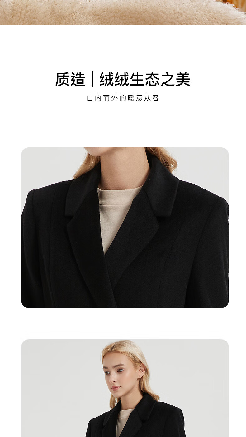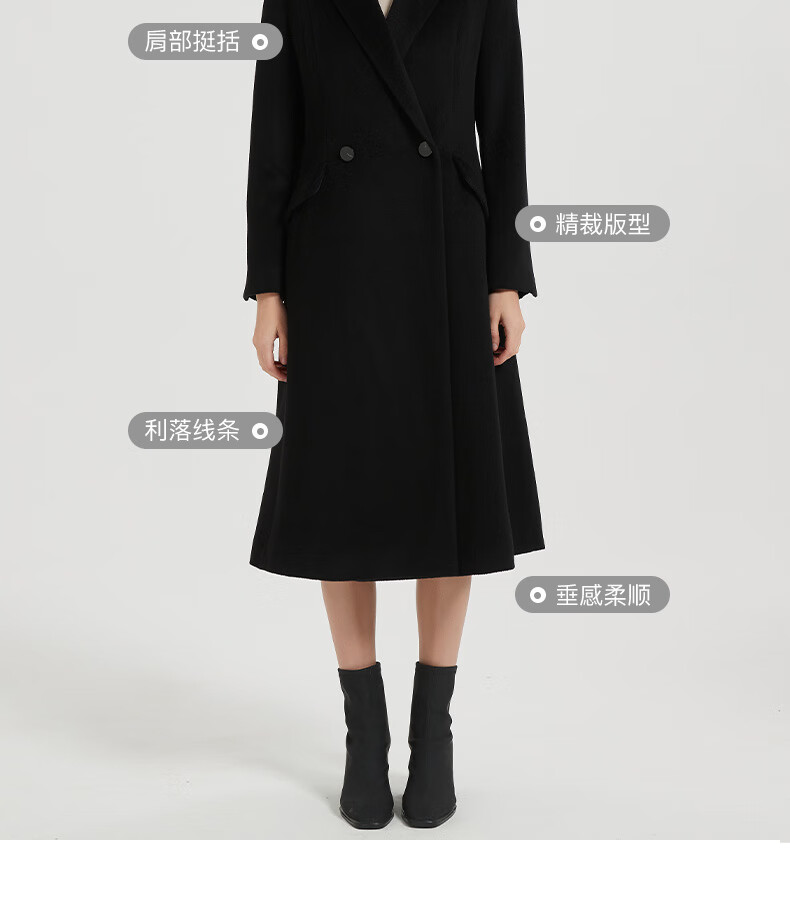 皮尔卡丹女装大衣双面呢羊绒中长款商务通勤毛呢外套P1486C1992F2