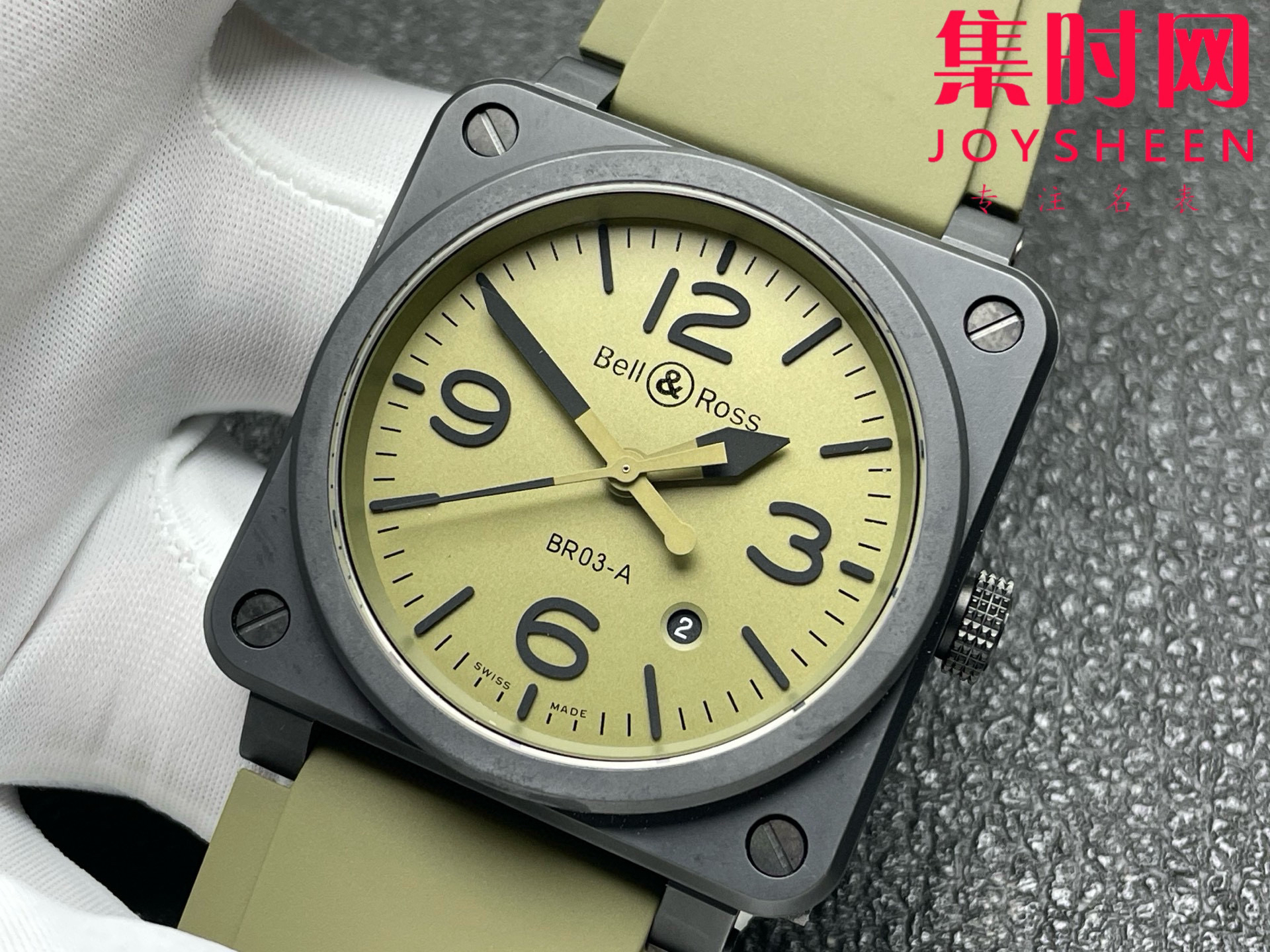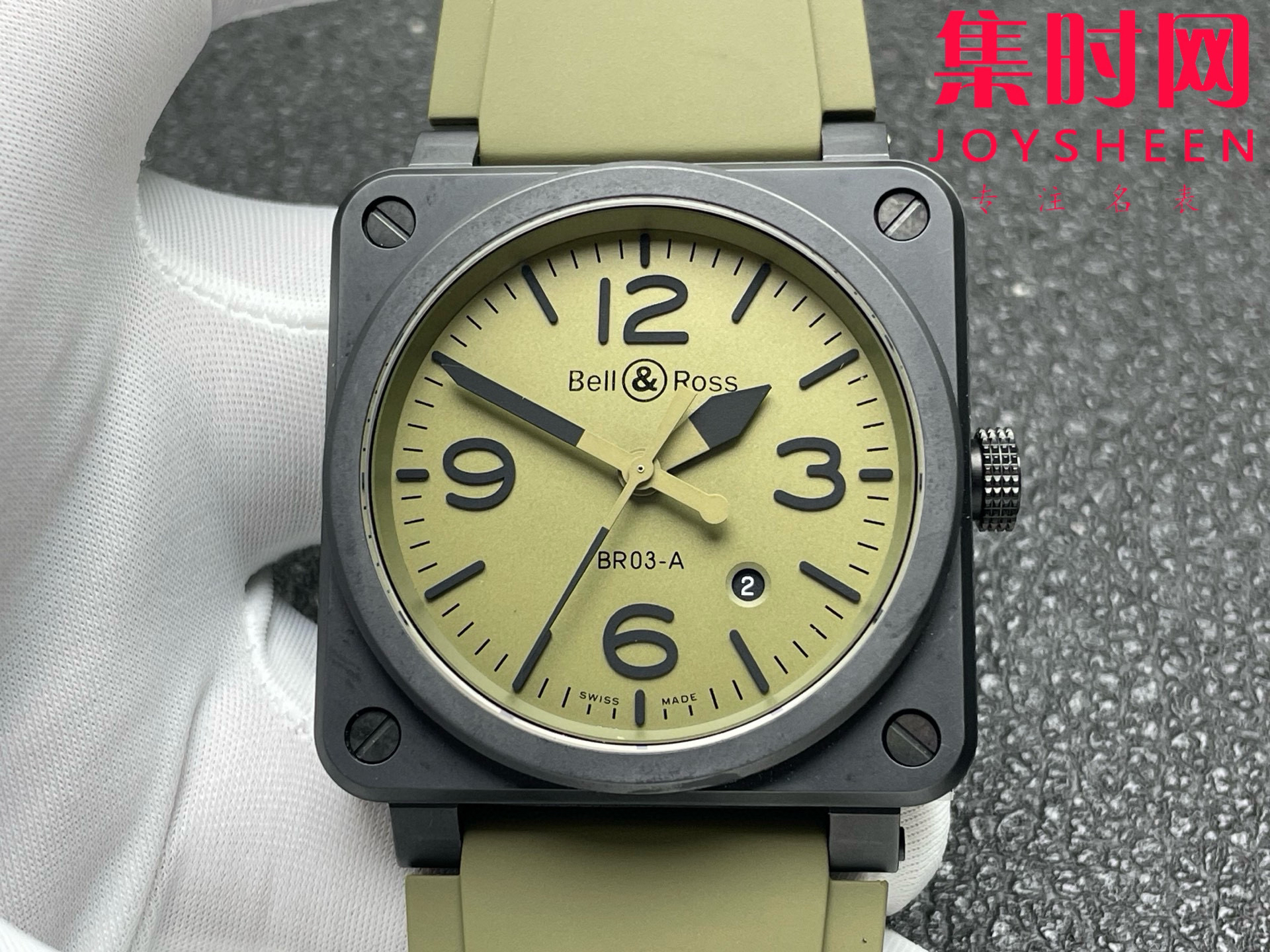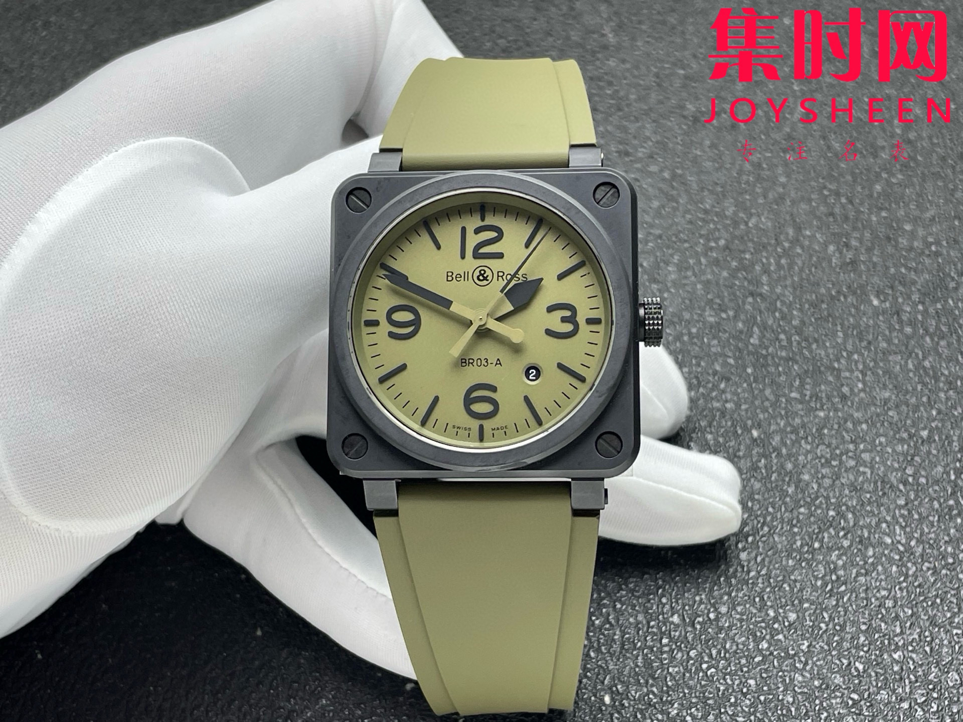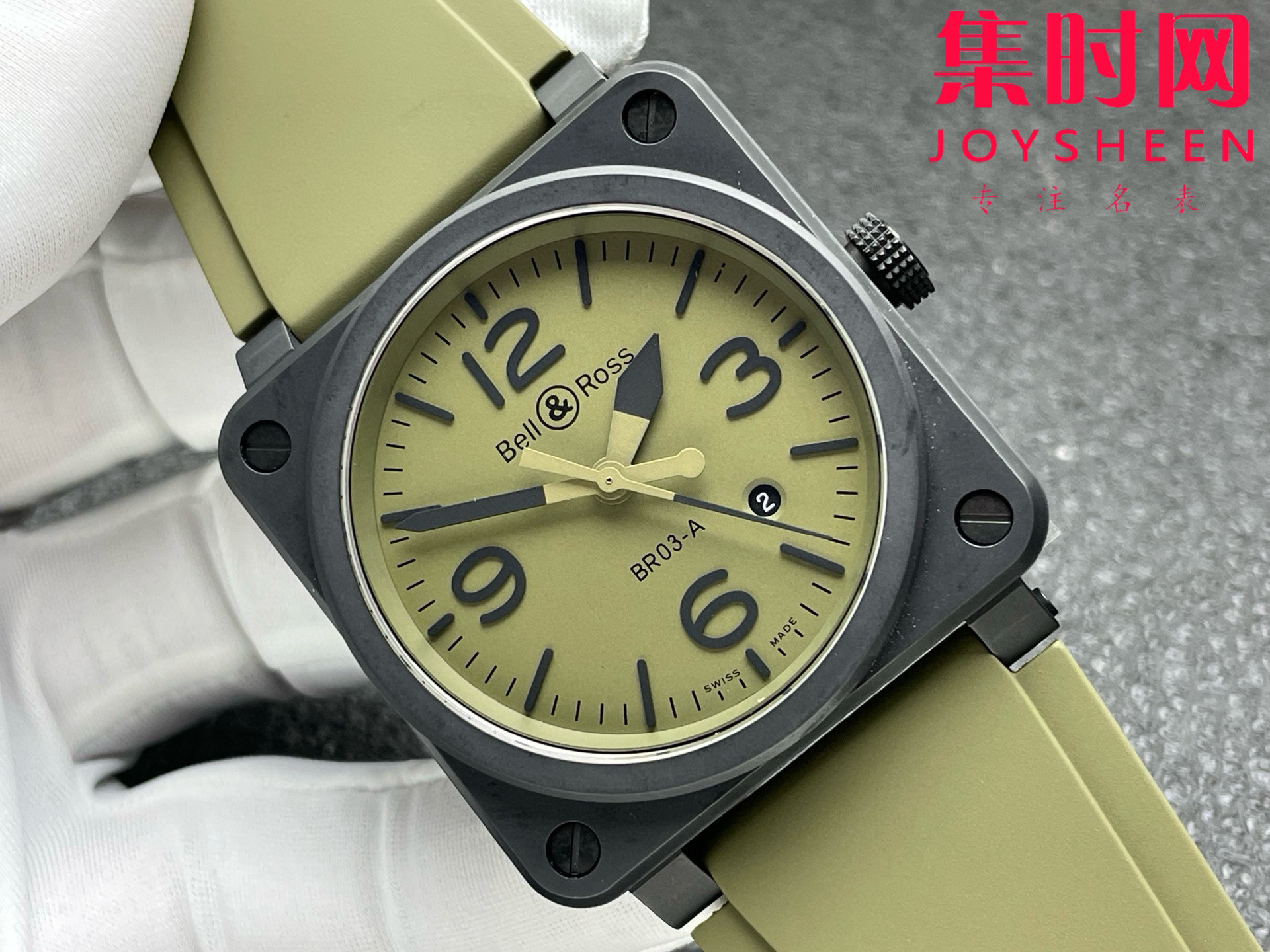 BR-柏莱士INSTRUMENTS系列BR0392 青铜壳BR-0392 “牛油果绿” 方形男士腕表 陶瓷壳搭配天然橡胶表带
