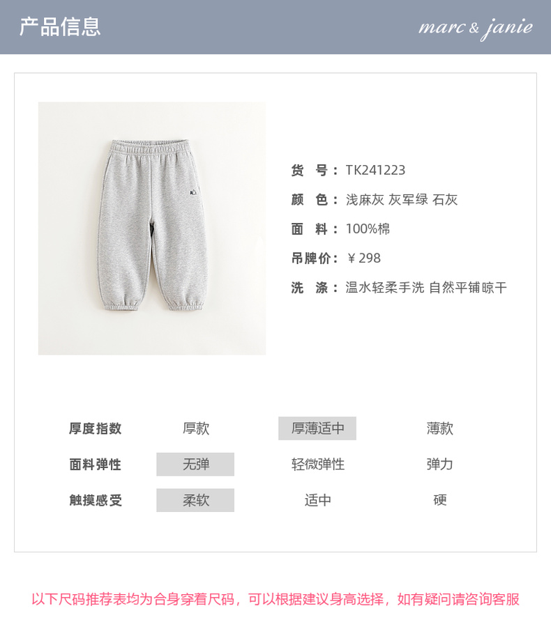 马克珍妮男童山系户外休闲纯棉束脚裤2024年秋装新款241223