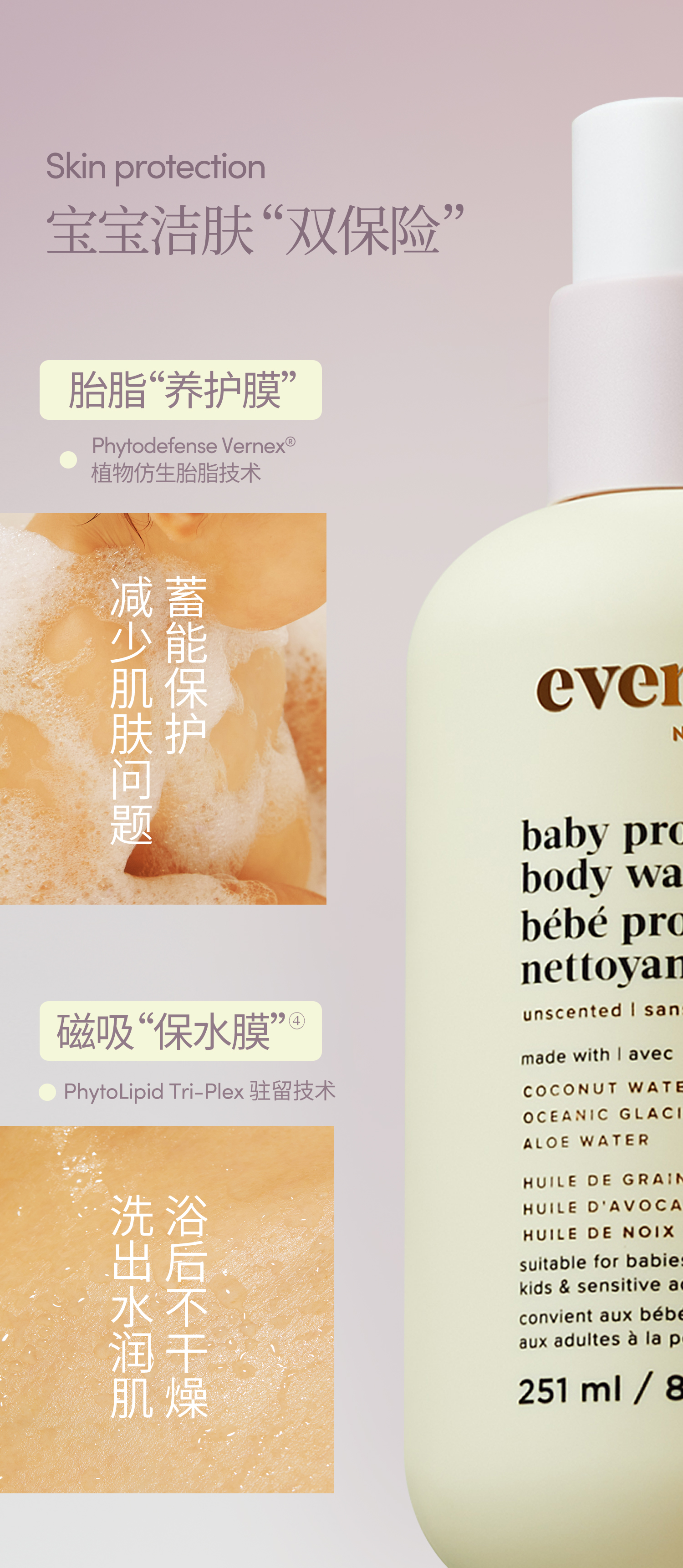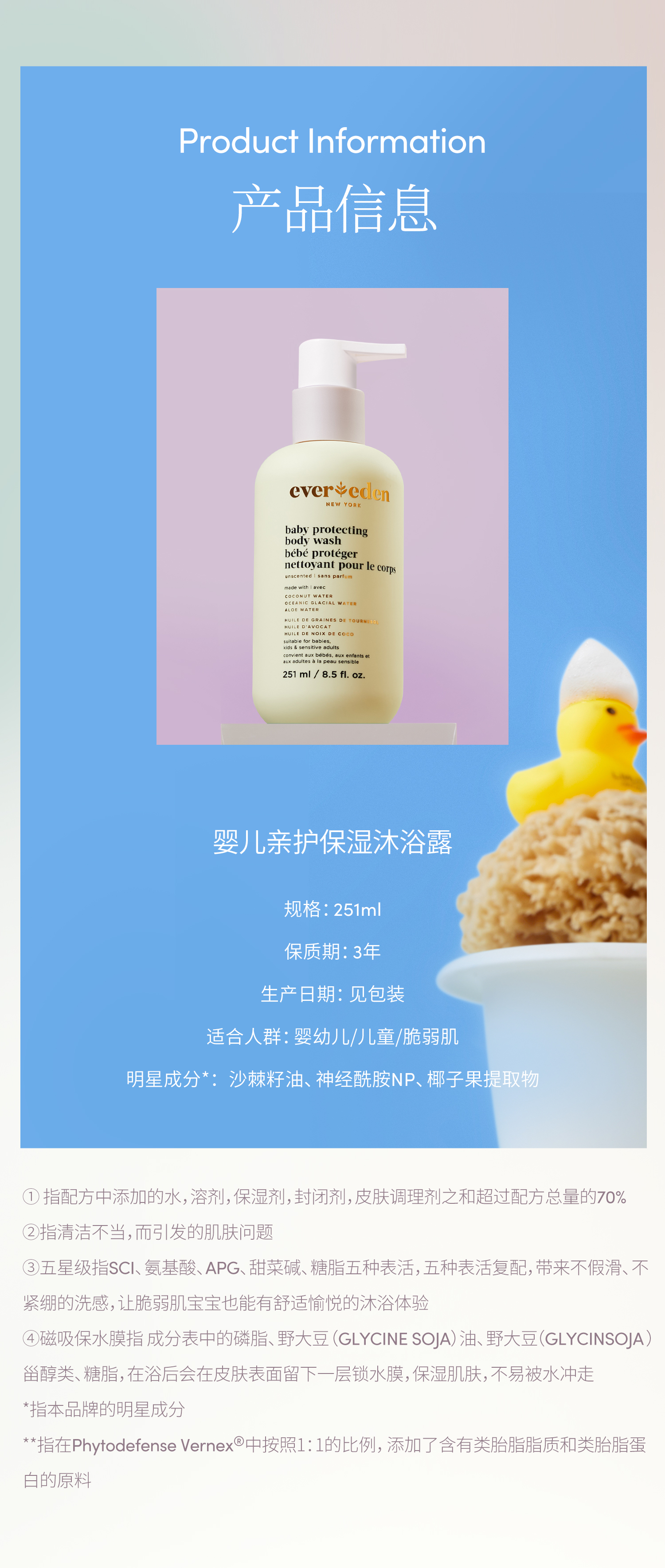 【套组】Evereden安唯伊婴儿亲护胎脂保湿沐浴露251ml*2件套