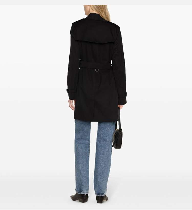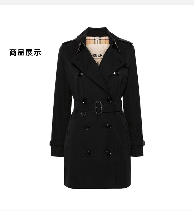 【二】BURBERRY 巴宝莉 女士双排扣中长款束带风衣 黑色 8079415 A1189