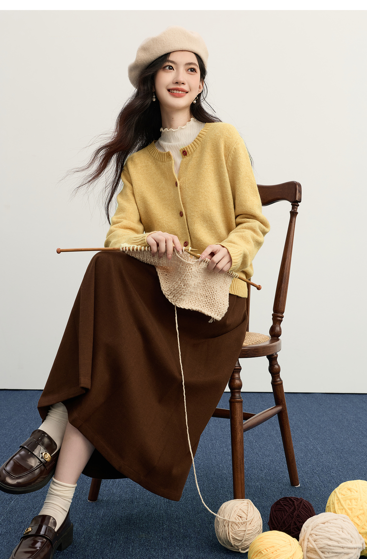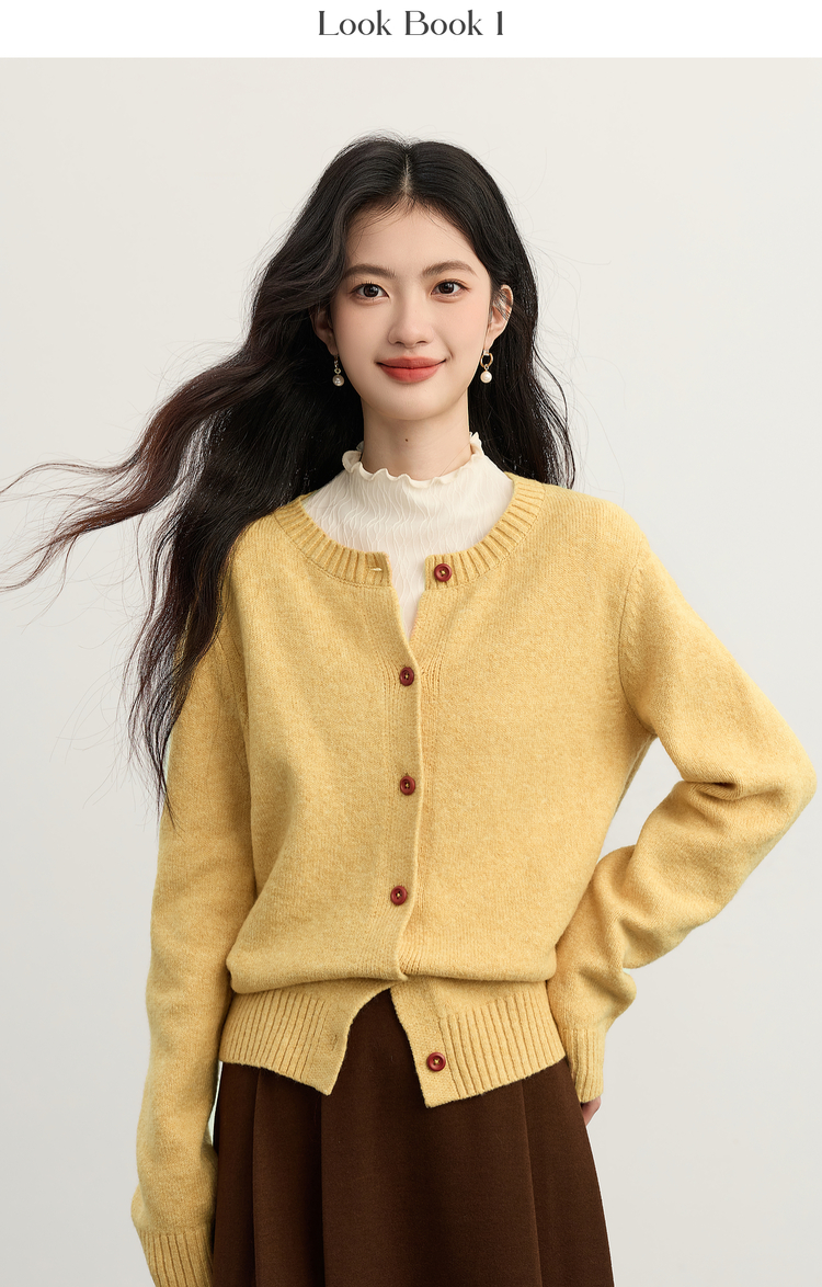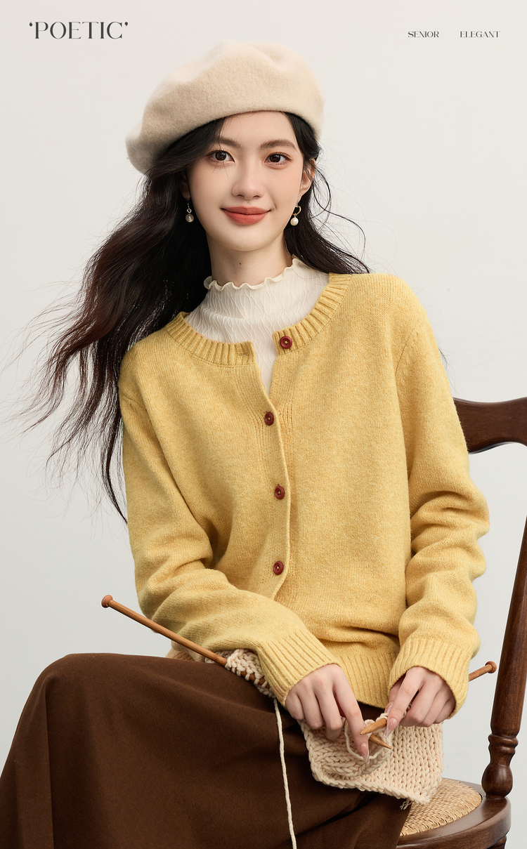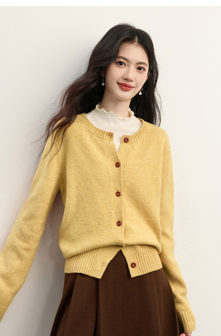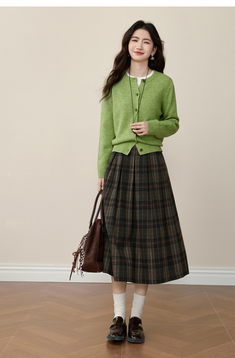 【年货节】熙世界松软慵懒绿色毛衣开衫女秋冬2025新款圆领打底针织衫短外套