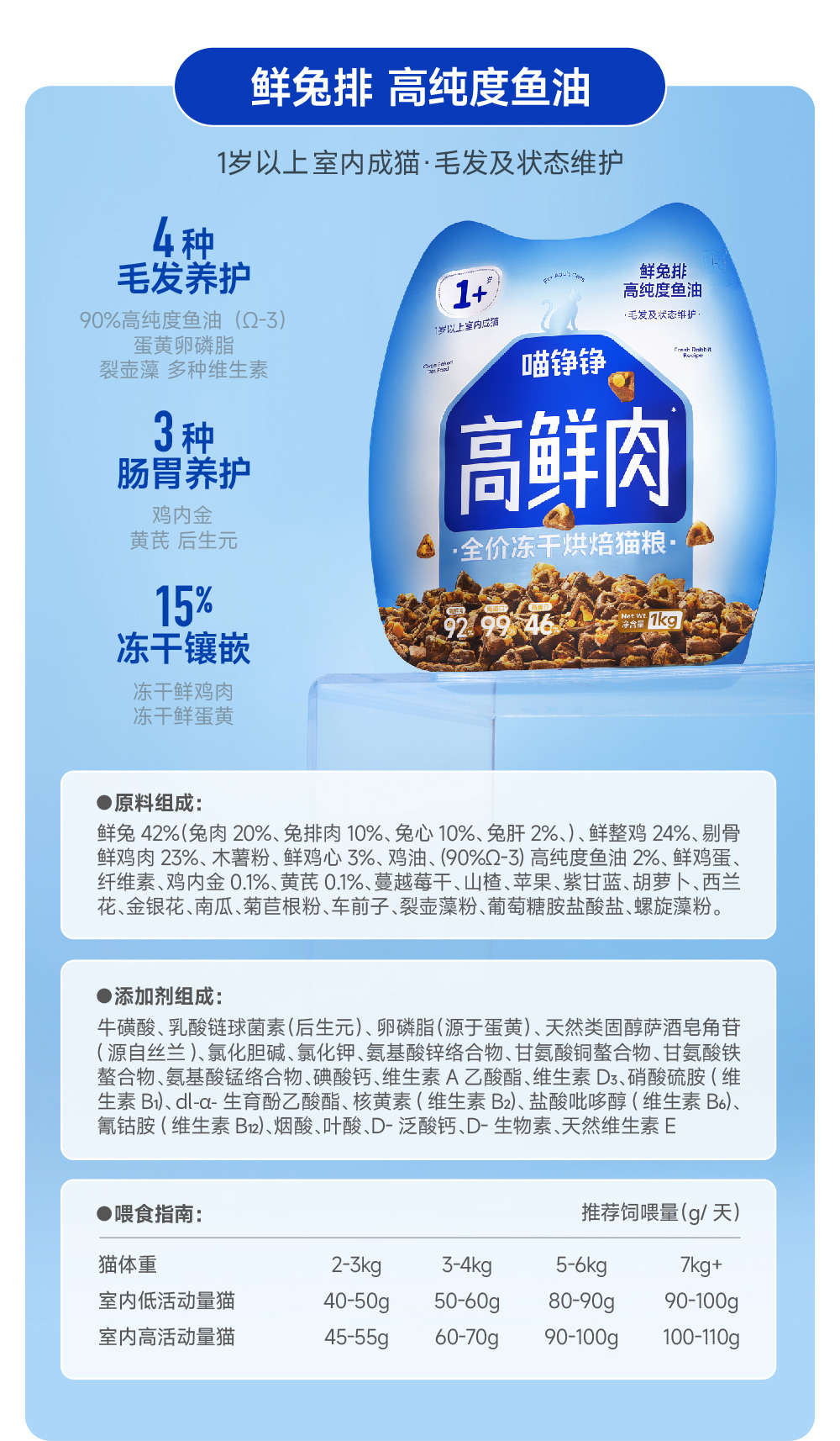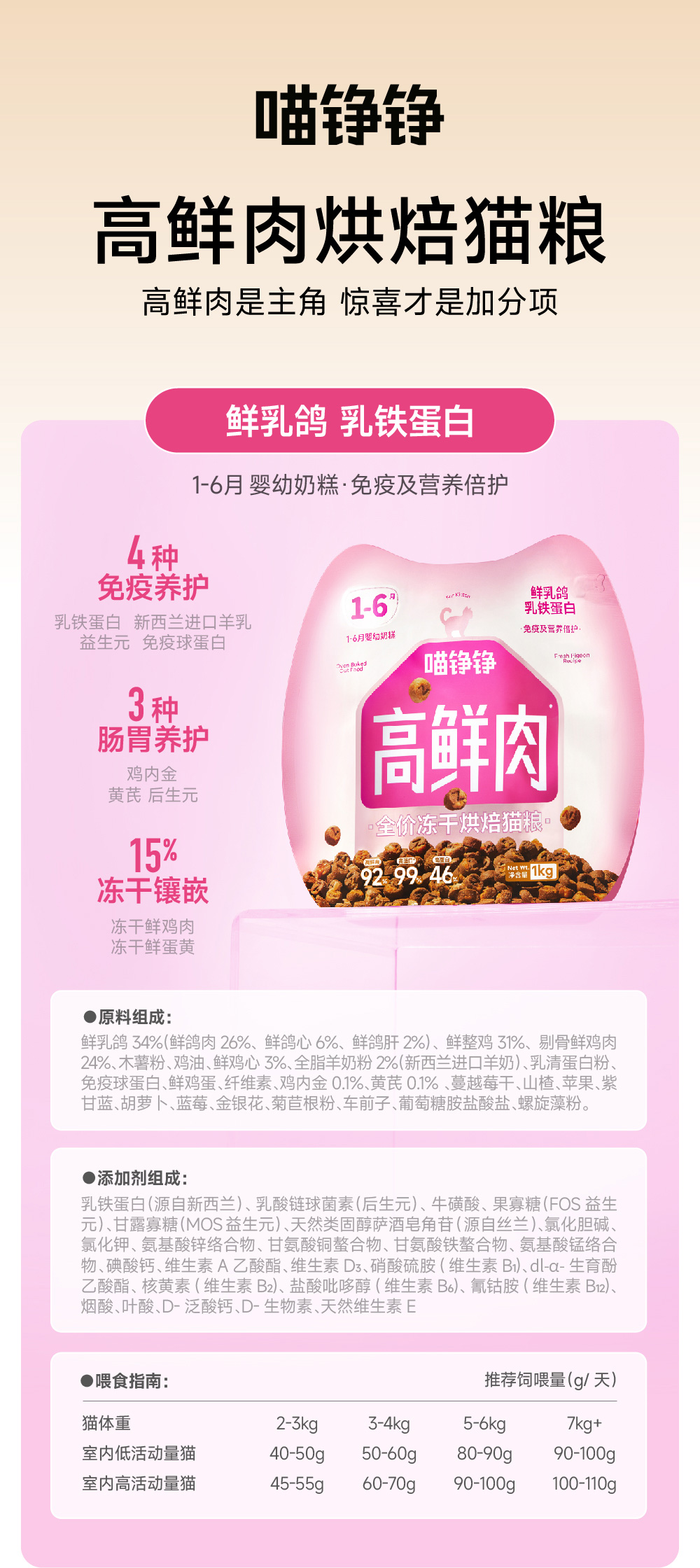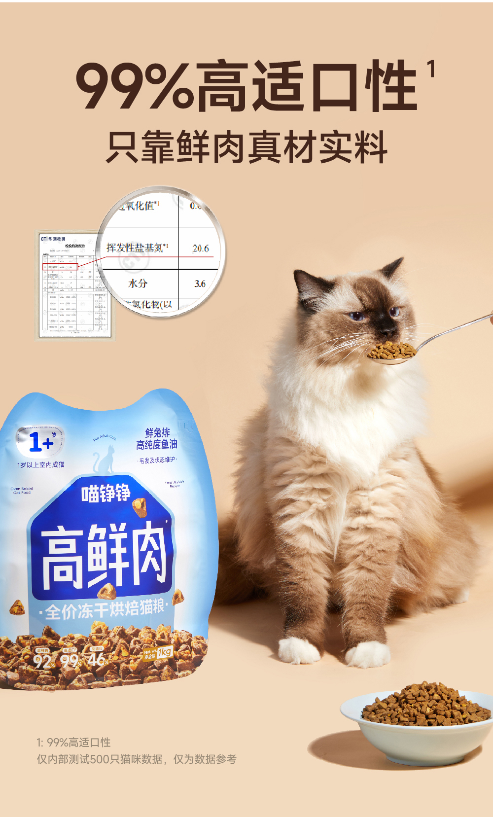 喵铮铮高鲜肉烘焙冻干猫粮 不同年龄段.定制专属营养配方1kg/包
