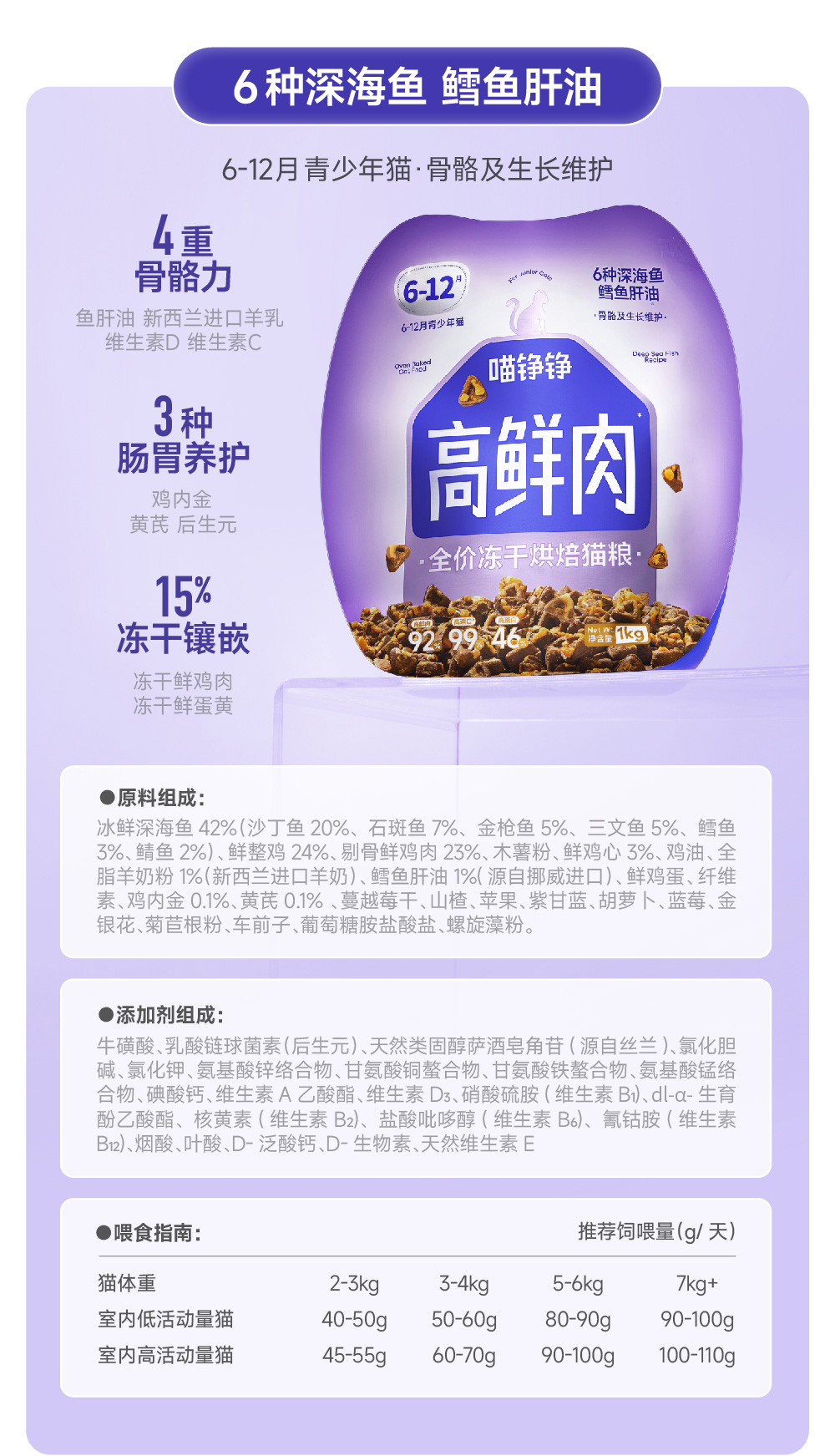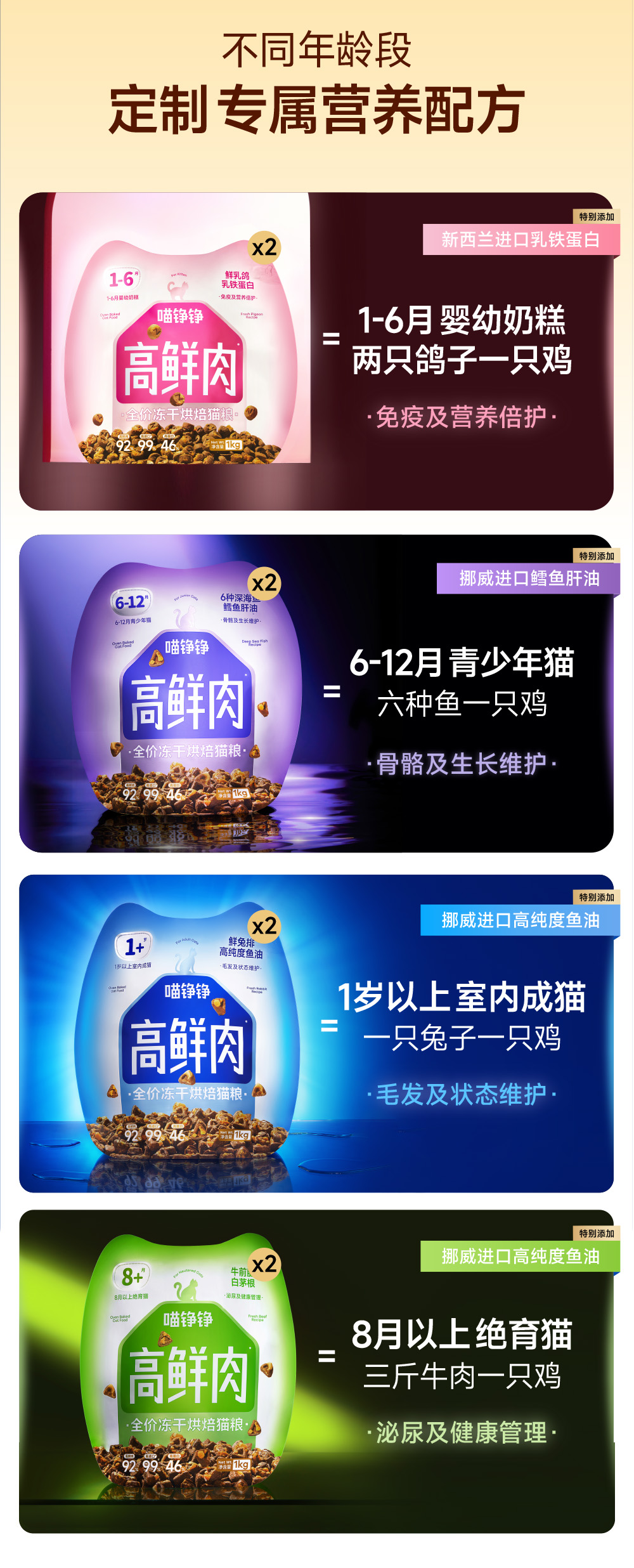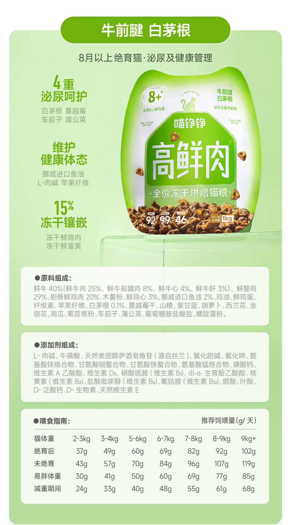 喵铮铮高鲜肉烘焙冻干猫粮 不同年龄段.定制专属营养配方1kg/包