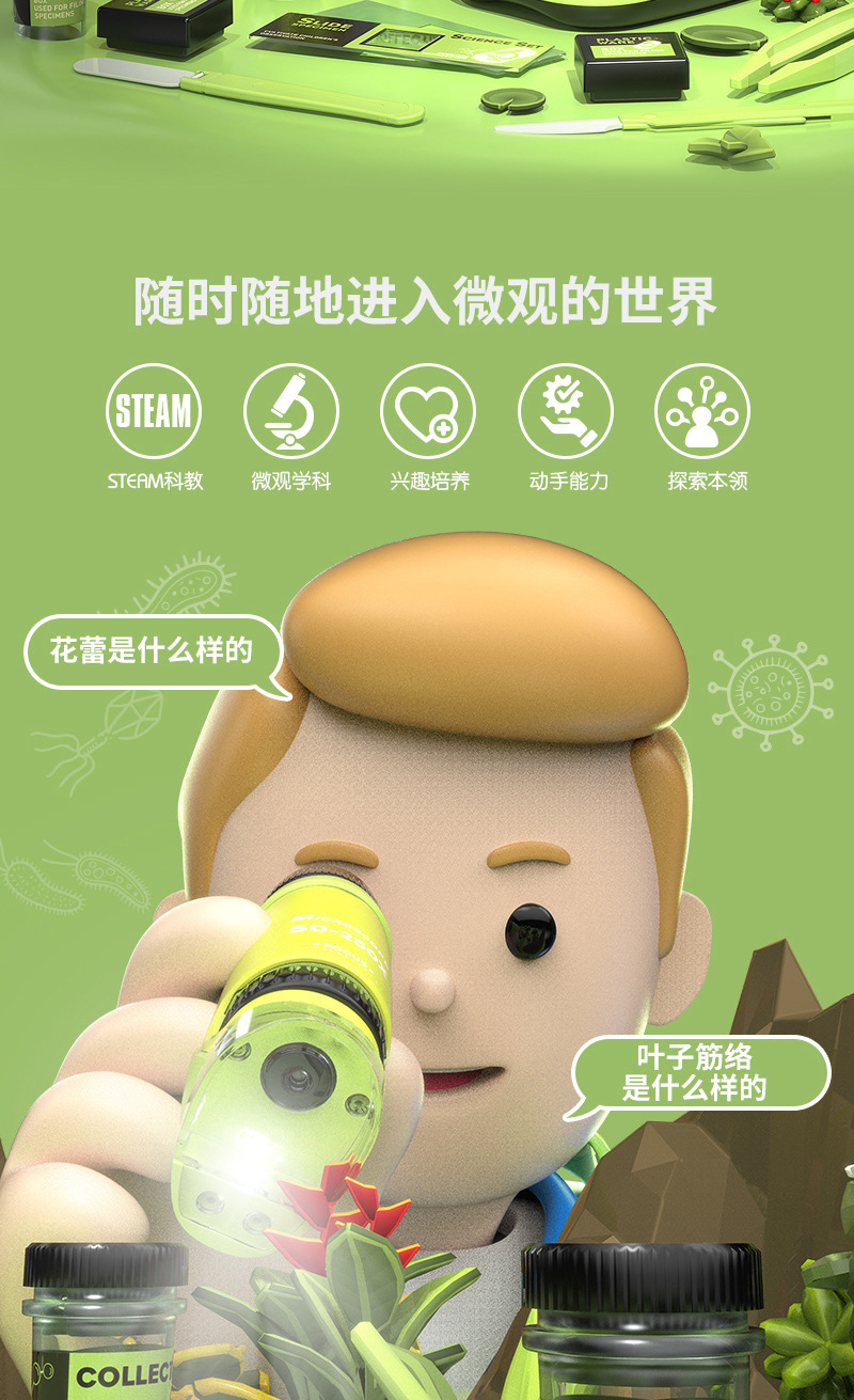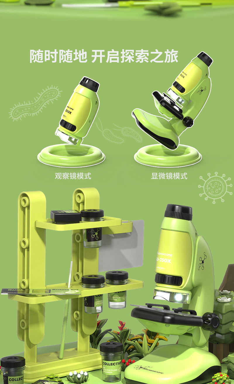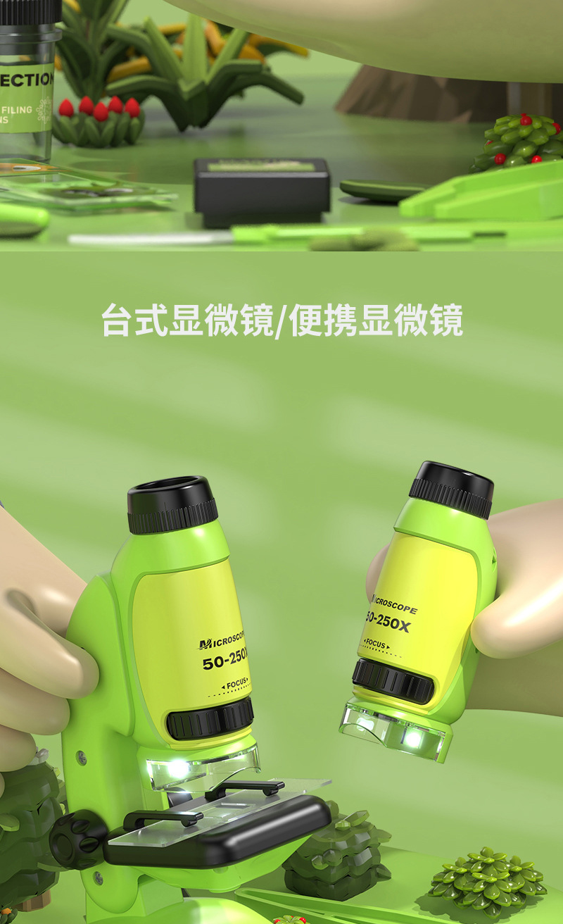 「抖音同款!手持两用,礼盒装」趣味儿童学习益智玩具 天文科学探索显微镜实验观察镜可拆卸显微镜套装玩具
