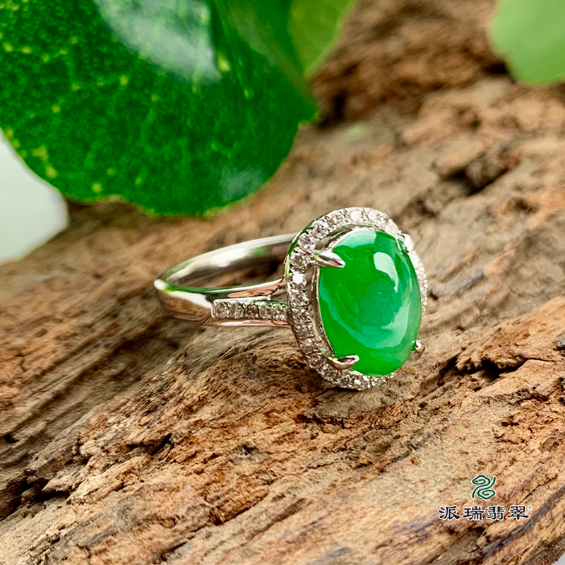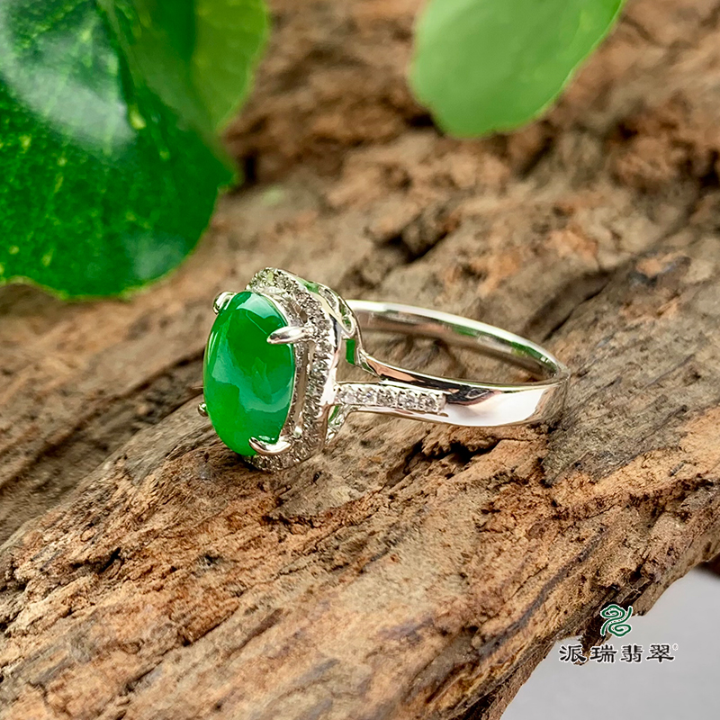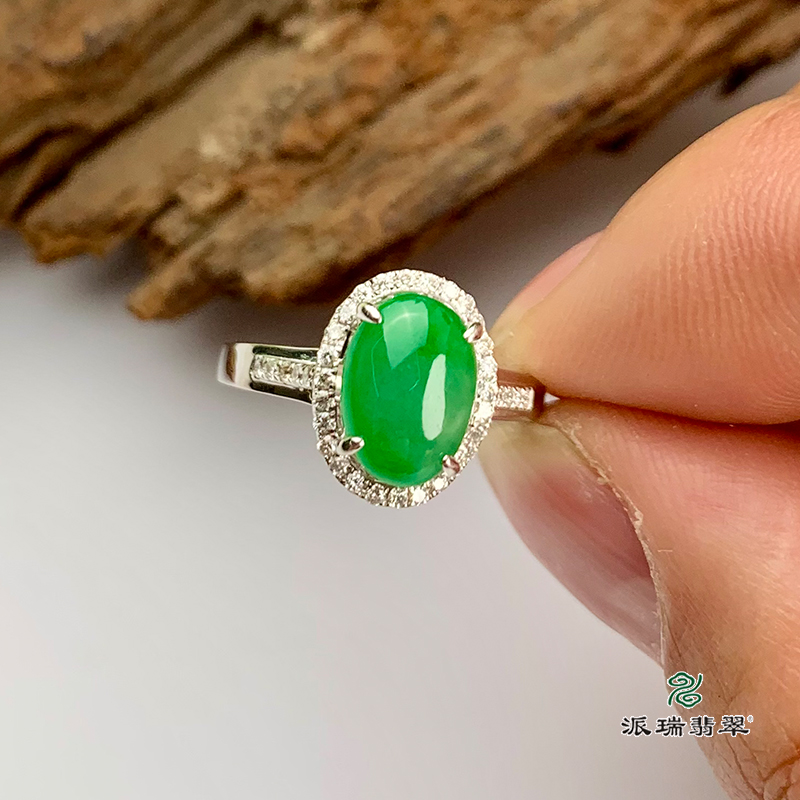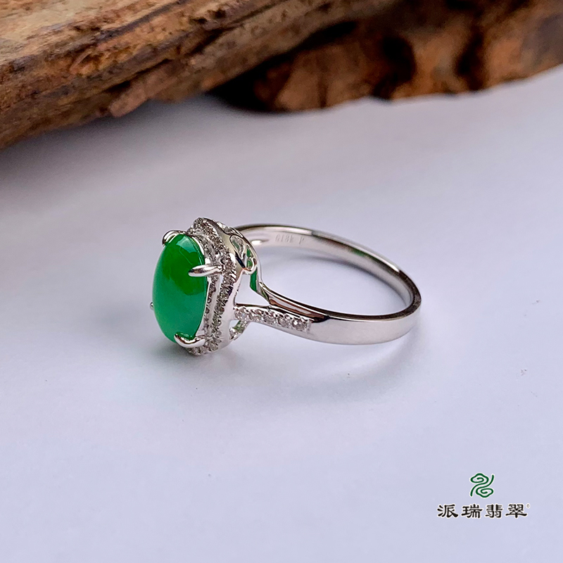派瑞翡翠 18k金翡翠戒指 冰种 绿色