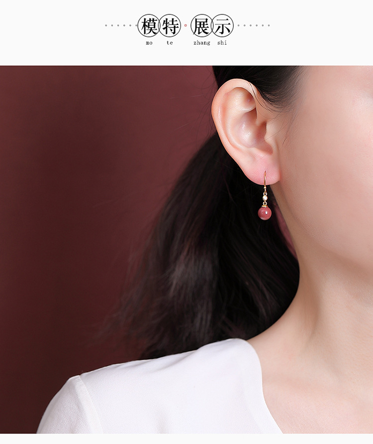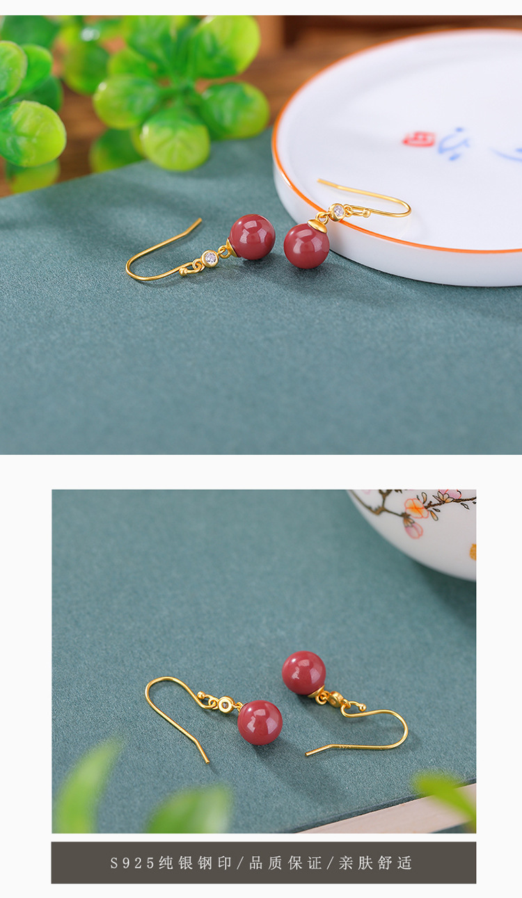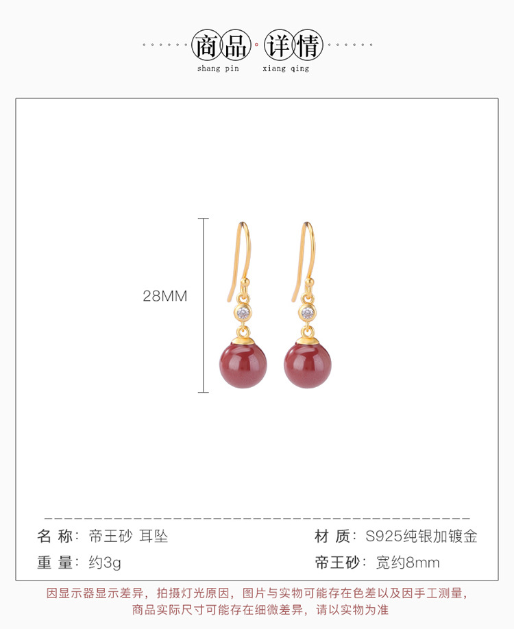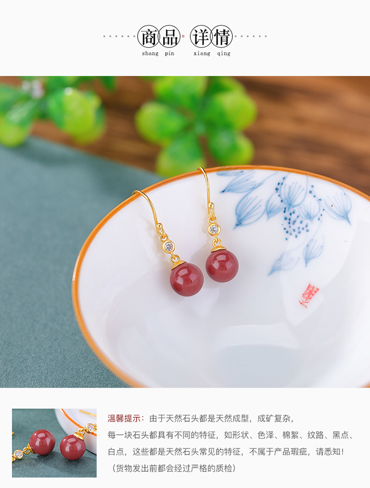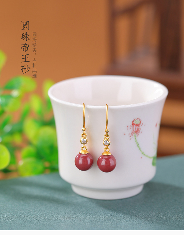 【南国之谜】S925纯银朱砂帝王砂圆珠耳饰【CW-EG02195】