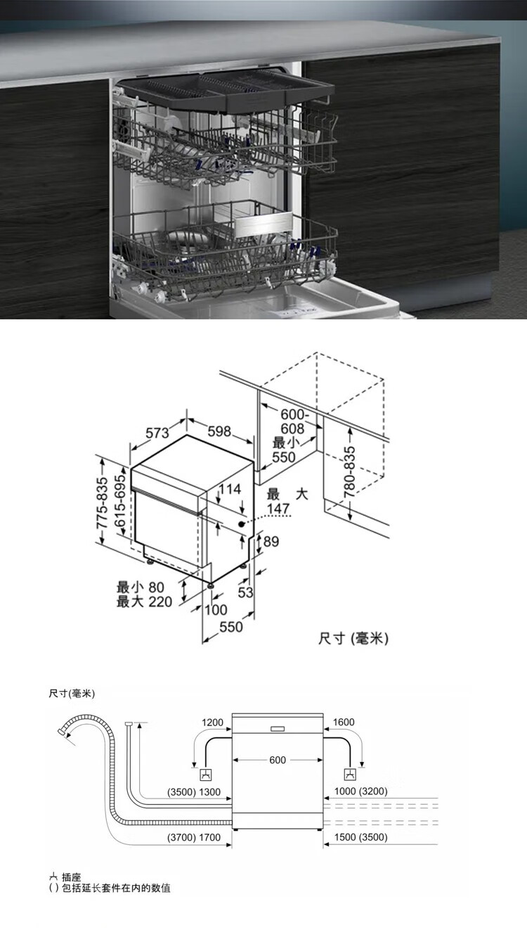西门子(SIEMENS)洗碗机SJ55ZS00MC嵌入式家居互联晶蕾烘干全能舱 SJ55ZS00MC 16套大容量 中式碗篮黑色面板