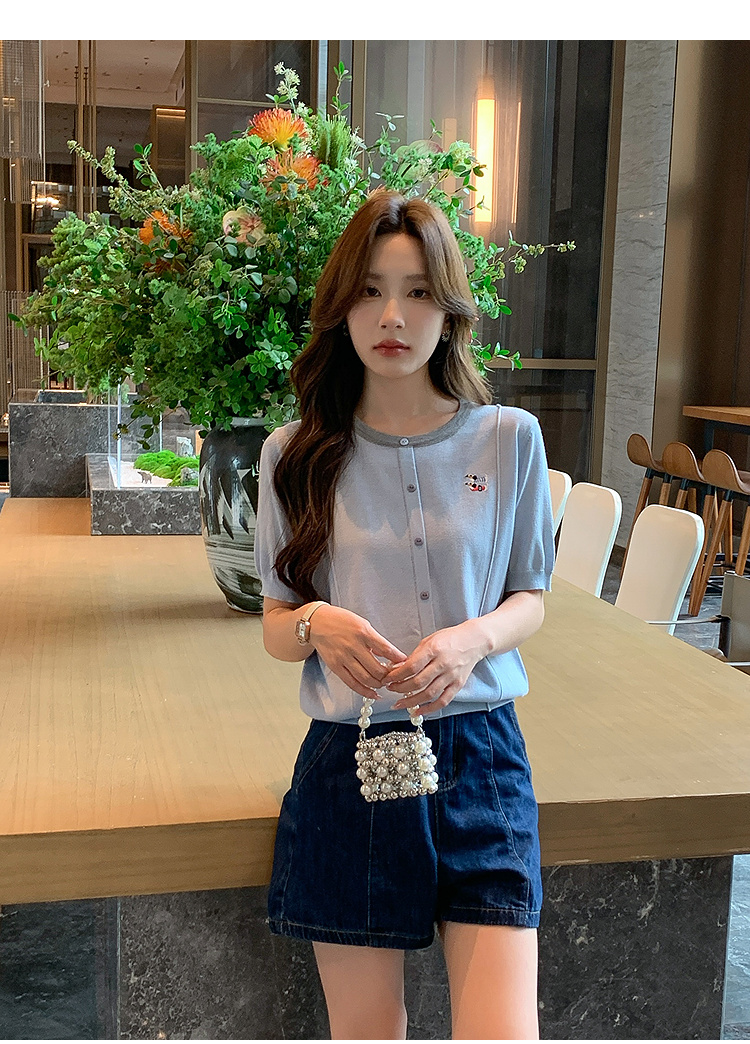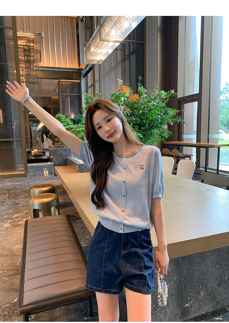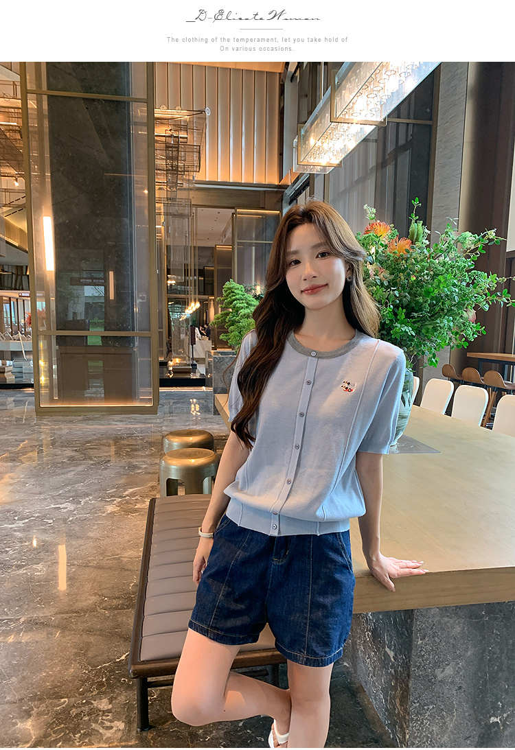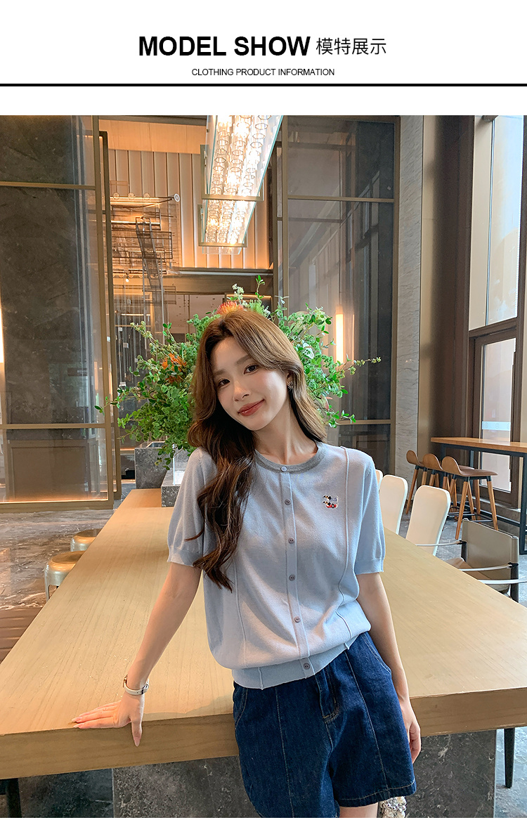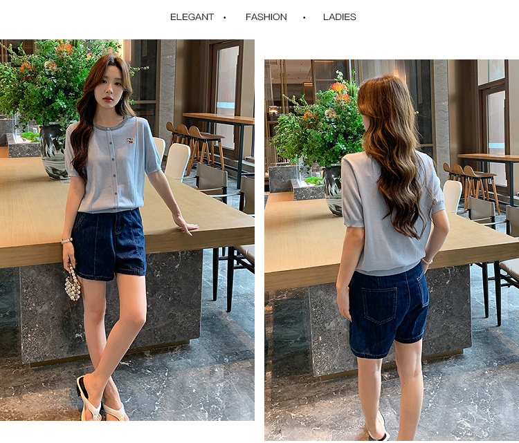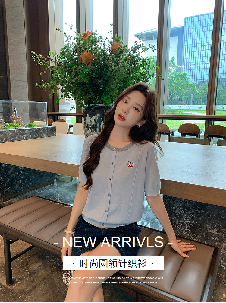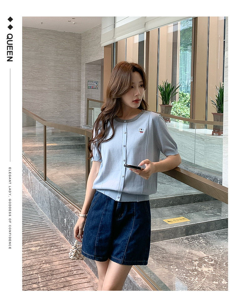 奢姿大码女装2025夏季新款时尚圆领短袖上衣胖妹妹气质简约开衫9552669761