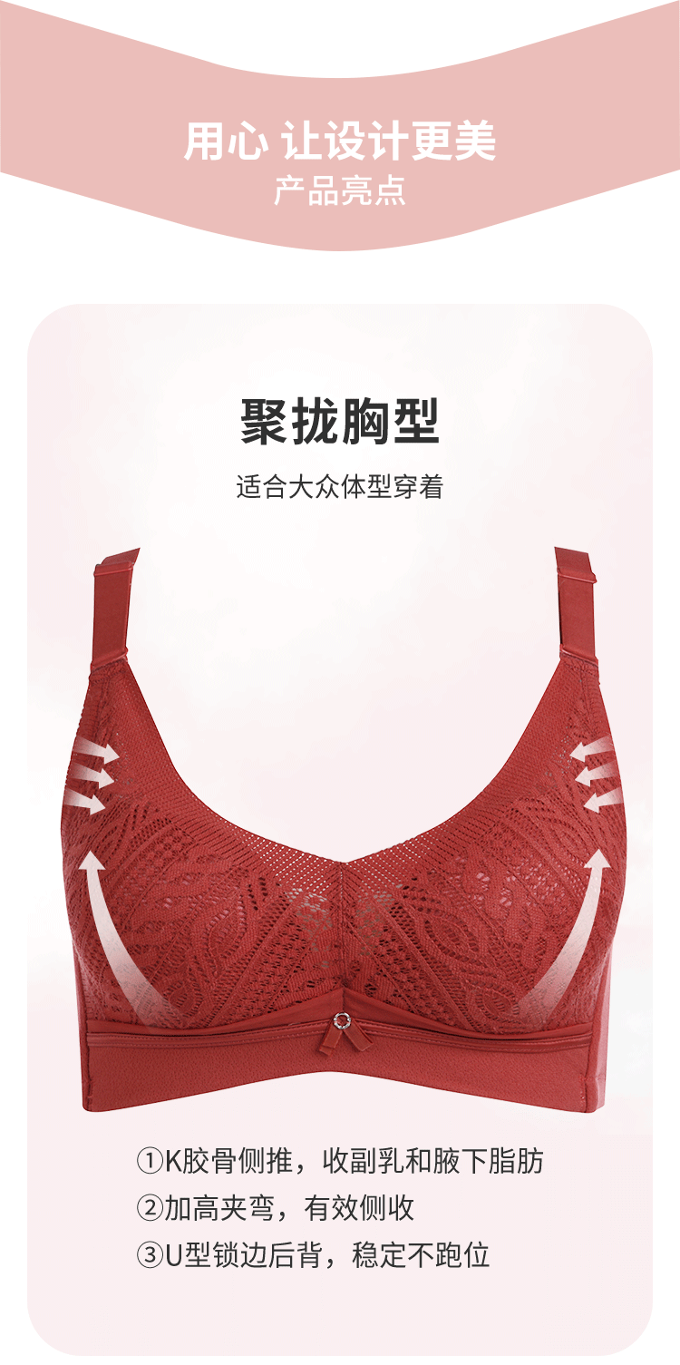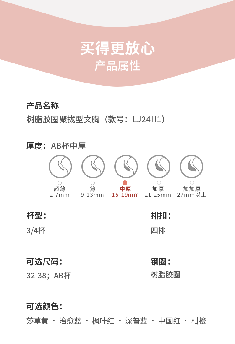 都市丽人舒软挺塑塑身系列调整型AB杯内衣蕾丝3/4杯中厚塑身文胸四排扣树脂胶圈LJ24H1