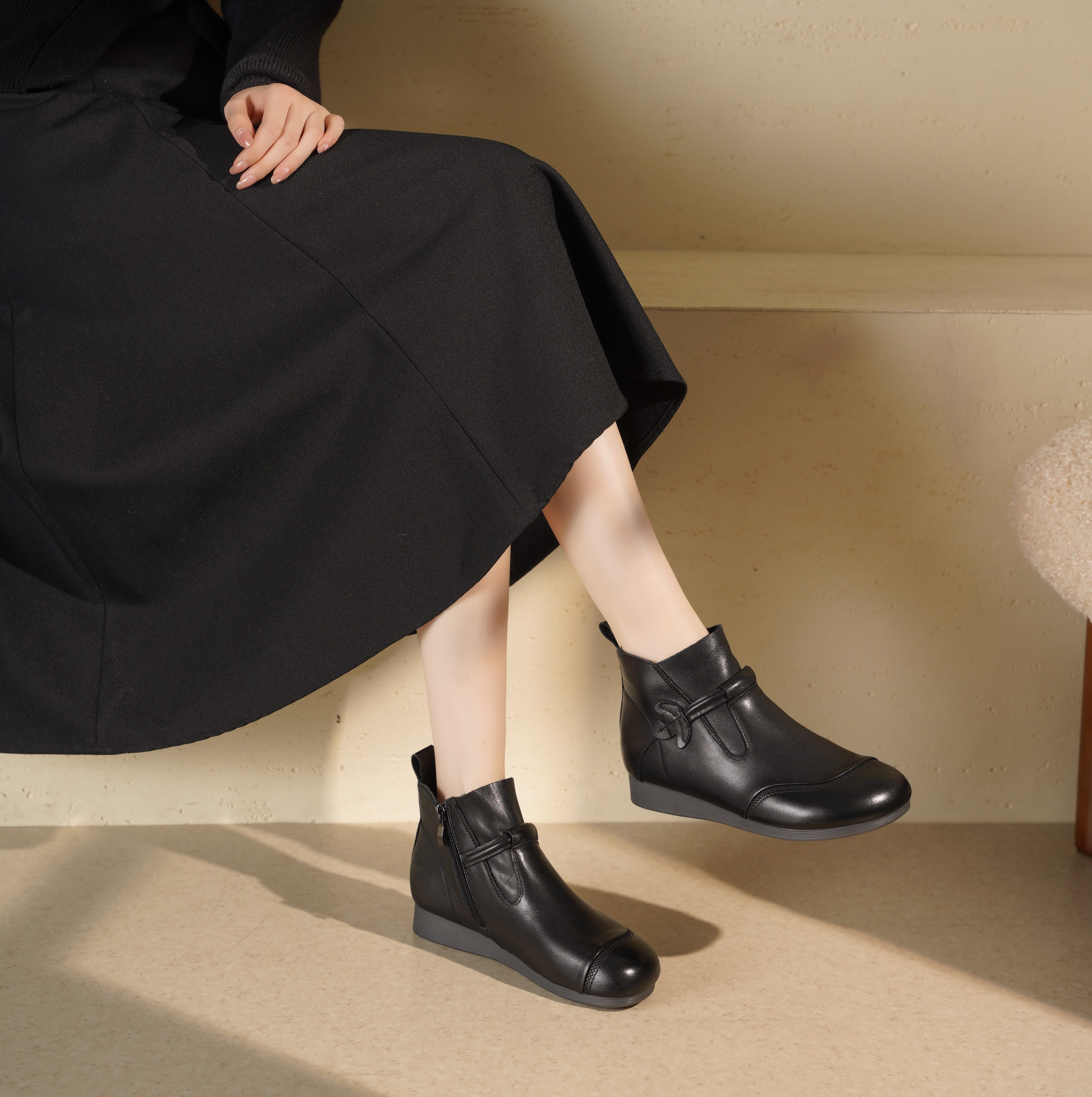 西村名物2025年冬季新款复古单靴平底坡跟显瘦切尔西靴T25DS49221