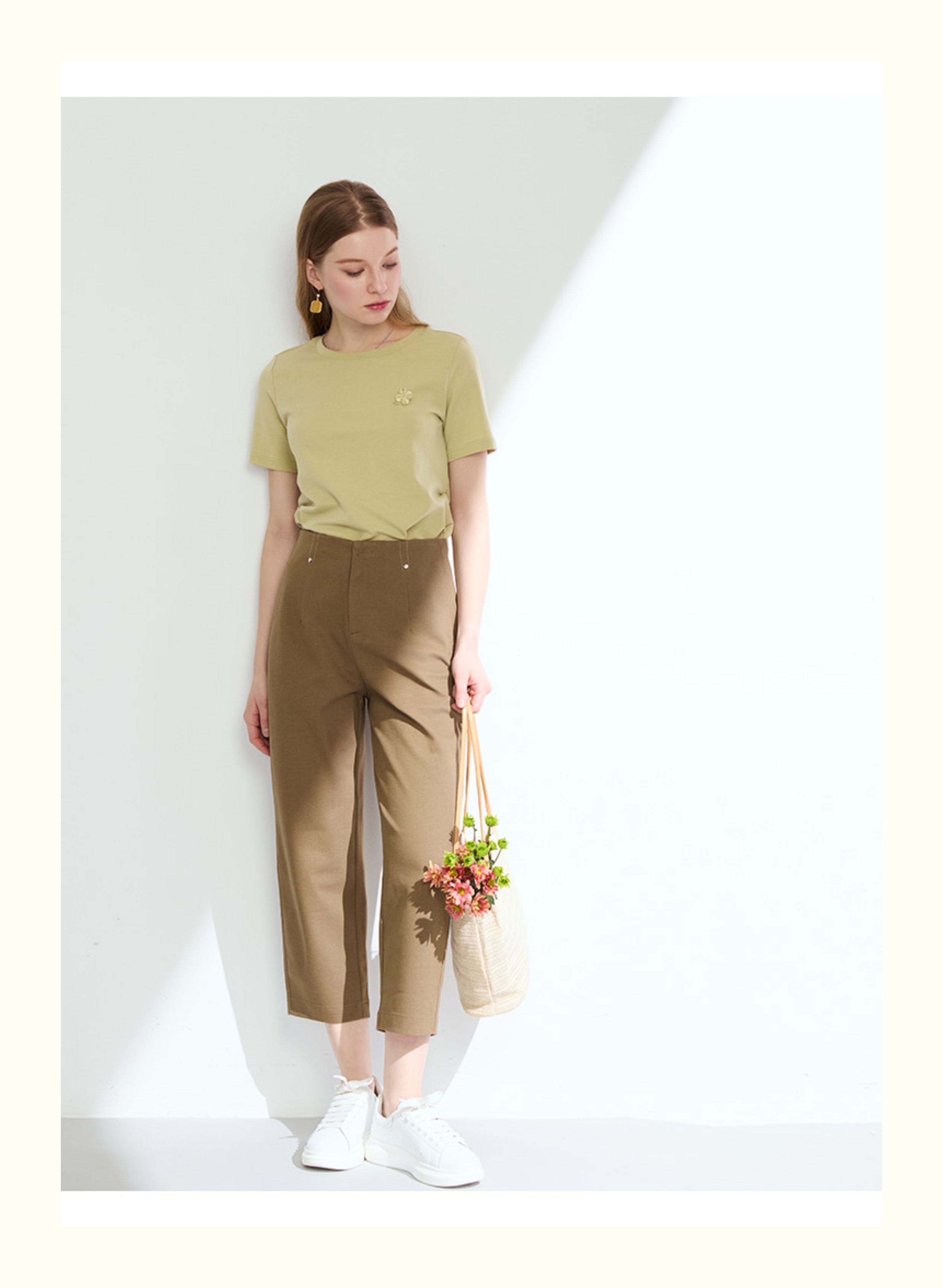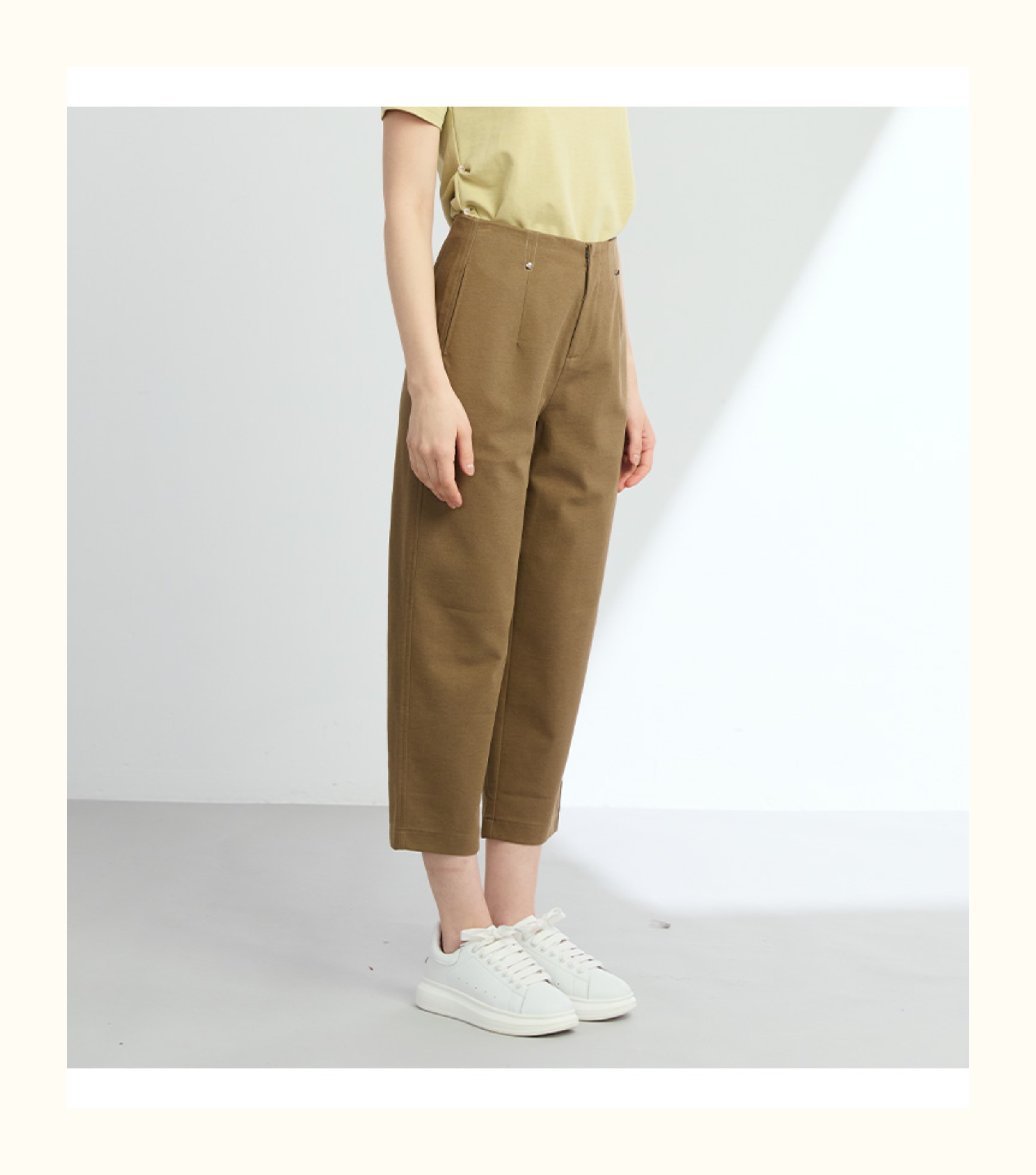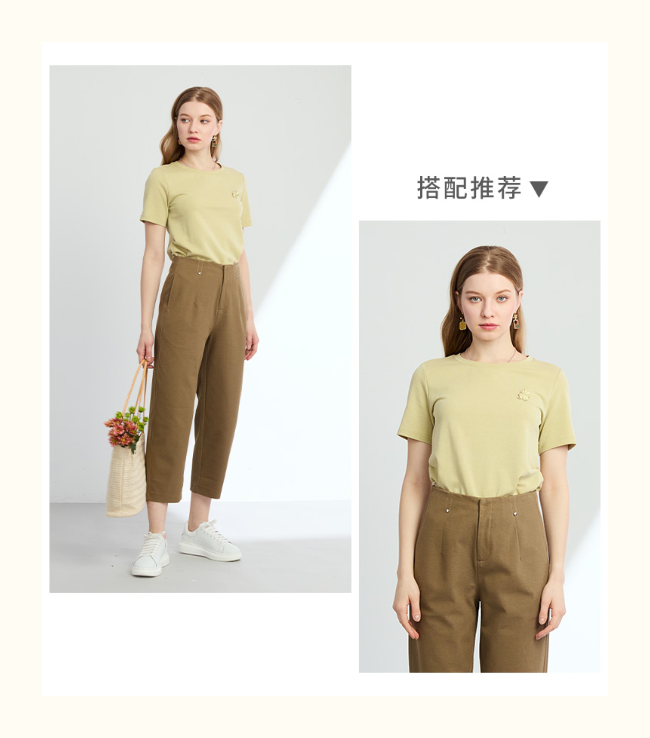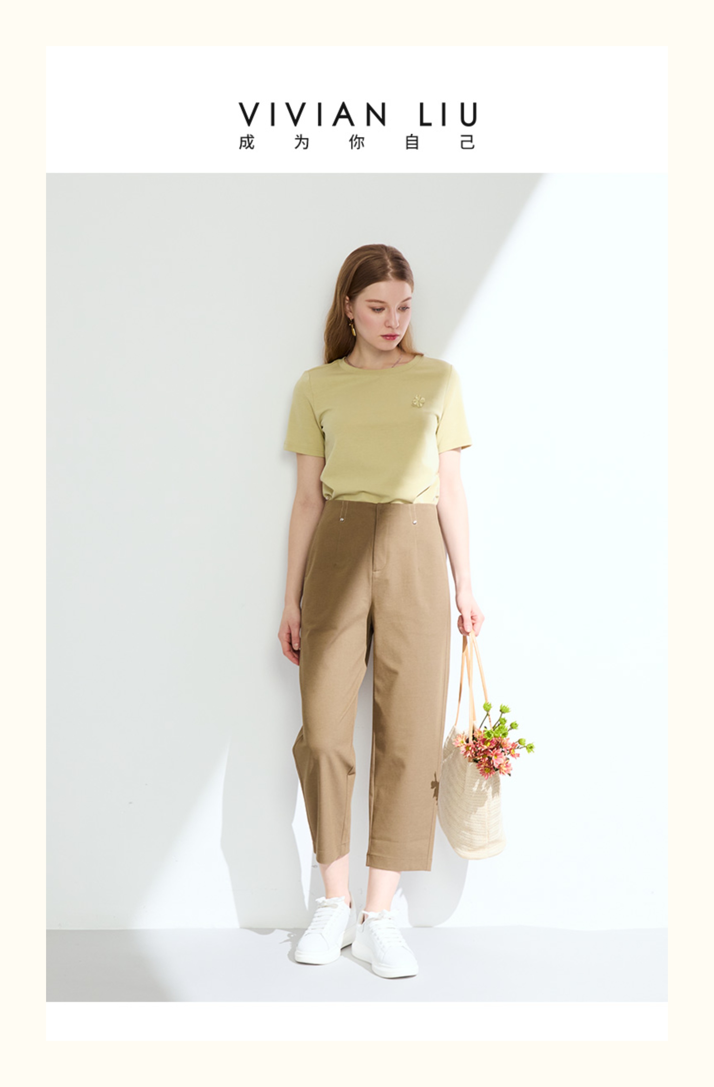VIVIAN LIU薇薇安刘TR2357509秋女装新款斜插兜裤脚翻边直筒裤