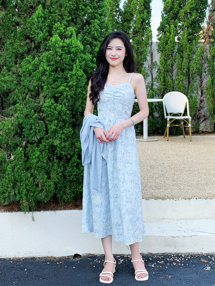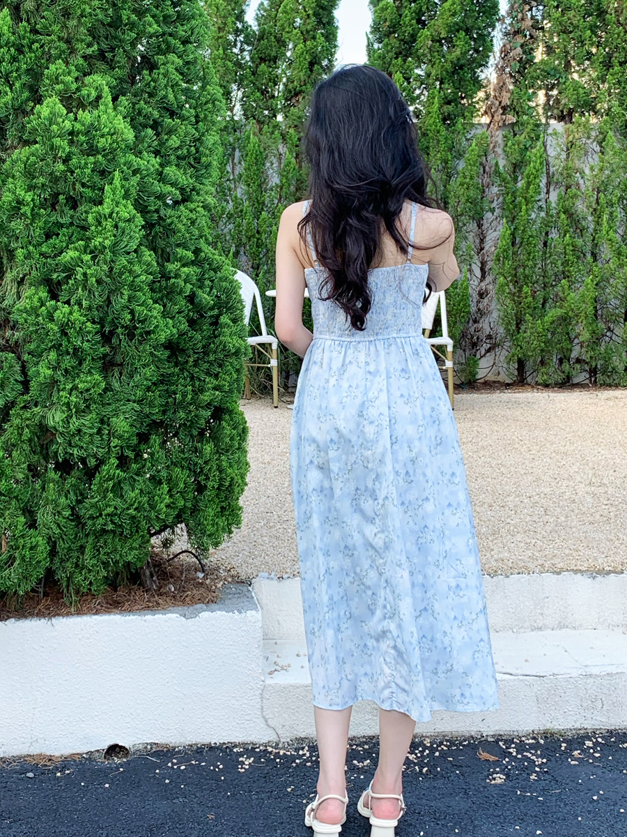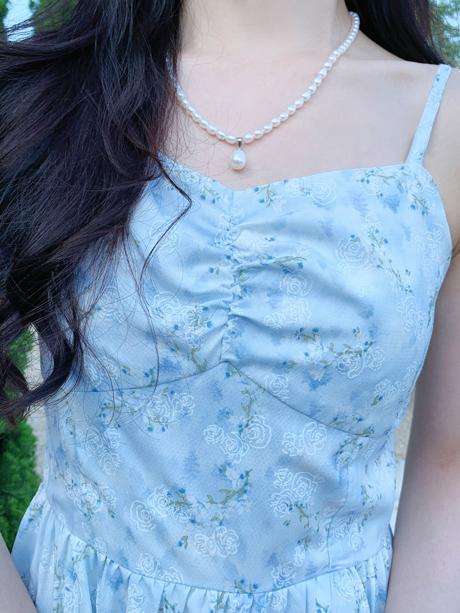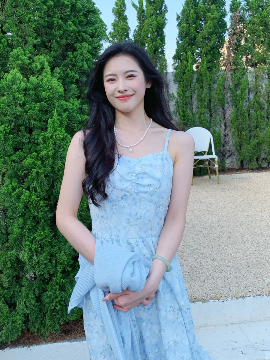 【百图lulu定制】【蓝星花吊带裙】清新蓝星花 玫瑰提花 后背打揽 肩带可调节 背心连衣裙