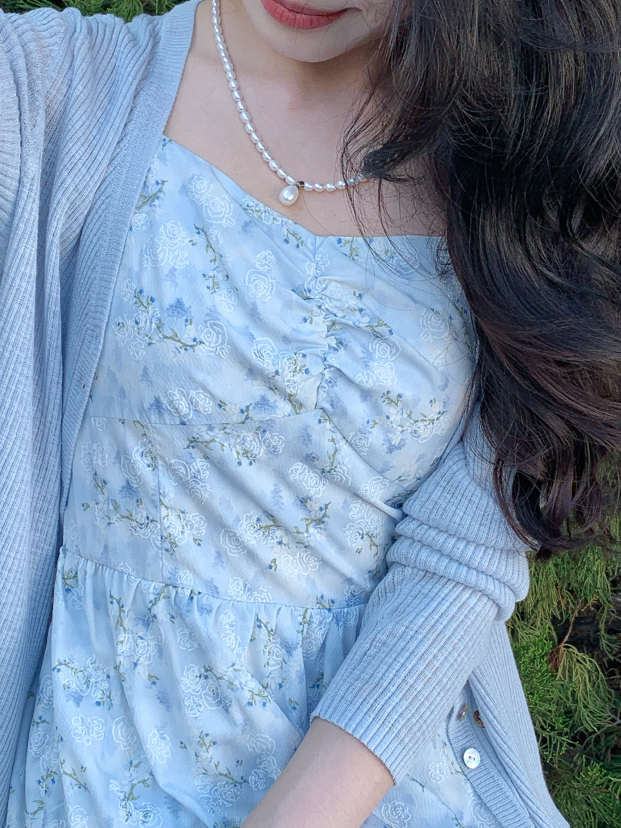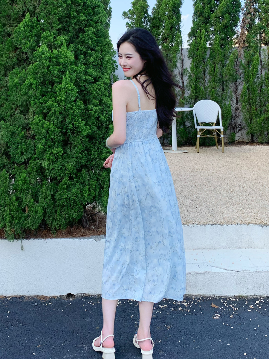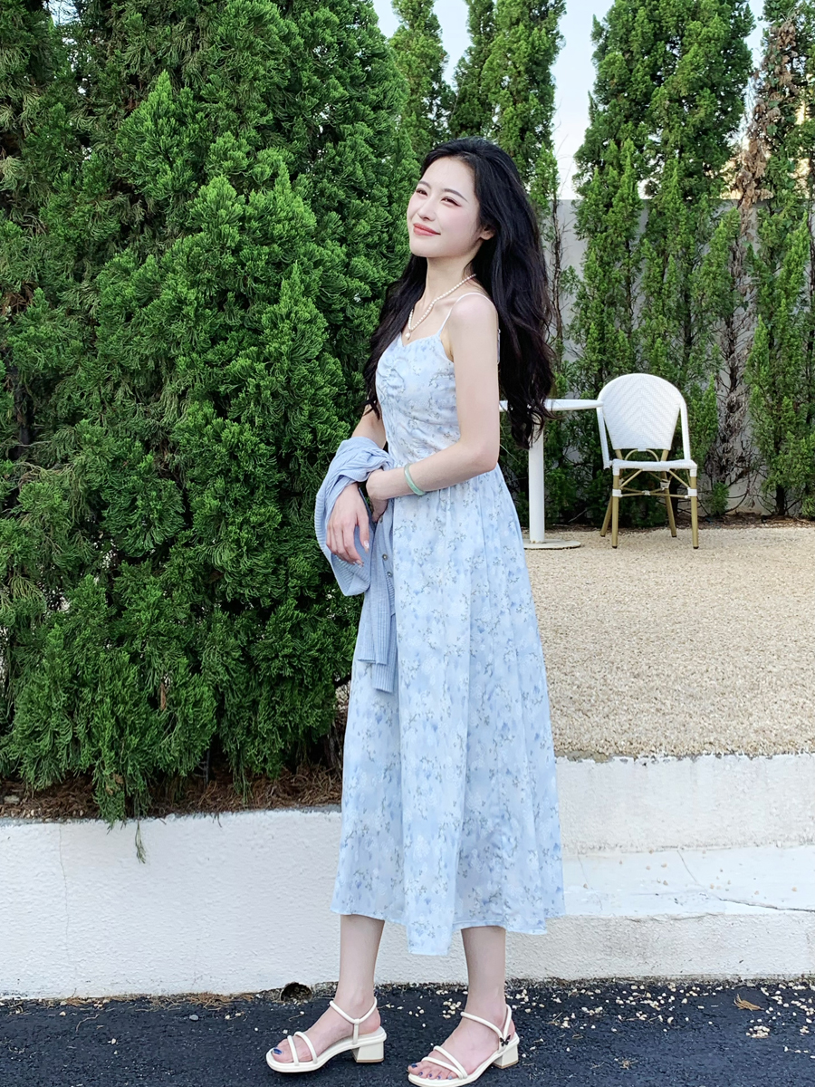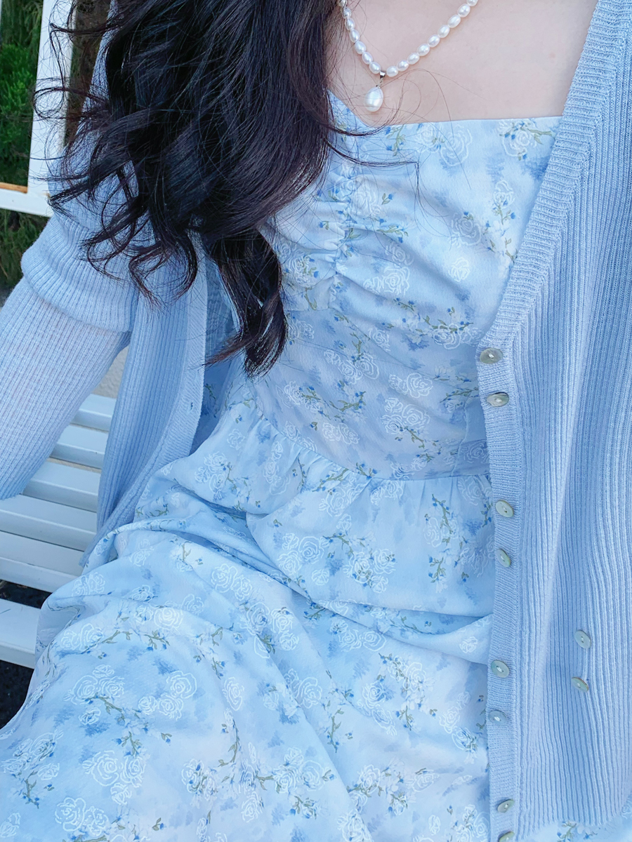【百图lulu定制】【蓝星花吊带裙】清新蓝星花 玫瑰提花 后背打揽 肩带可调节 背心连衣裙