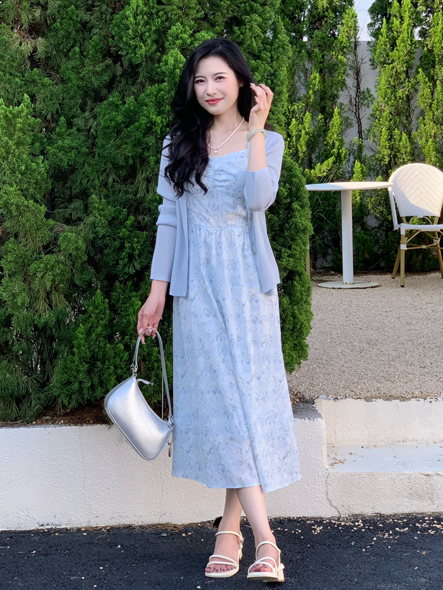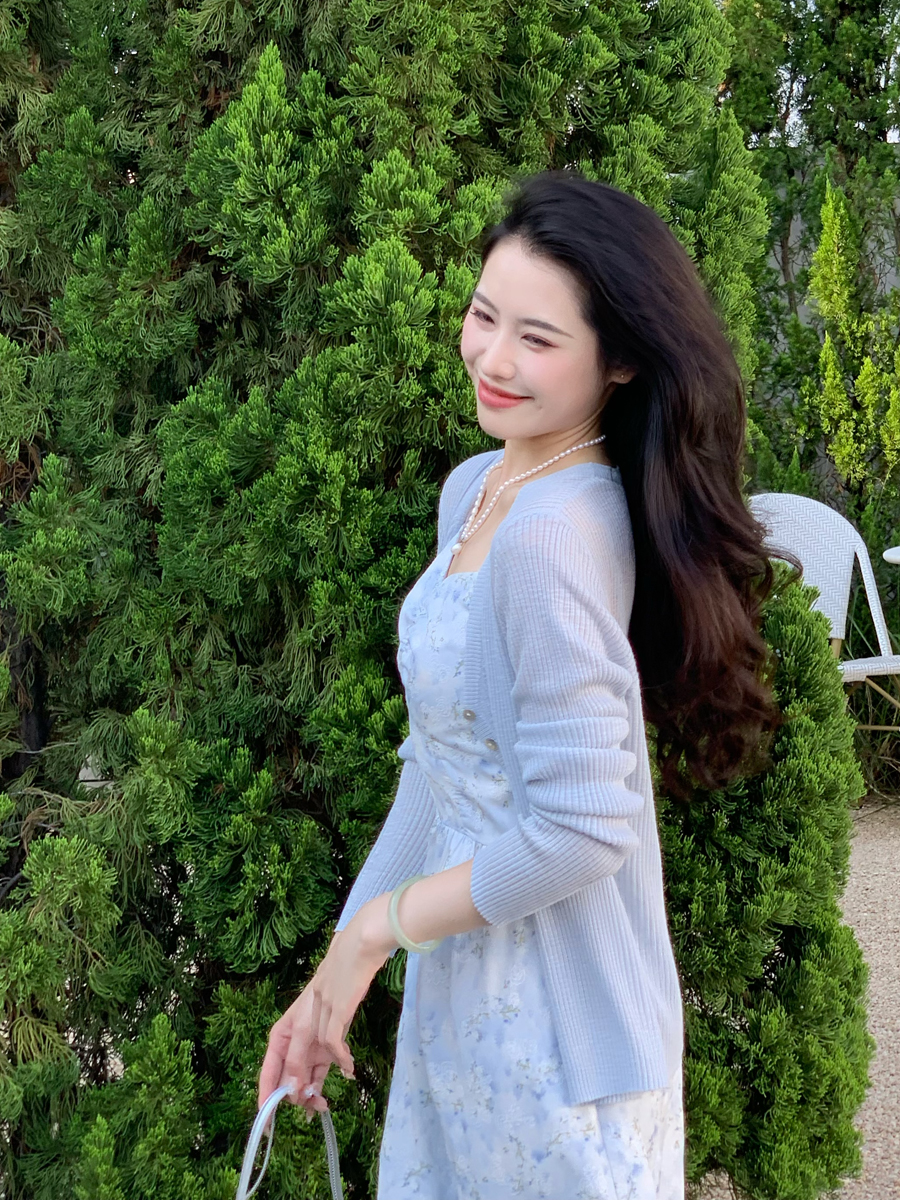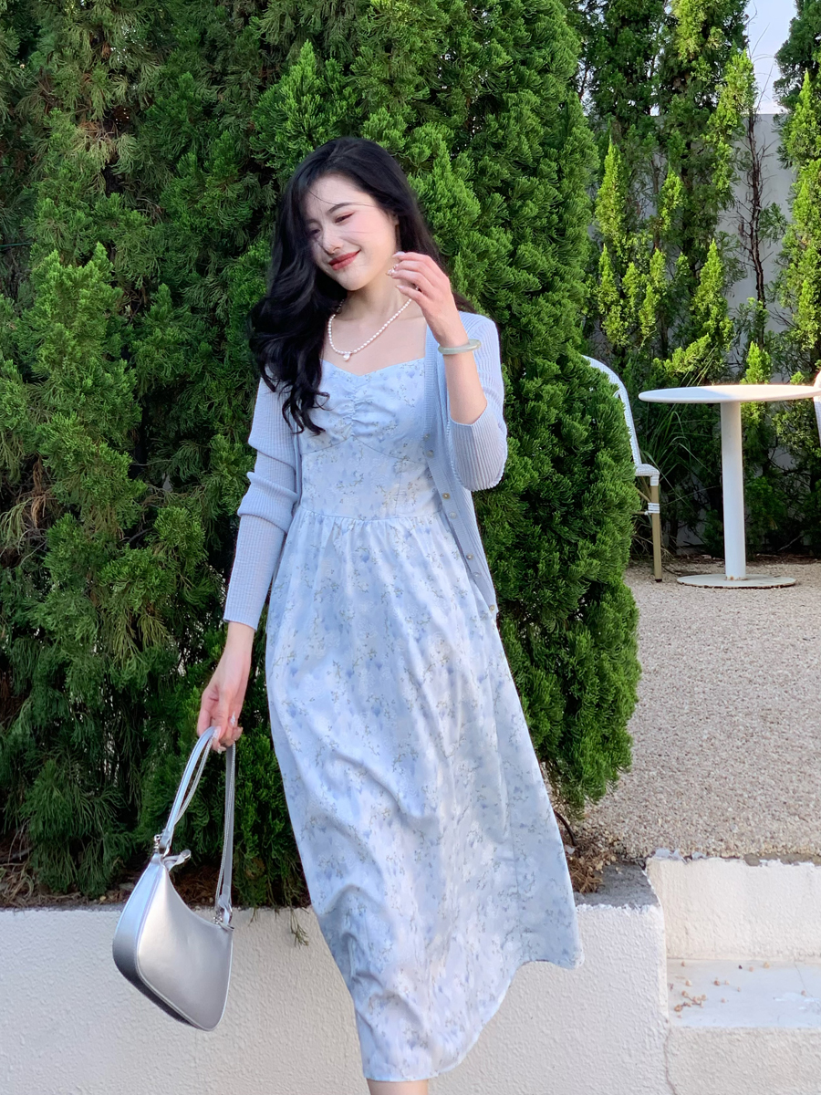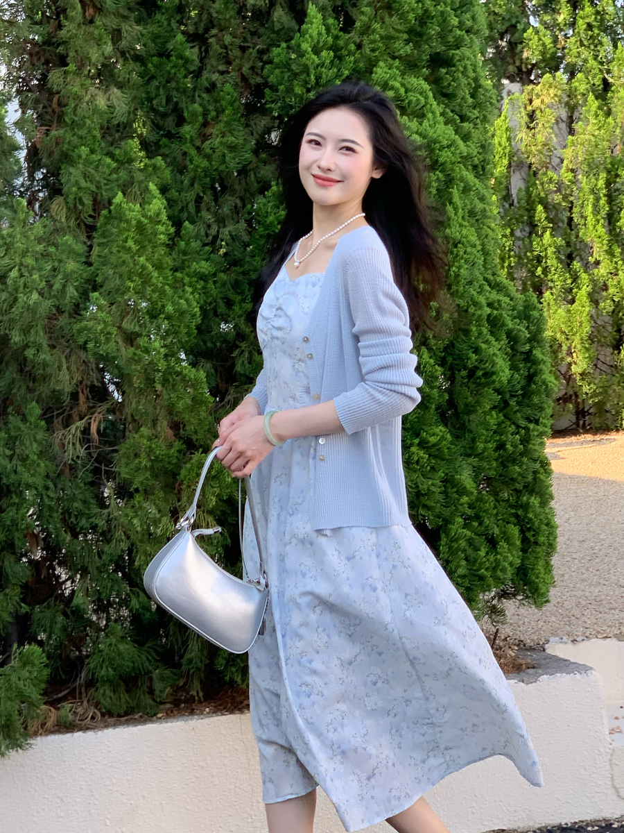 【百图lulu定制】【蓝星花吊带裙】清新蓝星花 玫瑰提花 后背打揽 肩带可调节 背心连衣裙