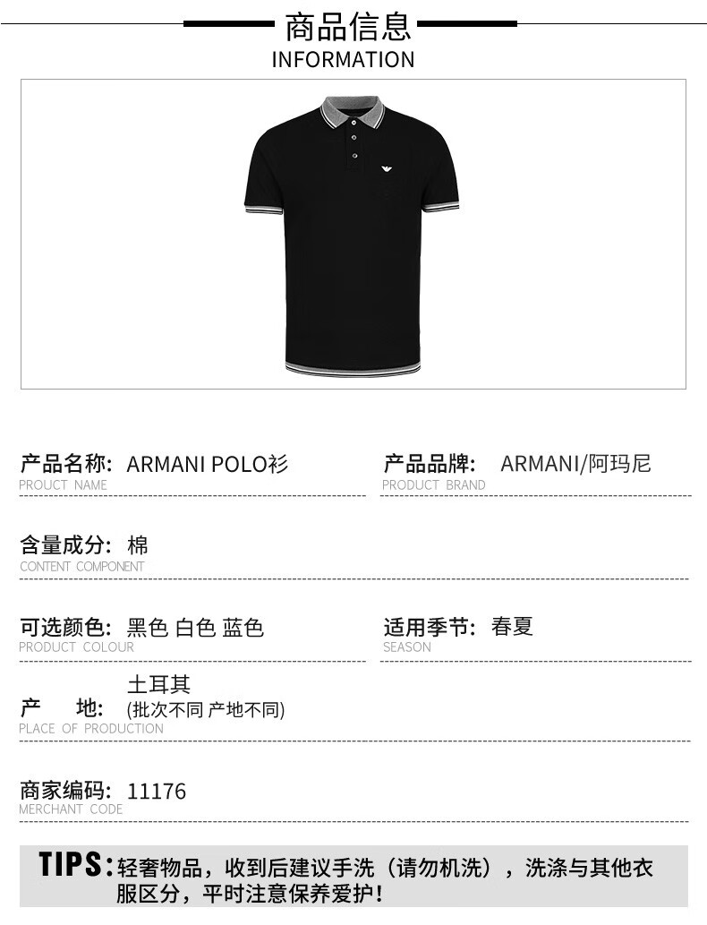 EMPORIO ARMANI 阿玛尼 男士时尚潮流休闲百搭POLO T恤 11176