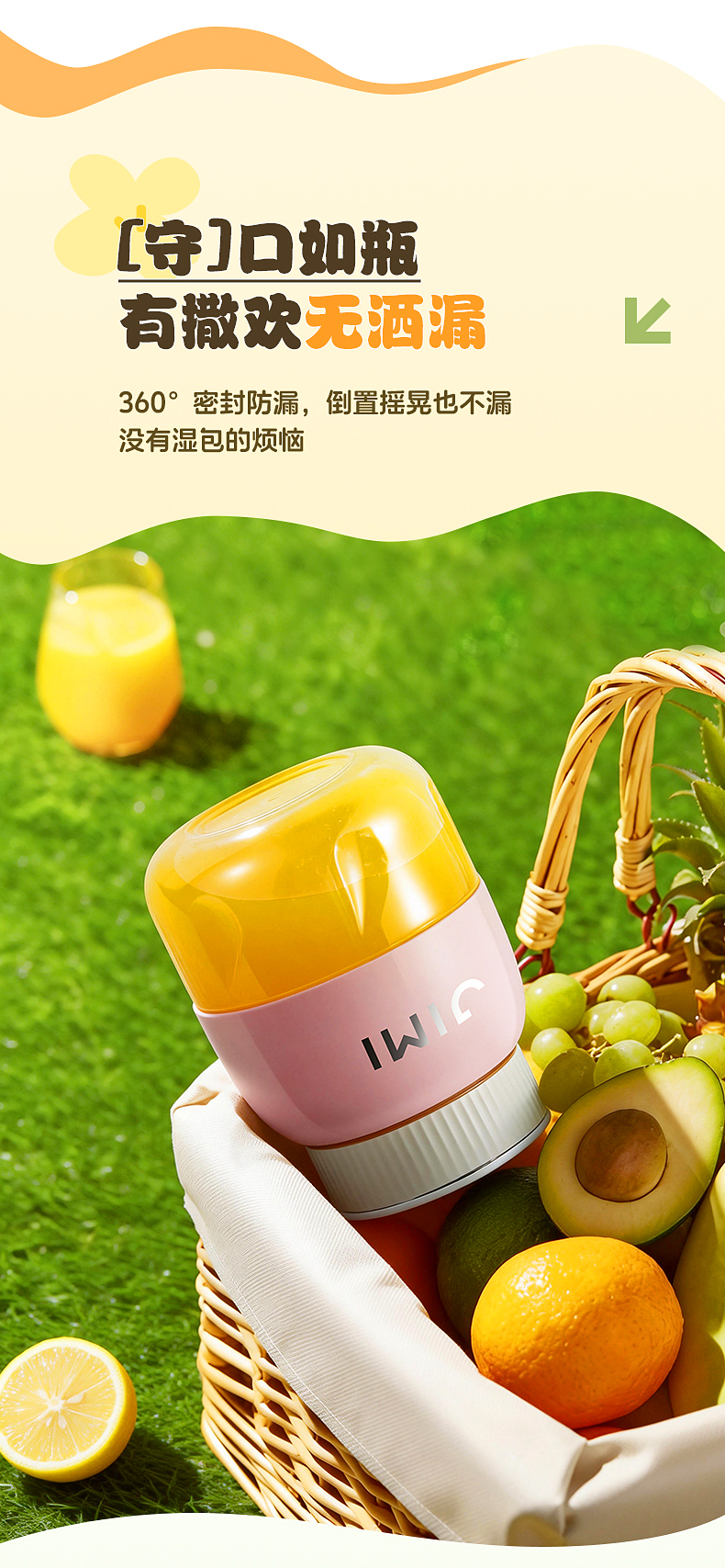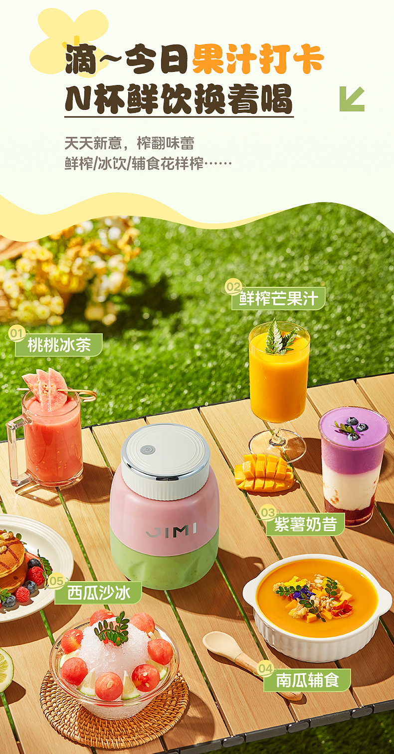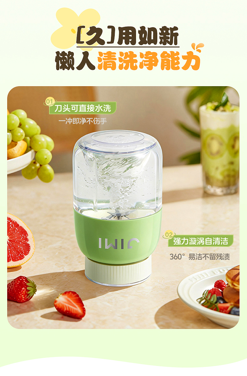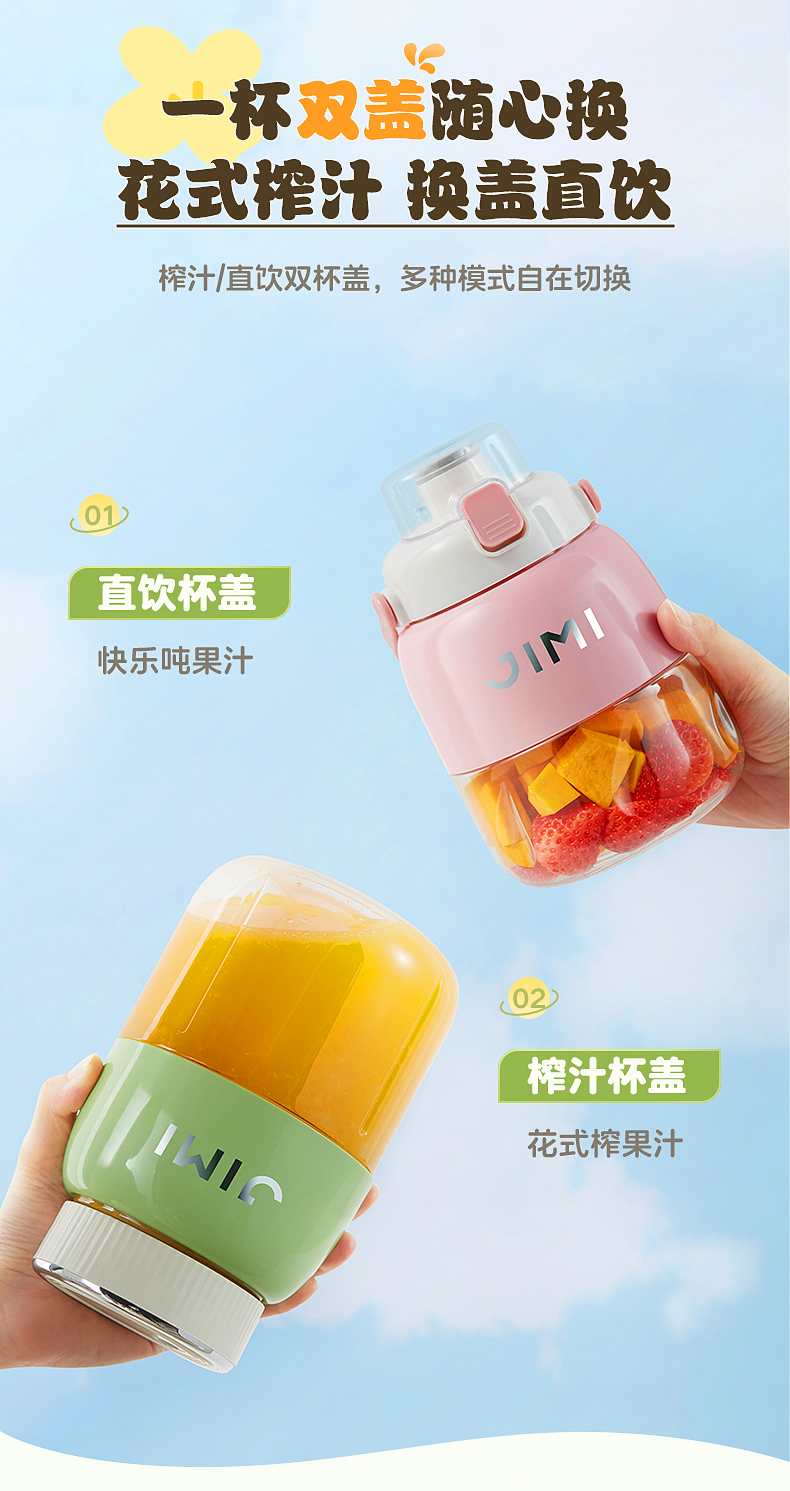 【快递到家】积米无线便携吨吨桶榨汁杯-奶芙绿(1200ml/台)