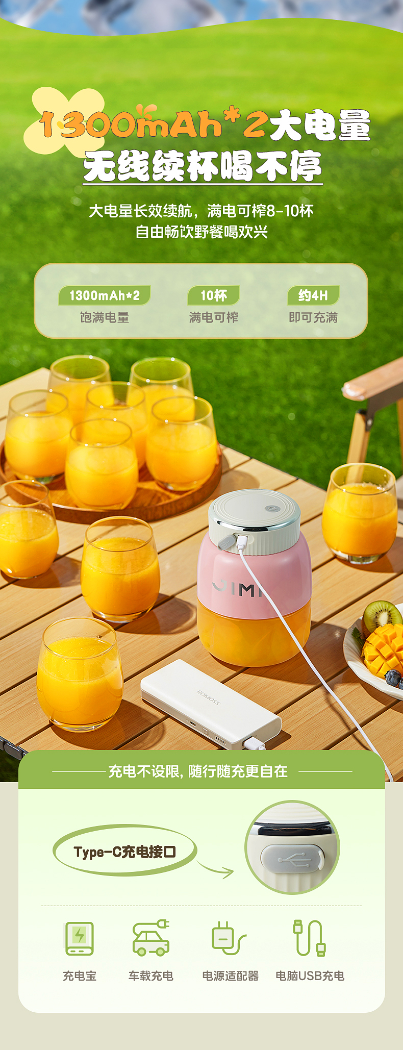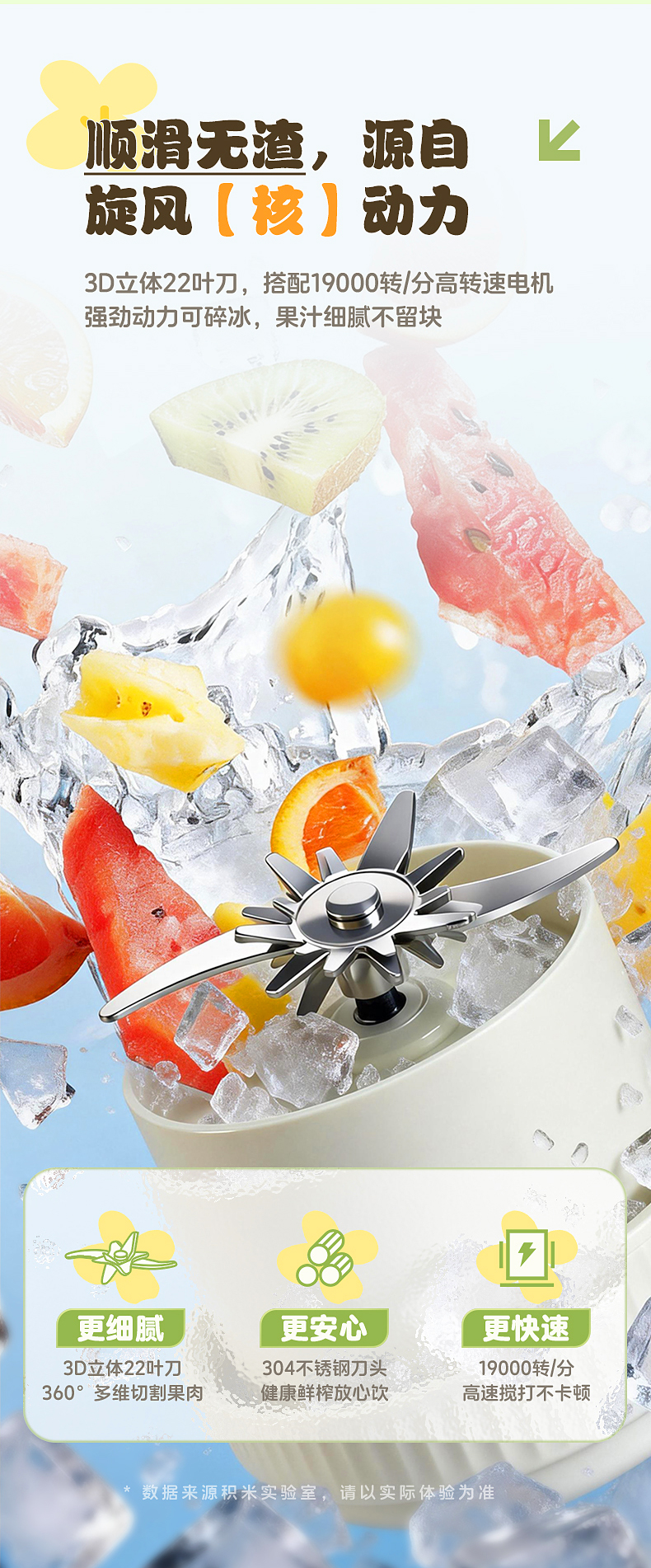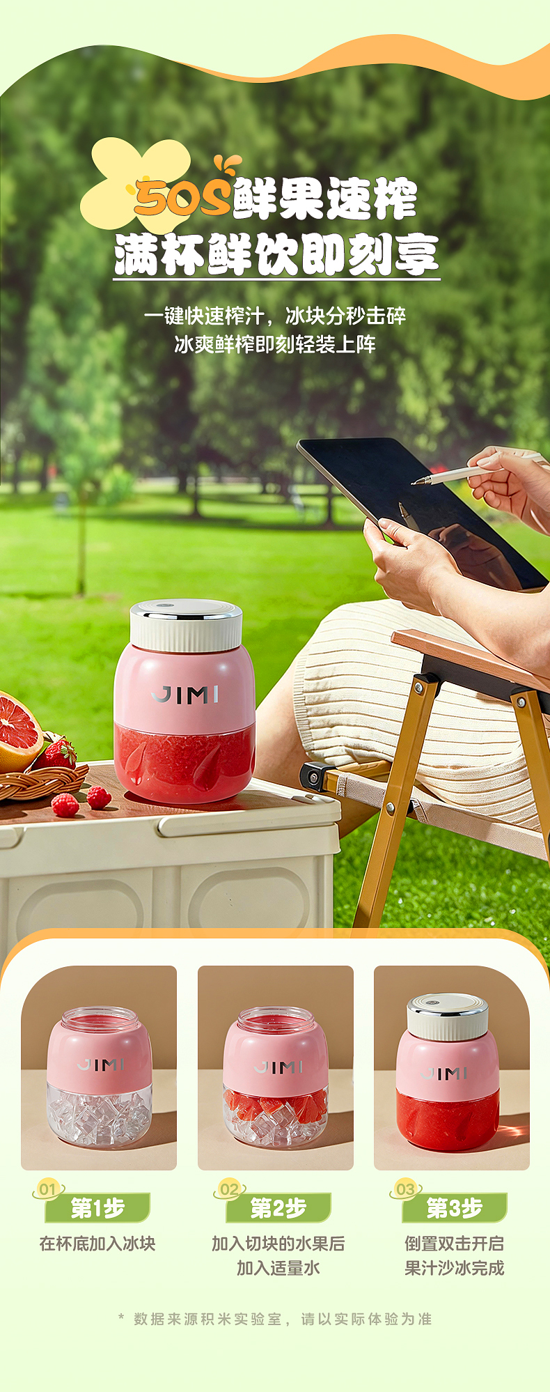 【快递到家】积米无线便携吨吨桶榨汁杯-奶芙绿(1200ml/台)