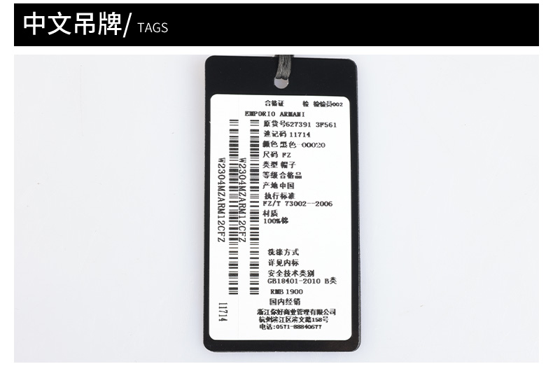 Emporio Armani 阿玛尼 男女通款均码可伸缩全棉刺绣太阳帽 11714