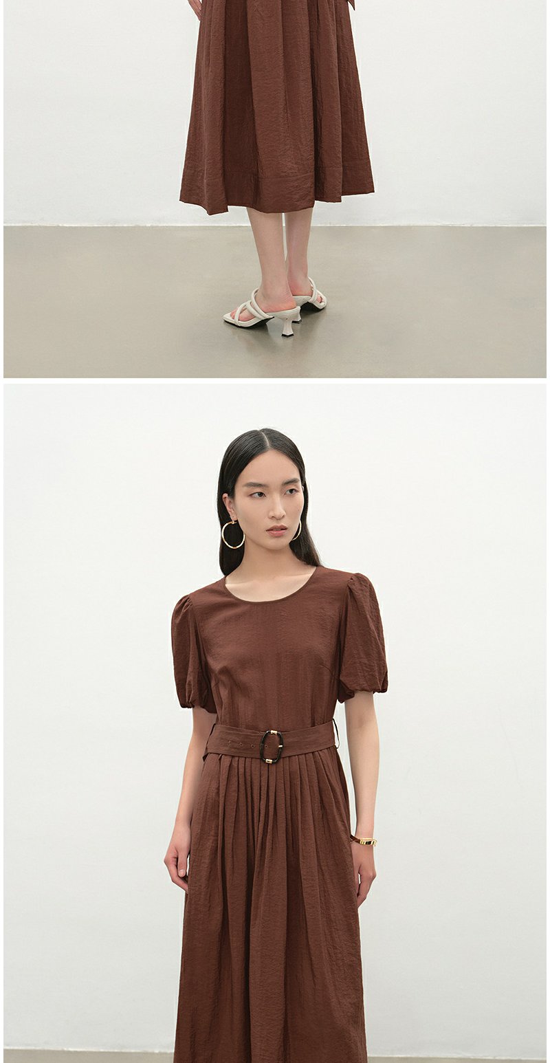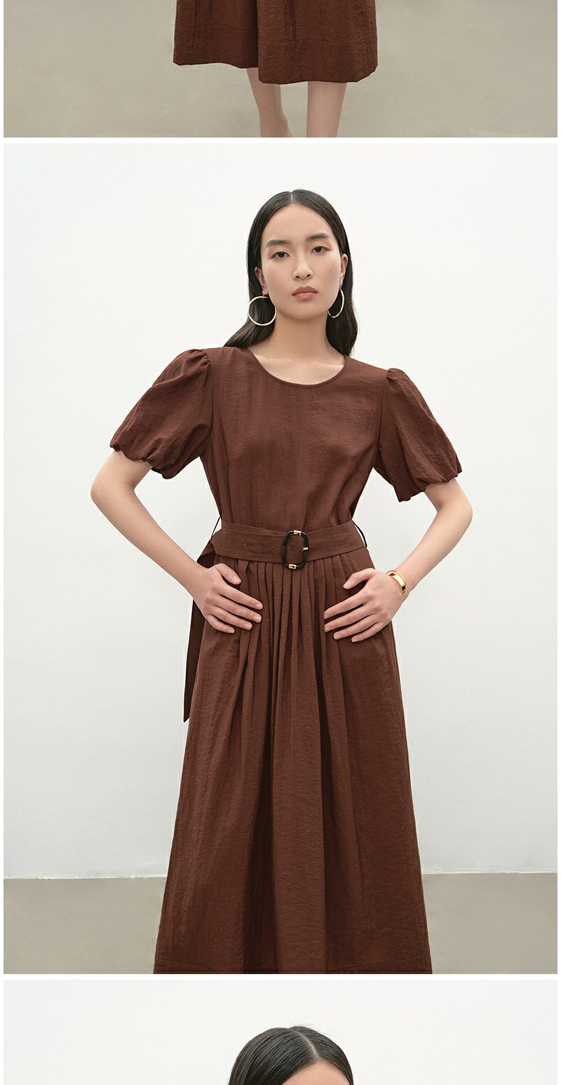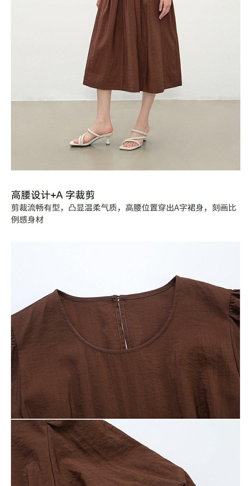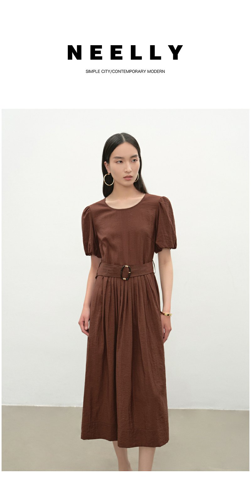 NEELLY纳俪商场同款夏新款复古优雅正肩连衣裙女收腰显瘦舒适长裙N25052Y01158