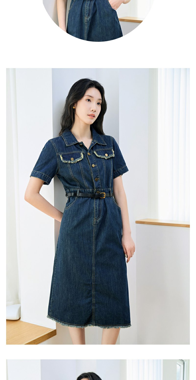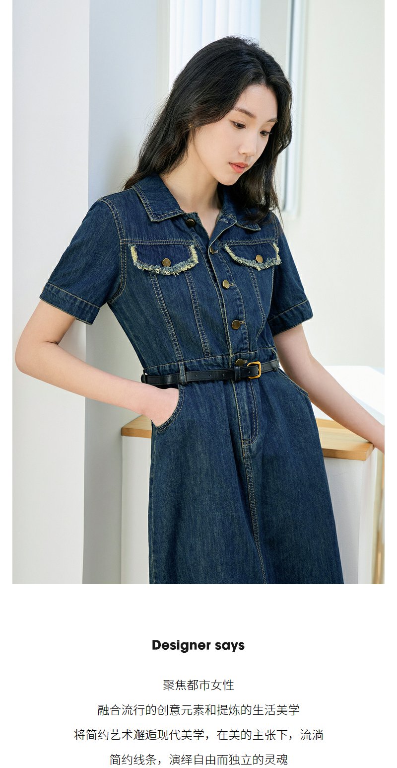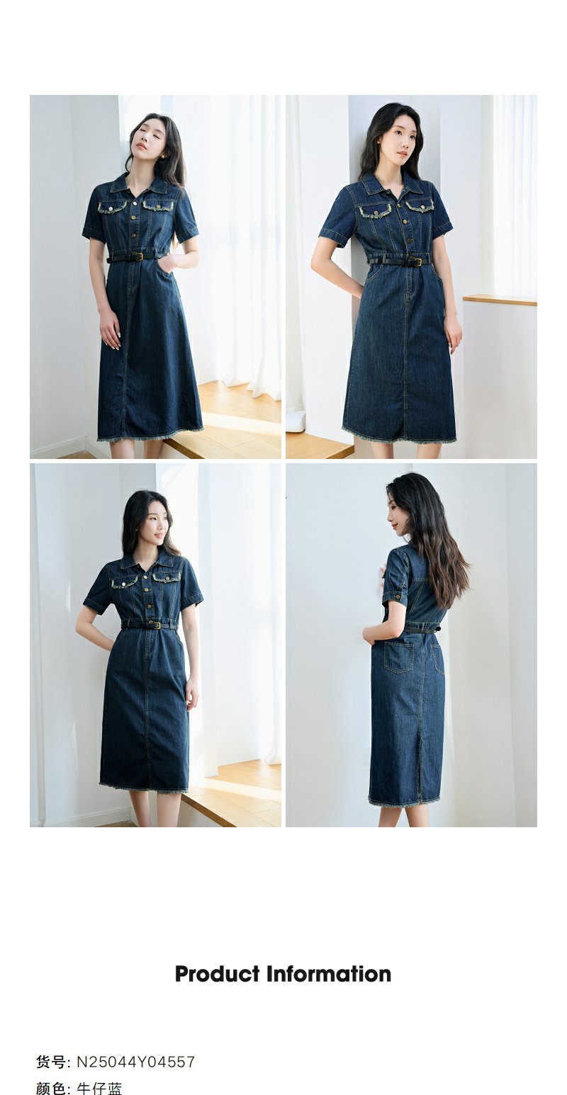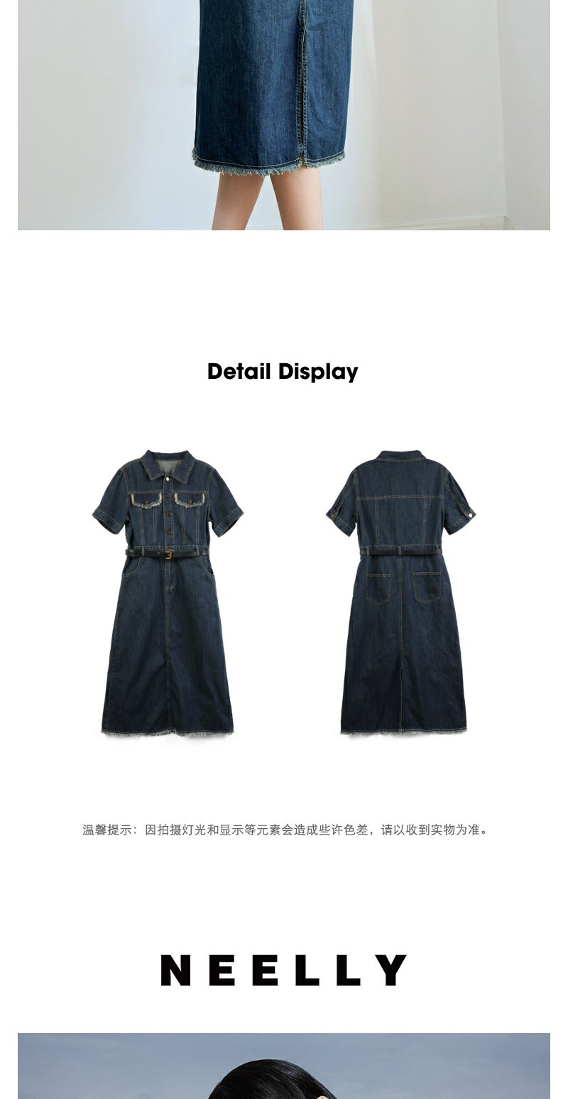 NEELLY纳俪商场同款夏季新款牛仔短袖连衣裙女港风小众工装风长裙N25044Y04557