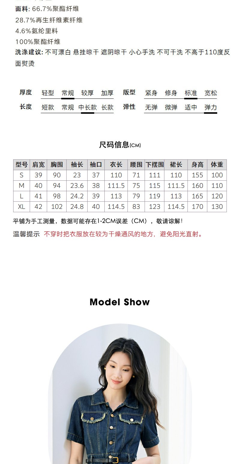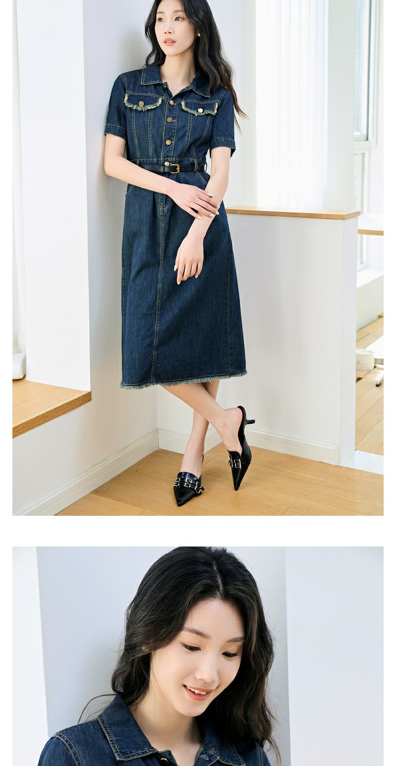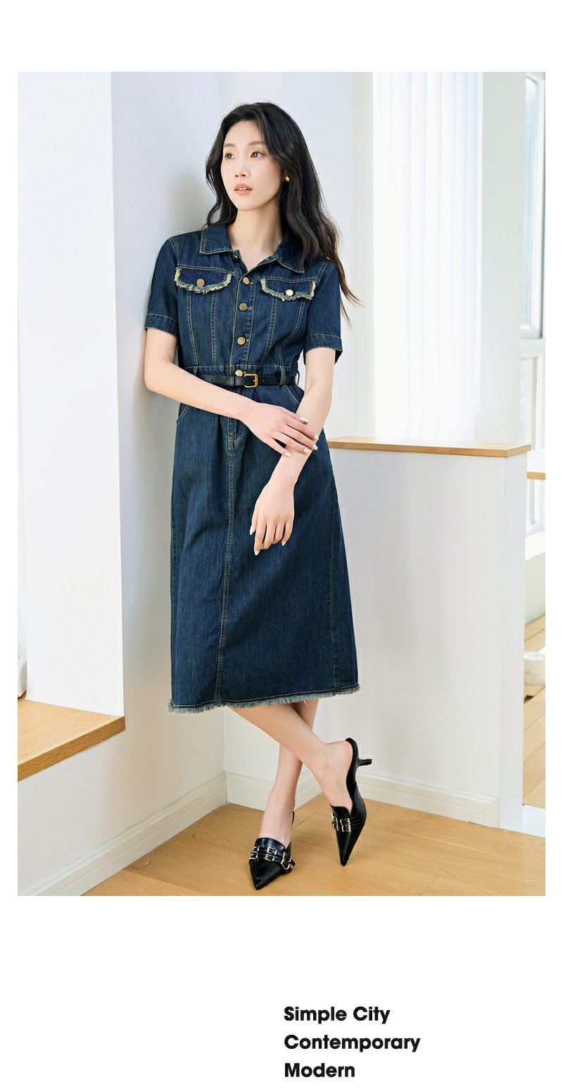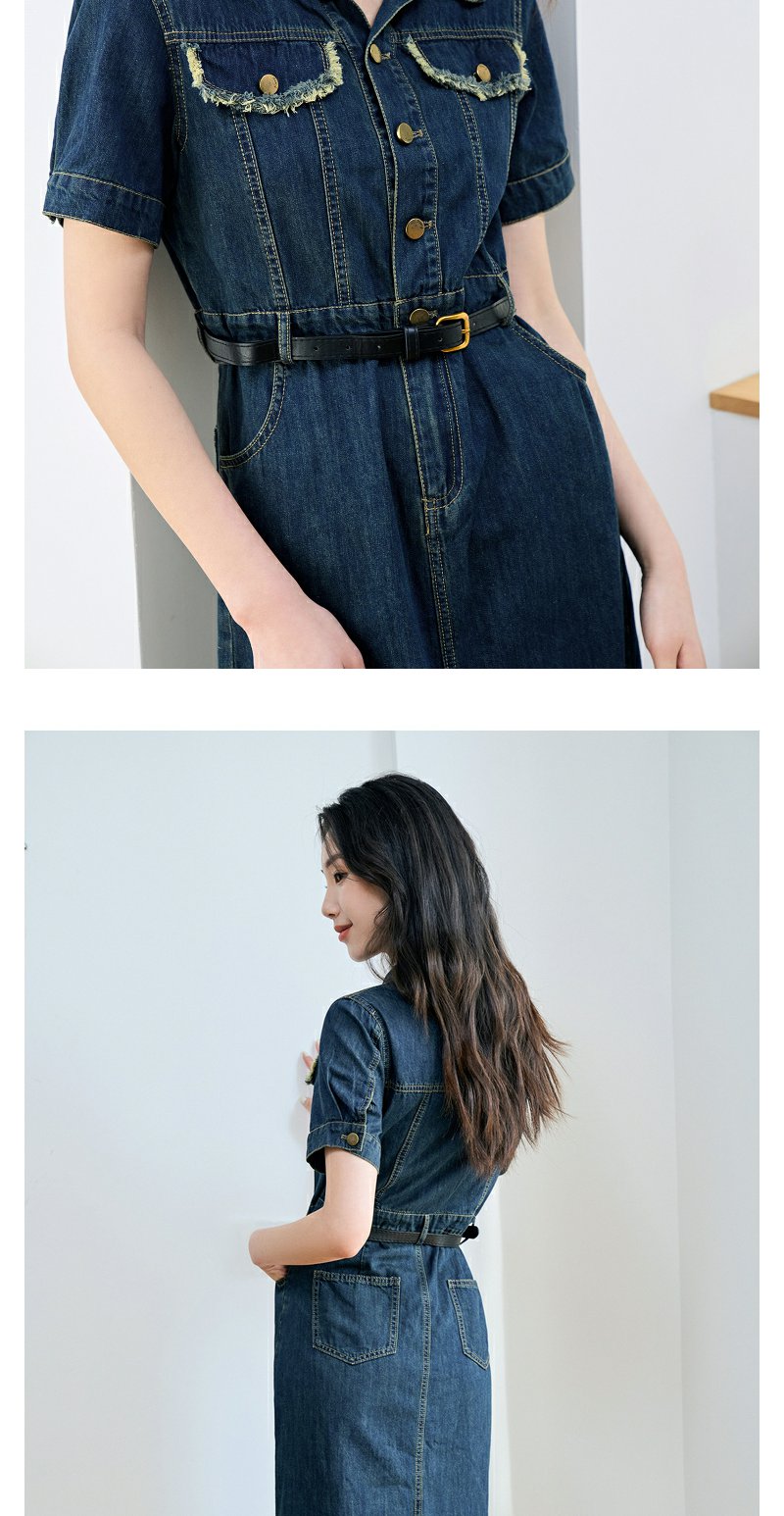 NEELLY纳俪商场同款夏季新款牛仔短袖连衣裙女港风小众工装风长裙N25044Y04557