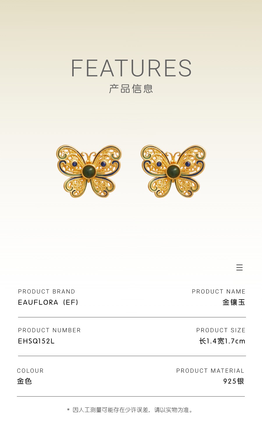 『戏蝶』古法S925蝴蝶造型耳钉