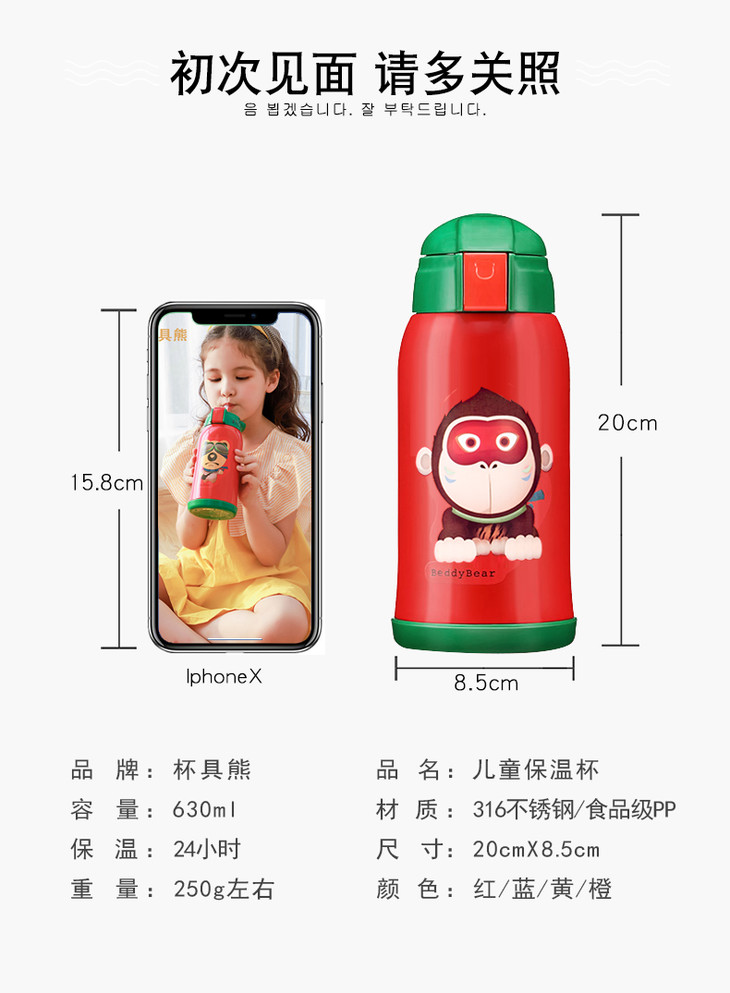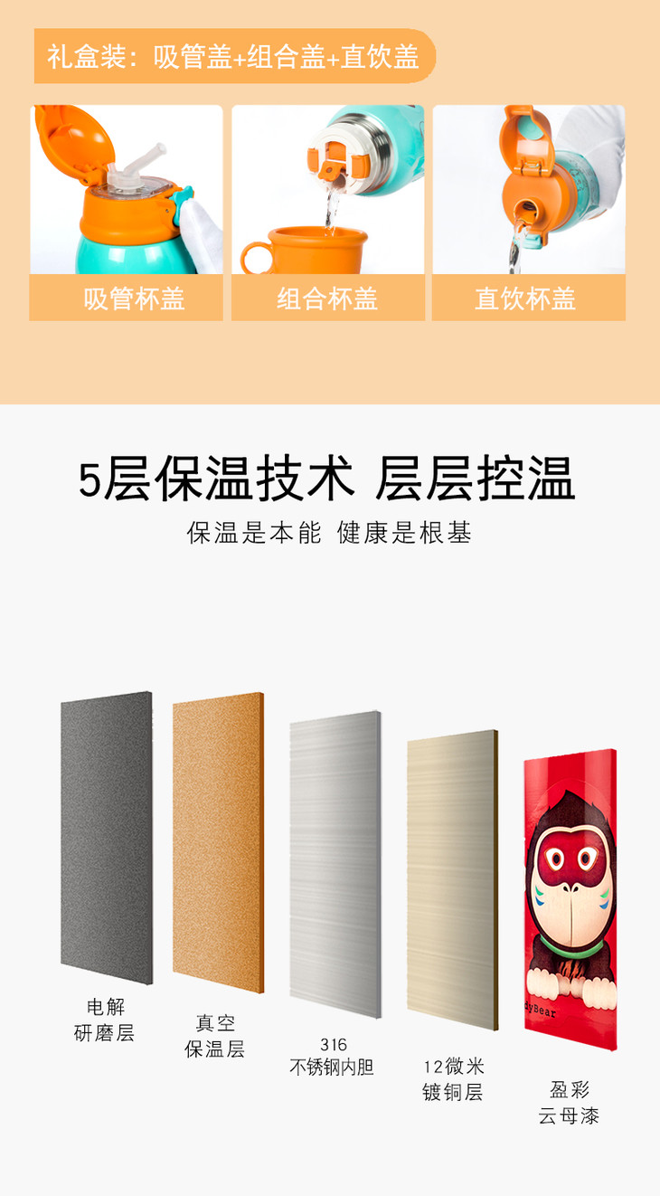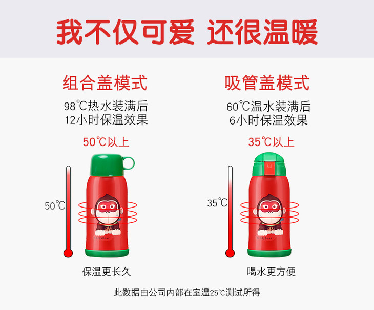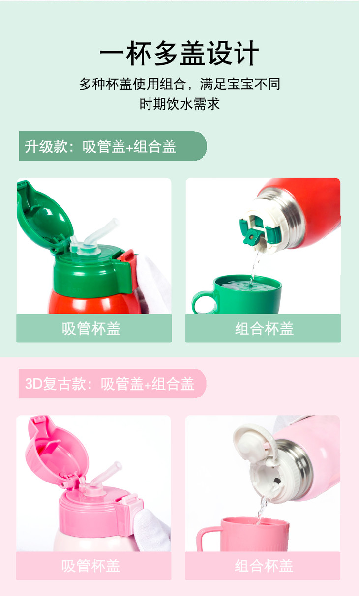 杯具熊儿童保温杯带吸管两用水壶女童婴儿小学生男宝宝幼儿园水杯