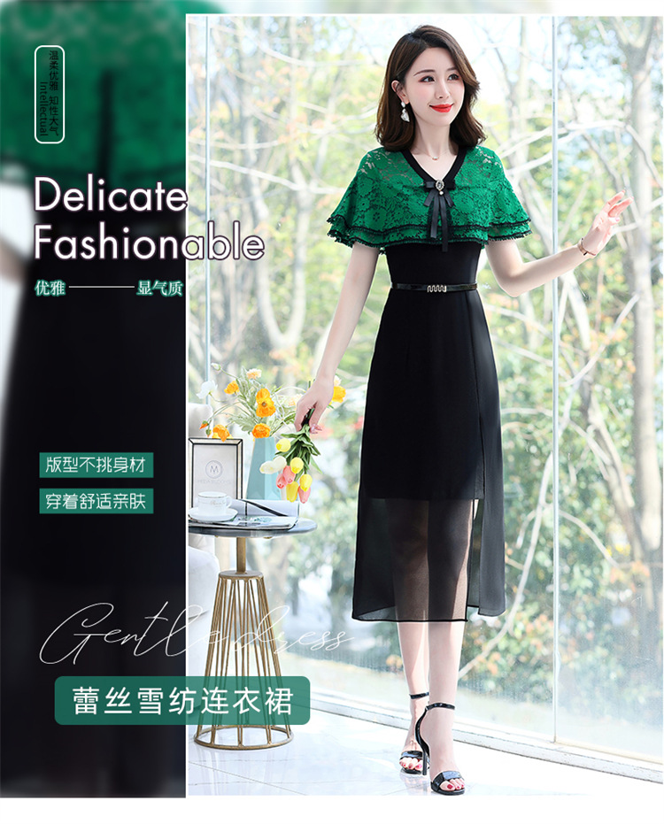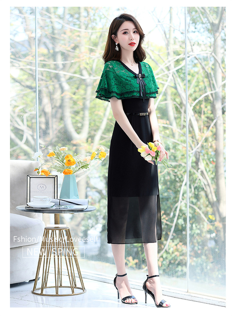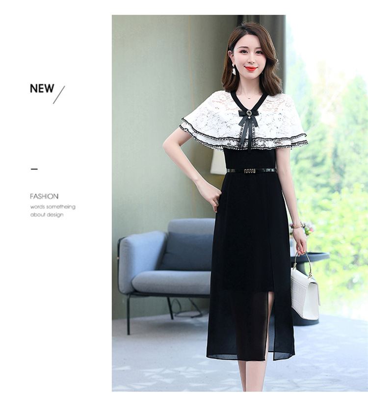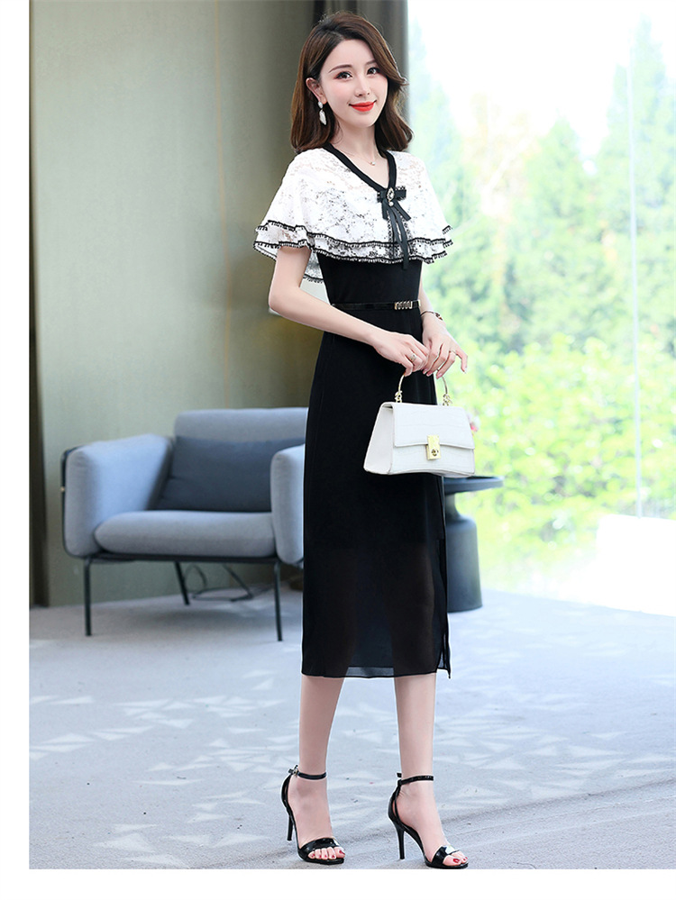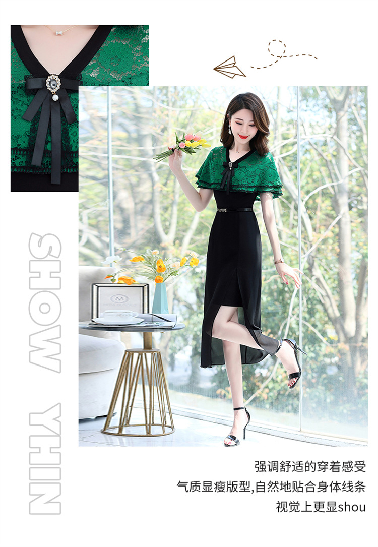 夏季新款连衣裙时尚气质优雅拼接女神范开叉中长裙子HR-WXC319
