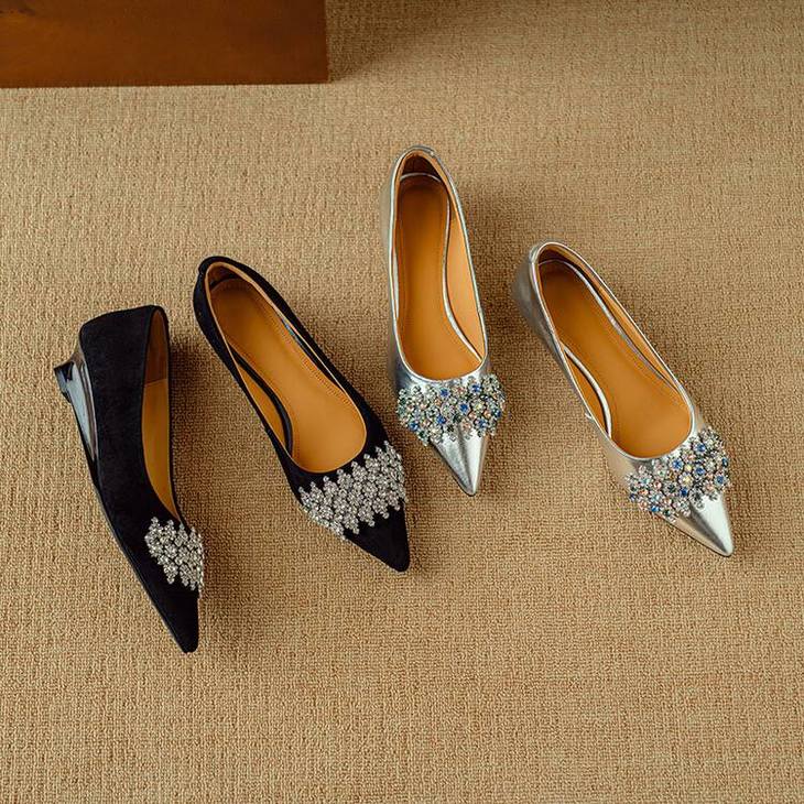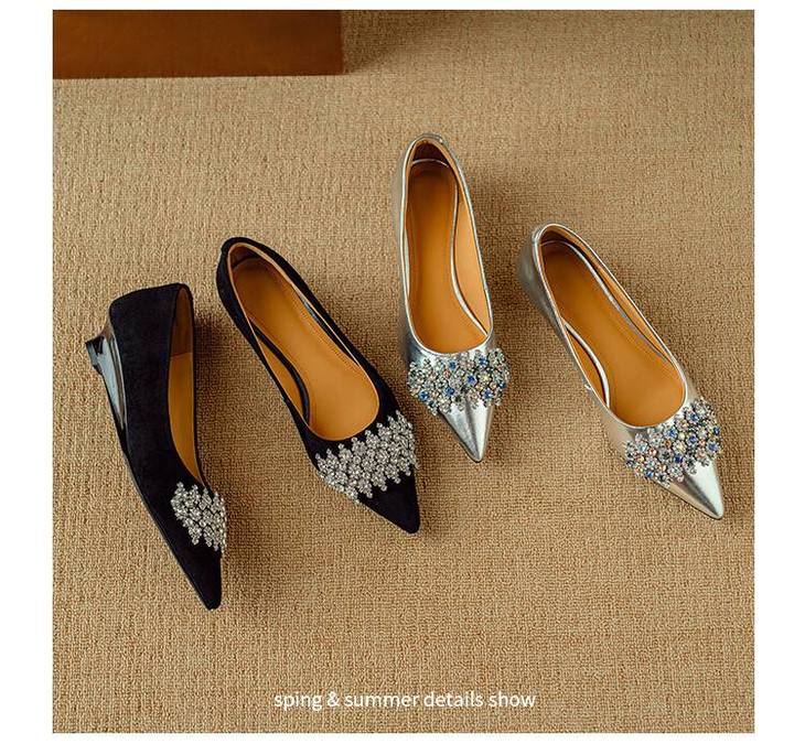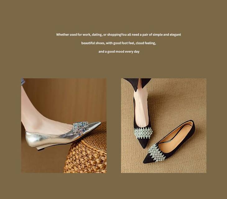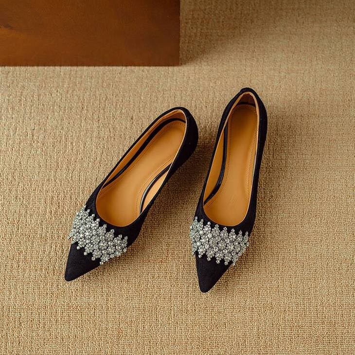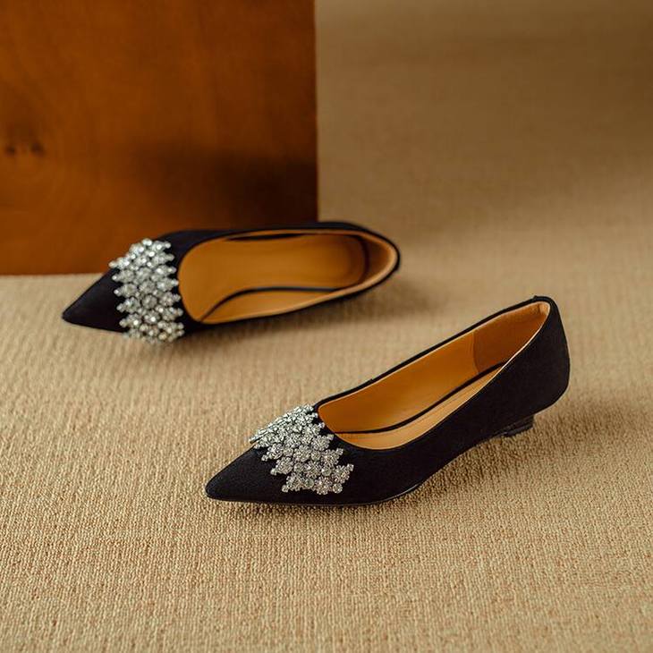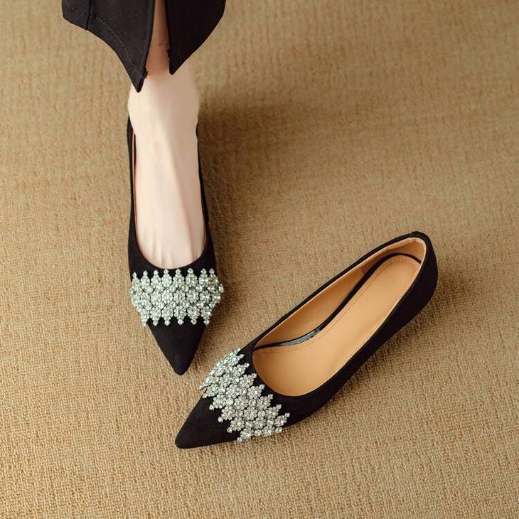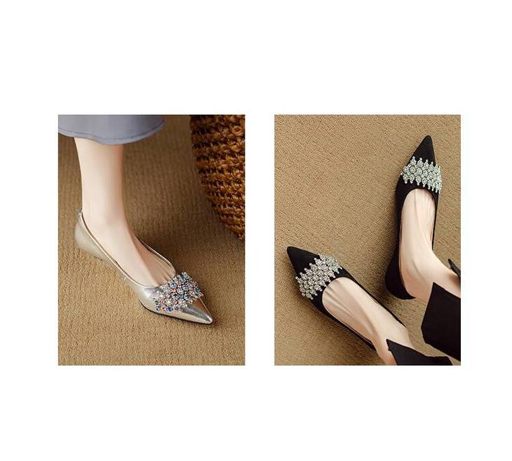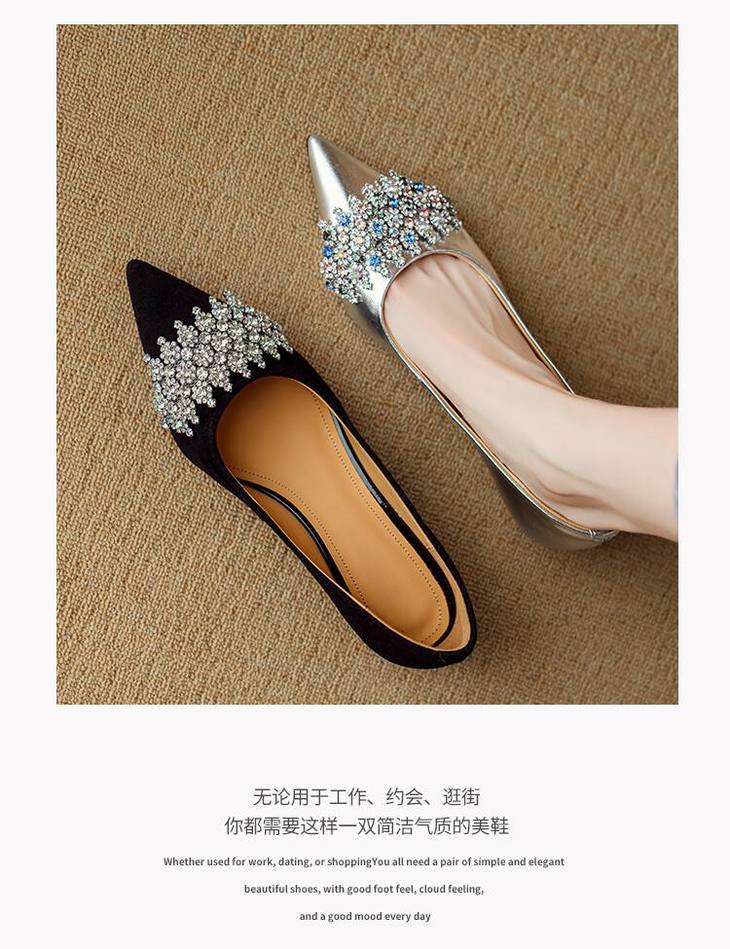 【预售5天】水钻方扣尖头浅口平底单鞋,百搭仙女风低跟鞋DB&M6019