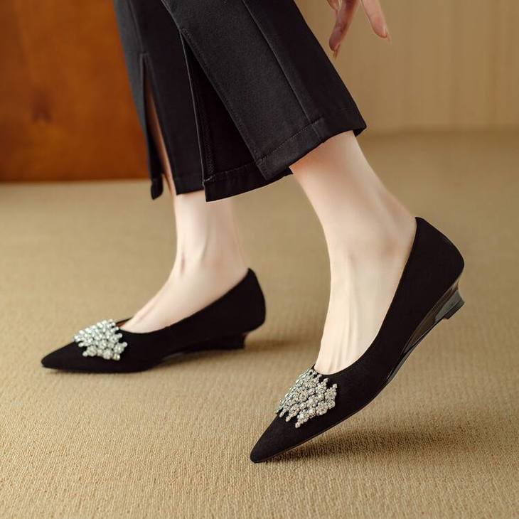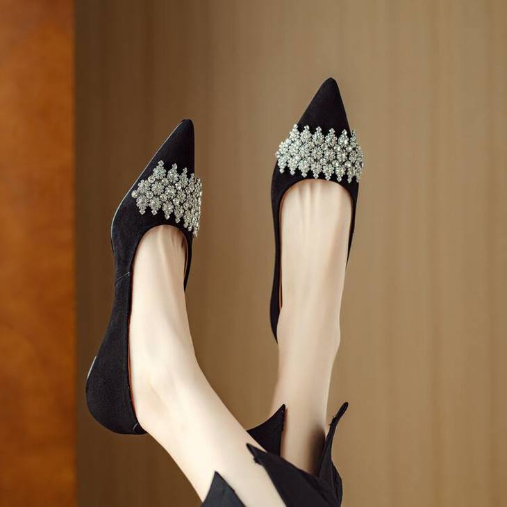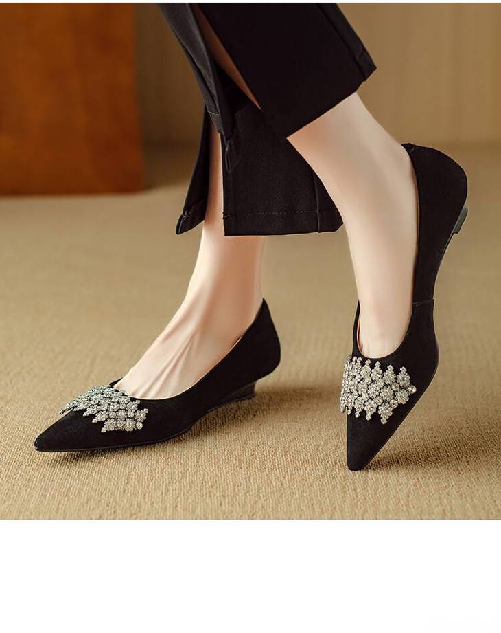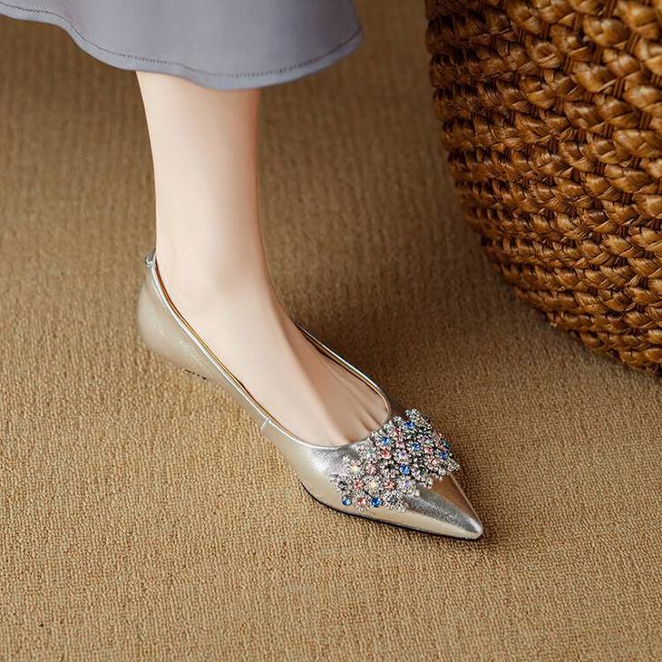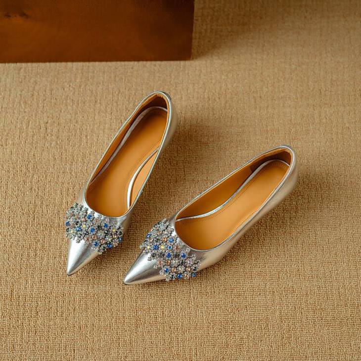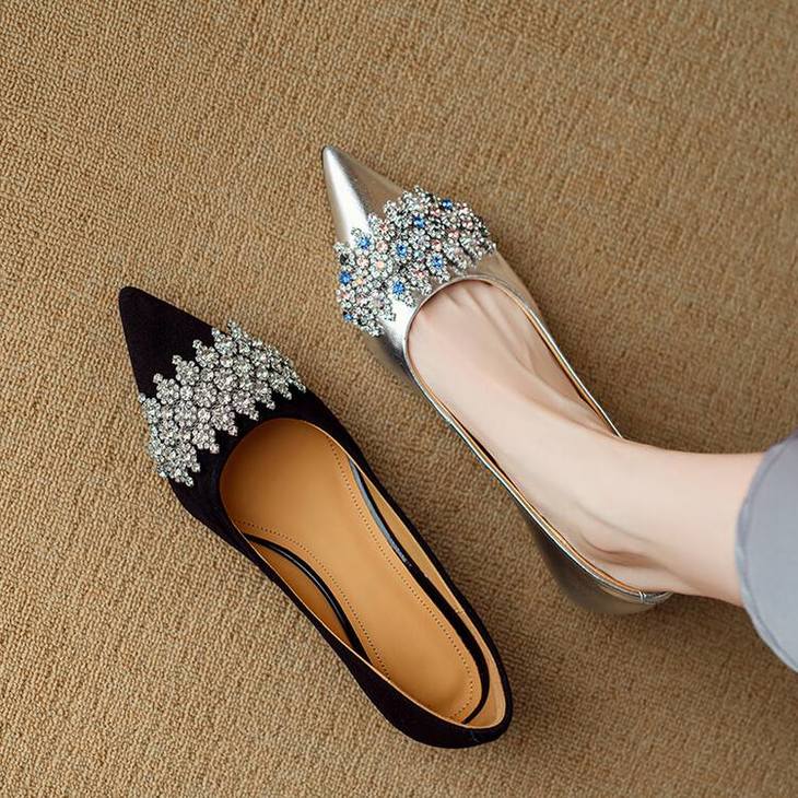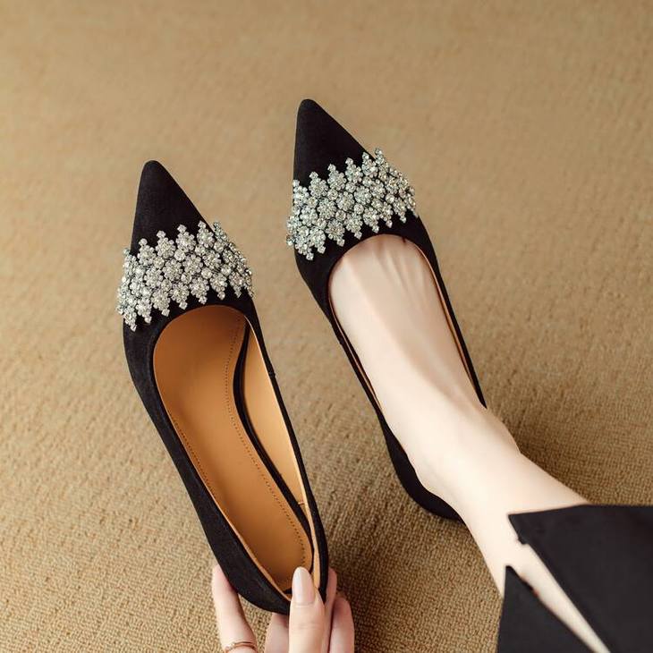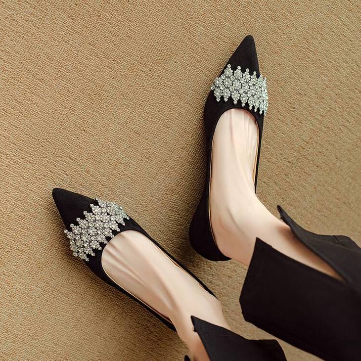 【预售5天】水钻方扣尖头浅口平底单鞋,百搭仙女风低跟鞋DB&M6019