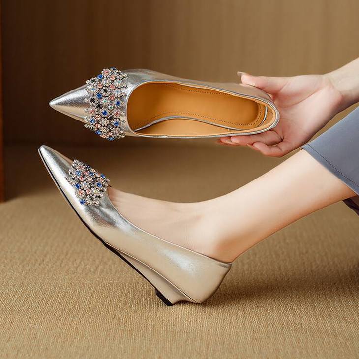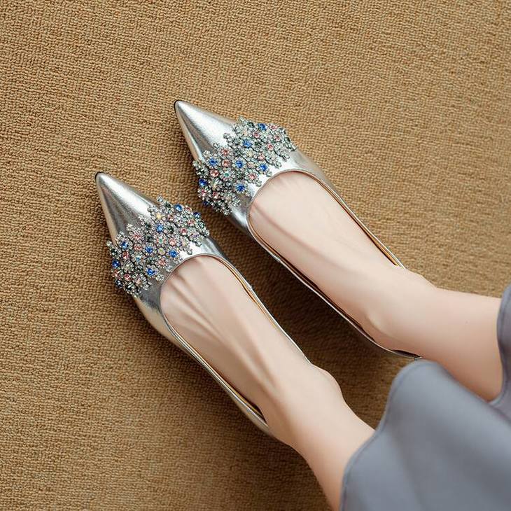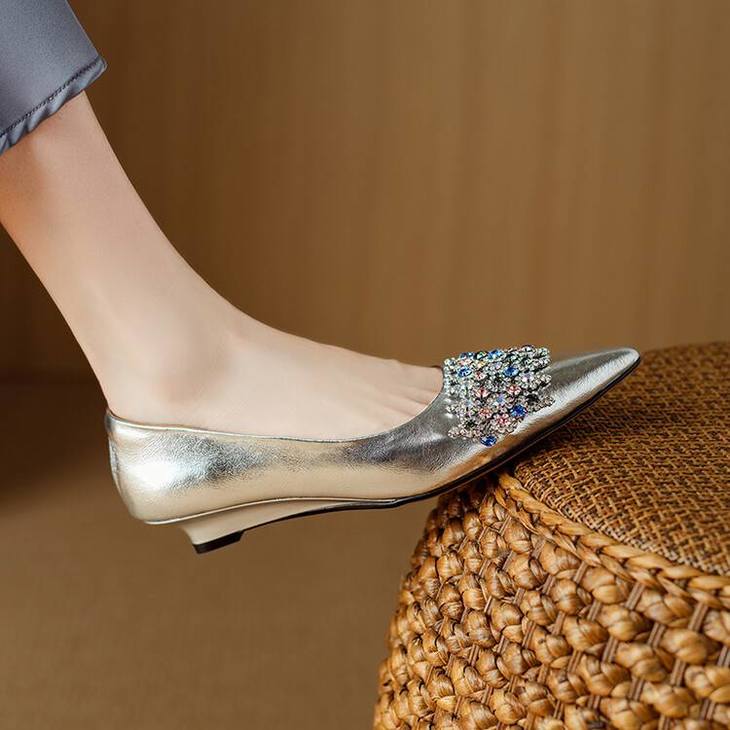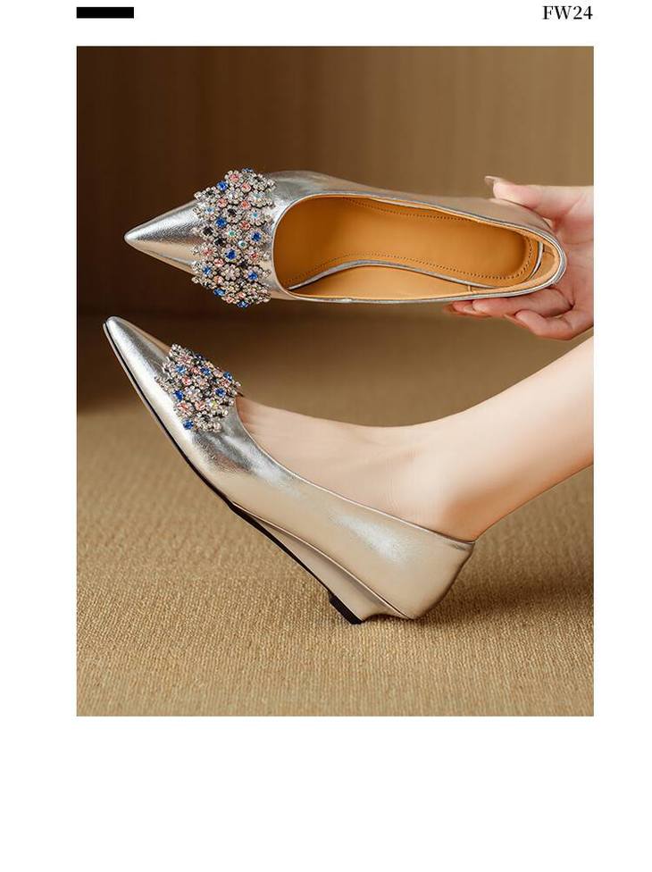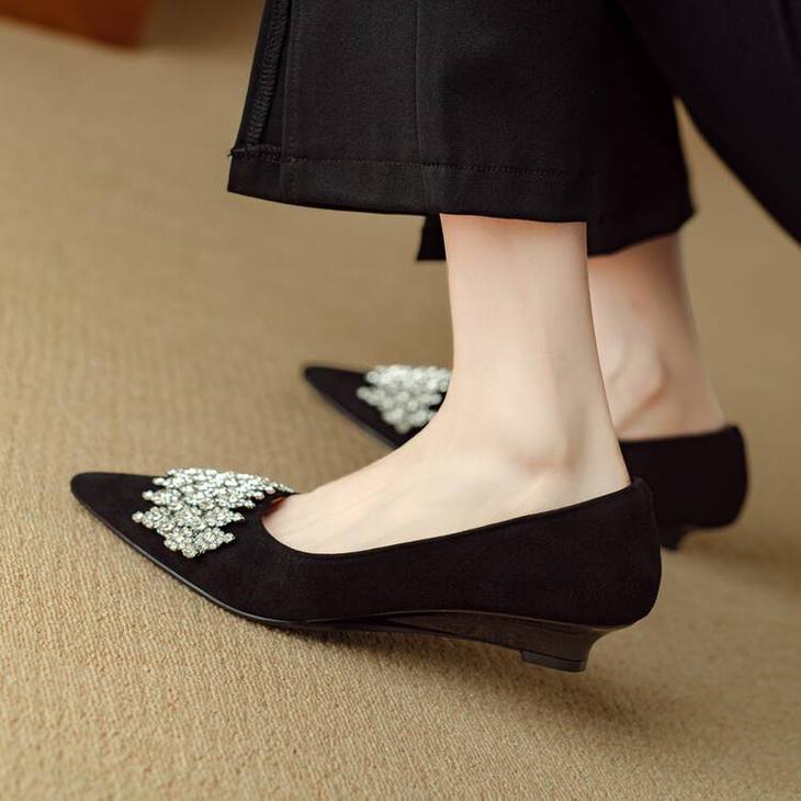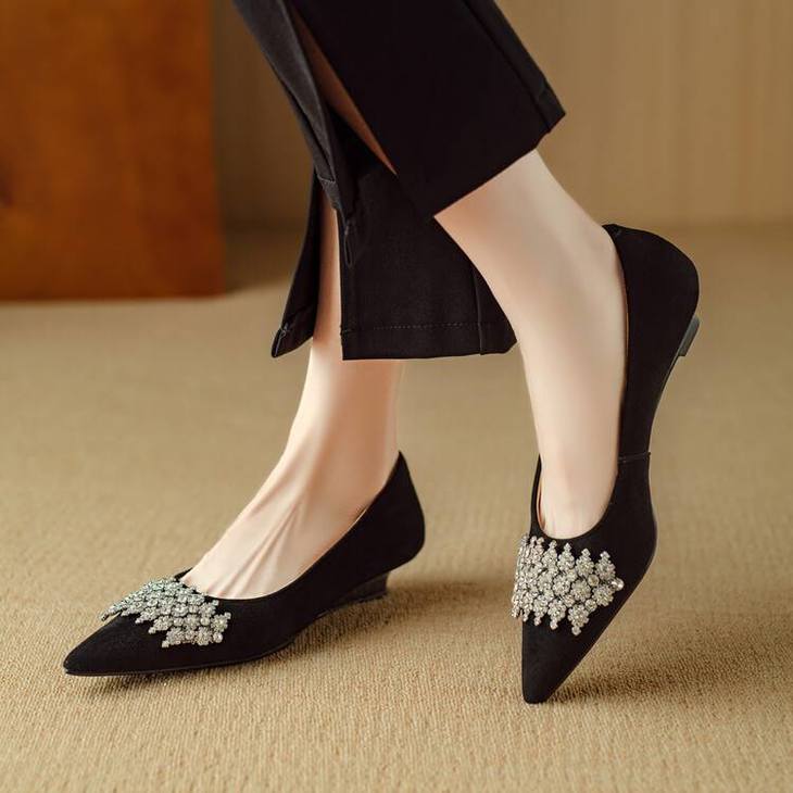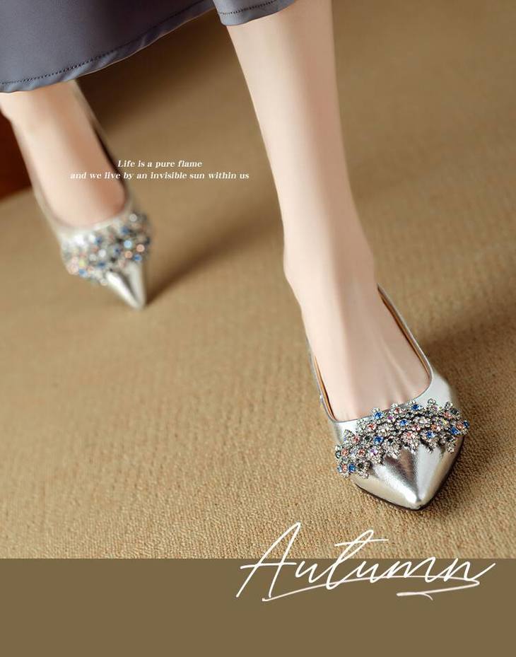 【预售5天】水钻方扣尖头浅口平底单鞋,百搭仙女风低跟鞋DB&M6019