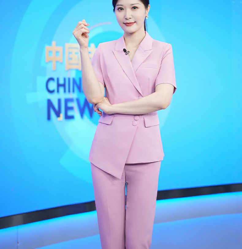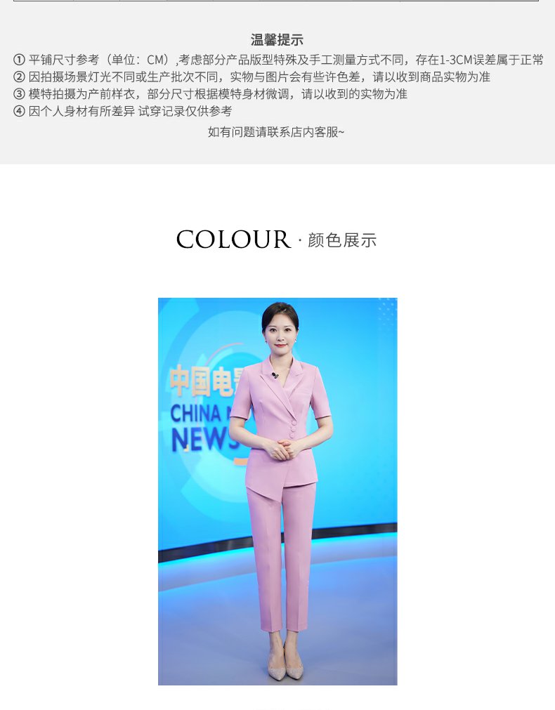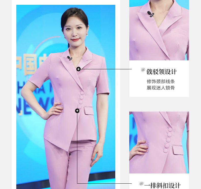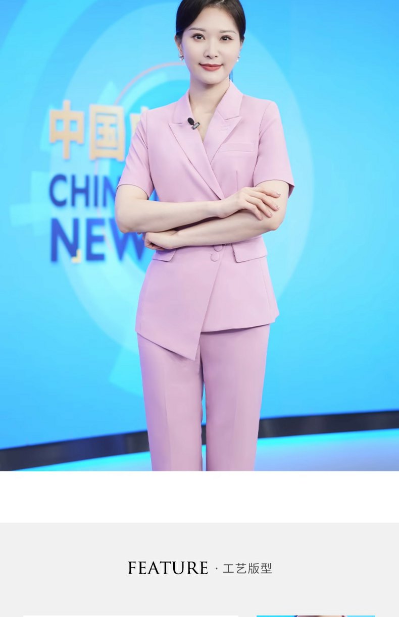 IWY/夏季新款短袖西装套装女粉色不规则主持人上镜正装西服套裤202002CP