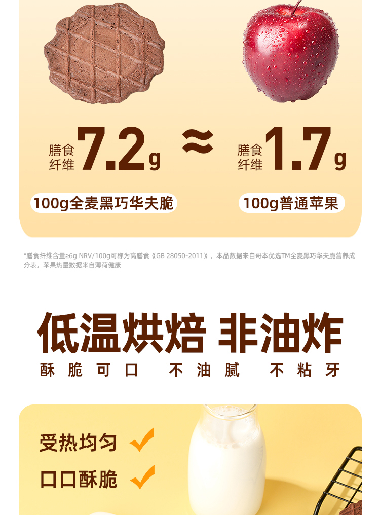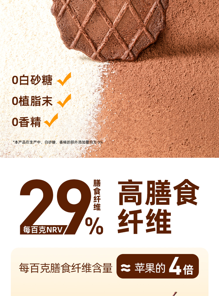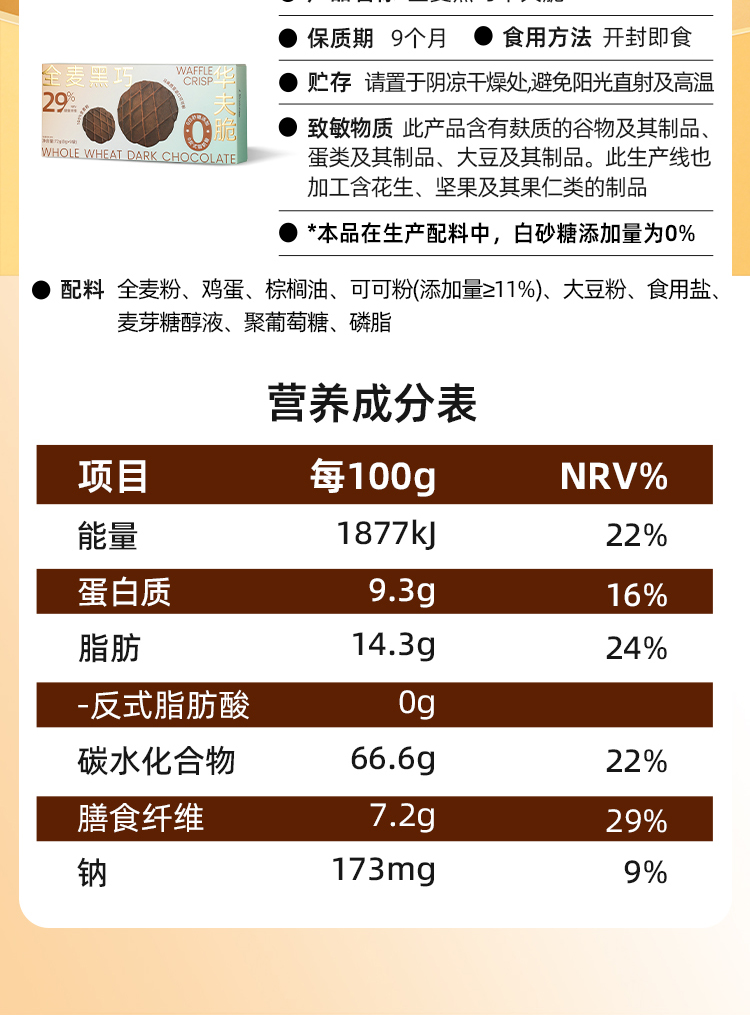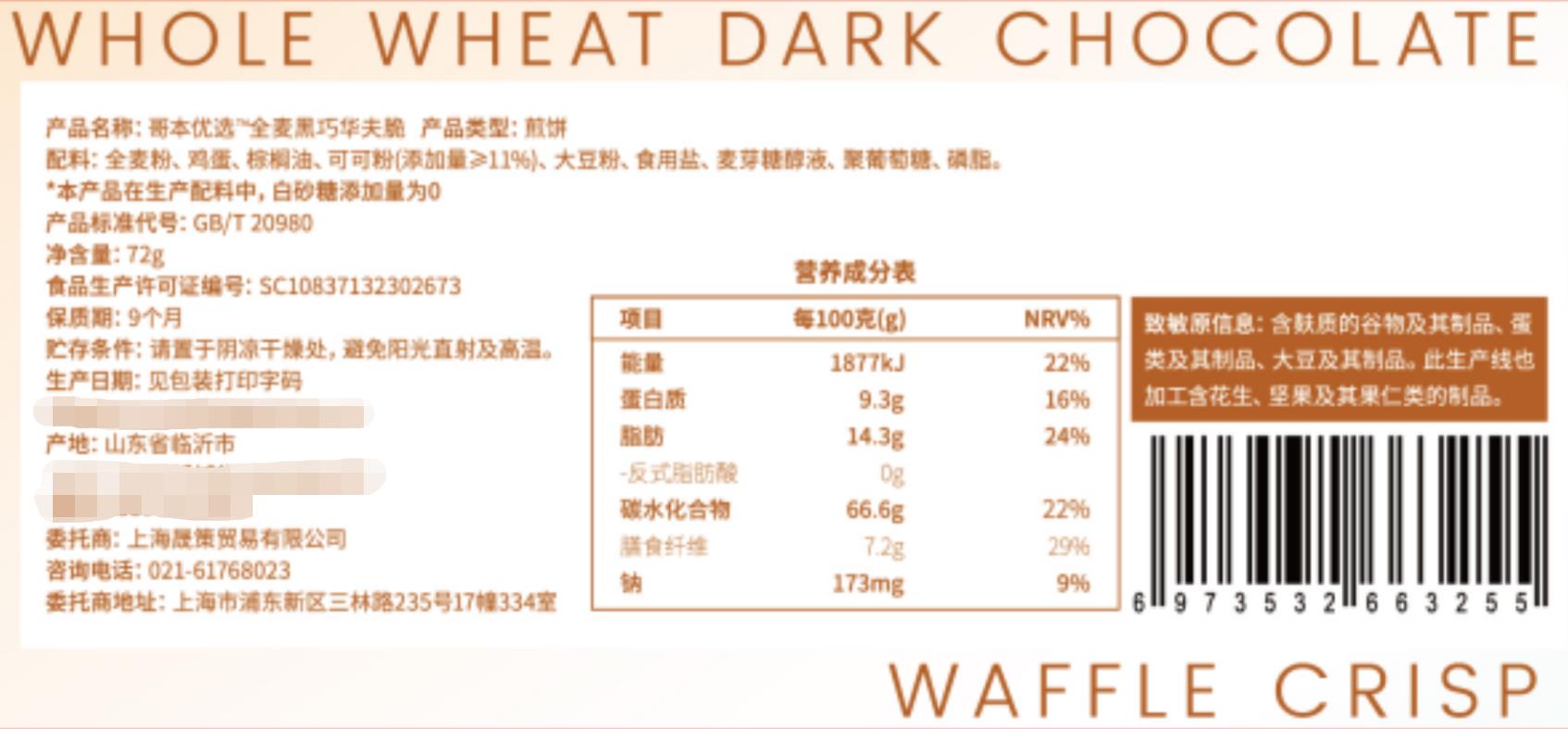 哥本全麦黑巧华夫脆 轻薄酥脆 可可浓醇 马来西亚进口可可粉 0小麦粉添加 0白砂糖添加