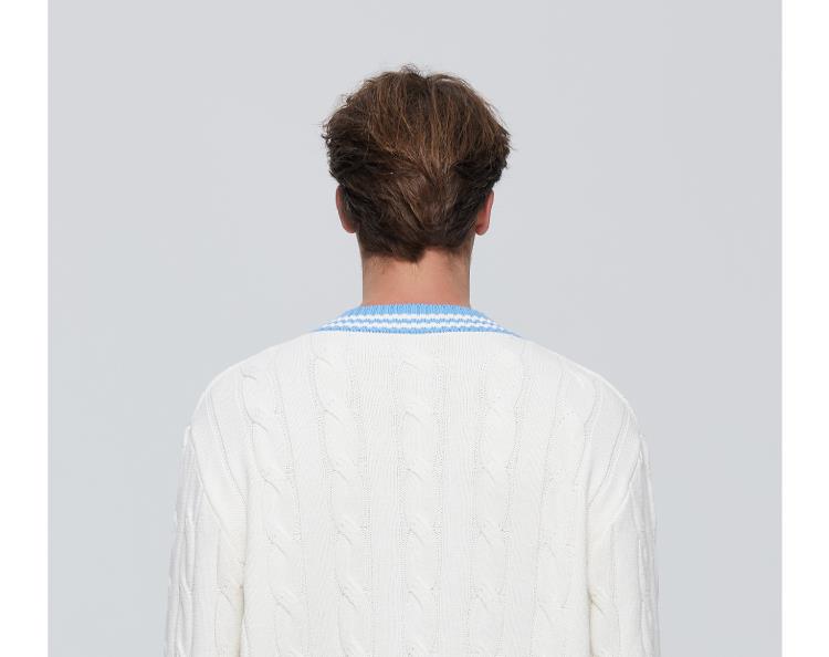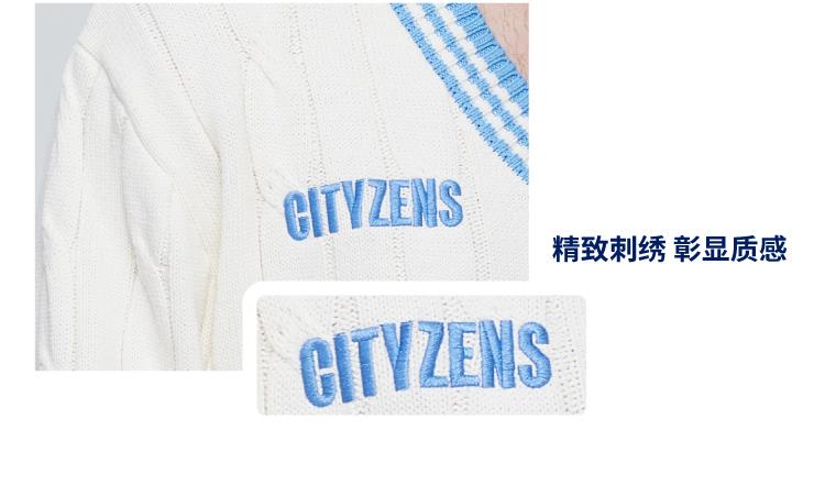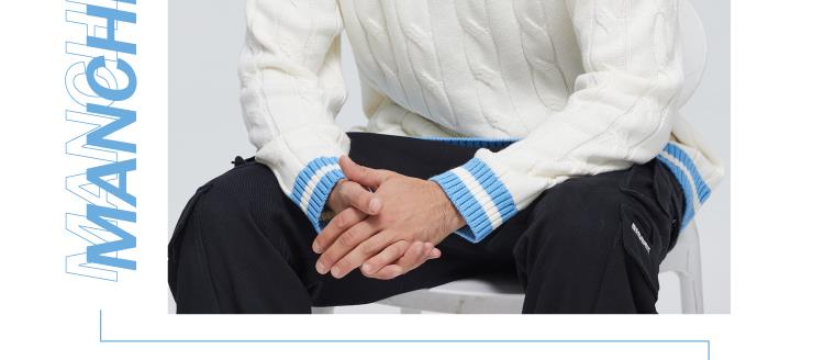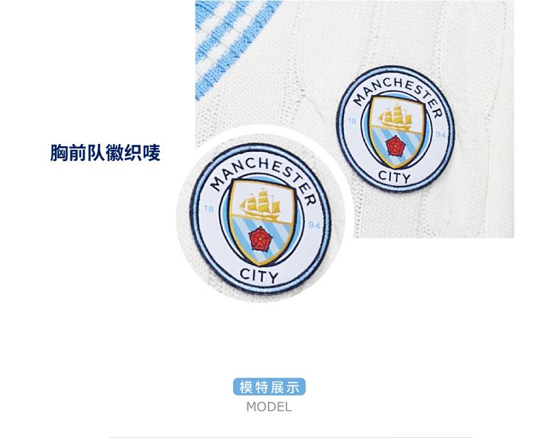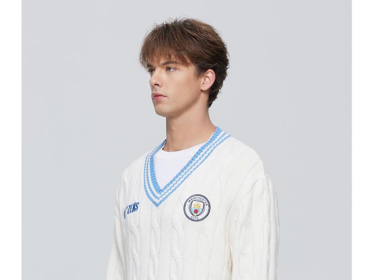 【官方正版】曼城俱乐部 | 蓝白拼接队徽提花V领休闲毛衣
