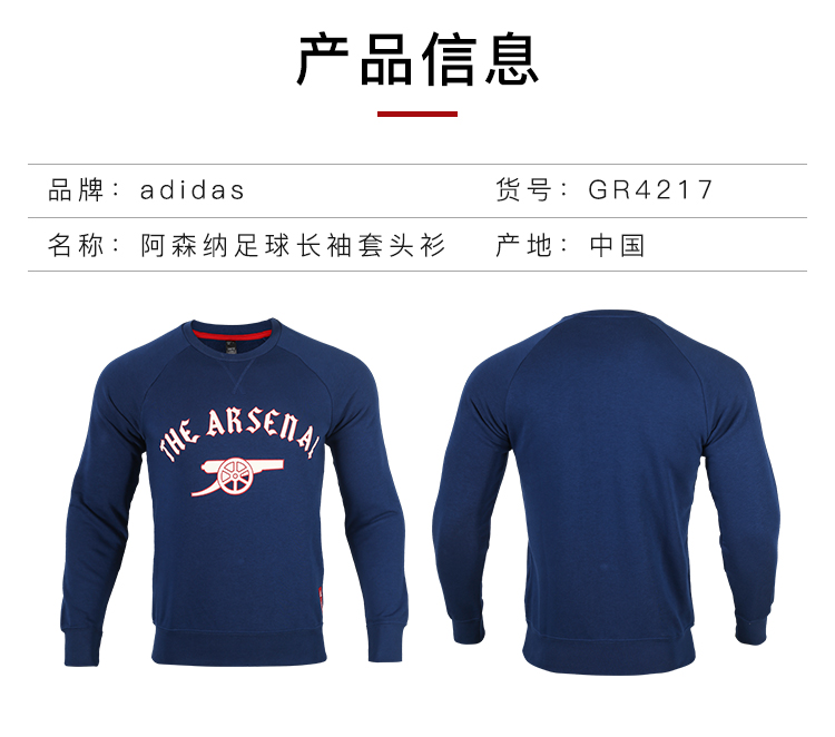 ADIDAS阿迪达斯阿森纳足球休闲长袖成人套头衫卫衣男GR4217