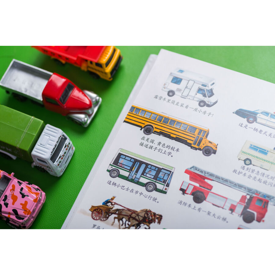 《交通工具》分册的内容涵盖:作业车的各种功能、车里运输了什么、火车的发展史、早期和现代的飞行器、海上的交通工具(船)、马路上的信号灯、交通指示牌,以及清除路障的迷宫游戏。