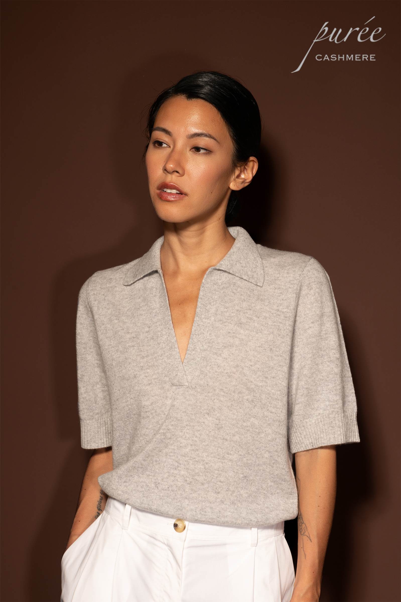 #1975「POLO SHORT SLEEVE」 100% CASHMERE 羊绒POLO领短袖
