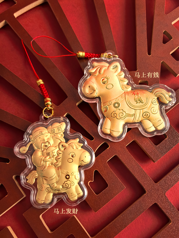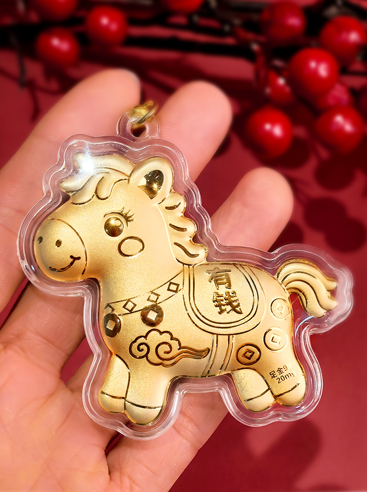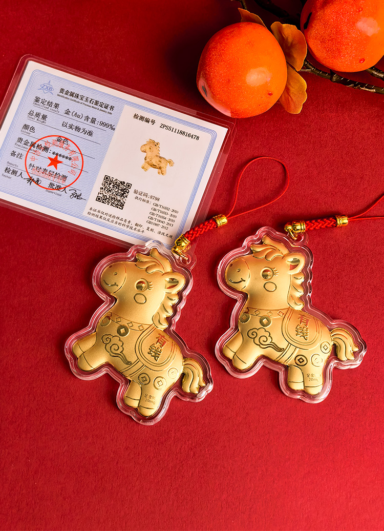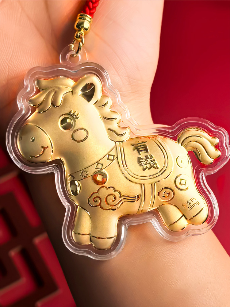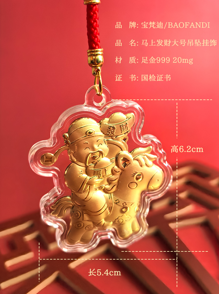 BAOFANDI宝梵迪马年{带证书}‘足金999’ 20mg马上有钱/暴富发财大号钥匙扣卡通生肖马包包饰品挂件BF