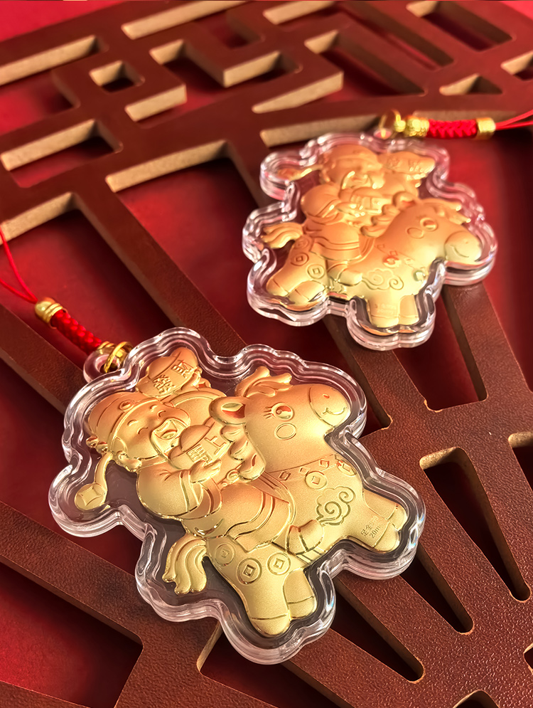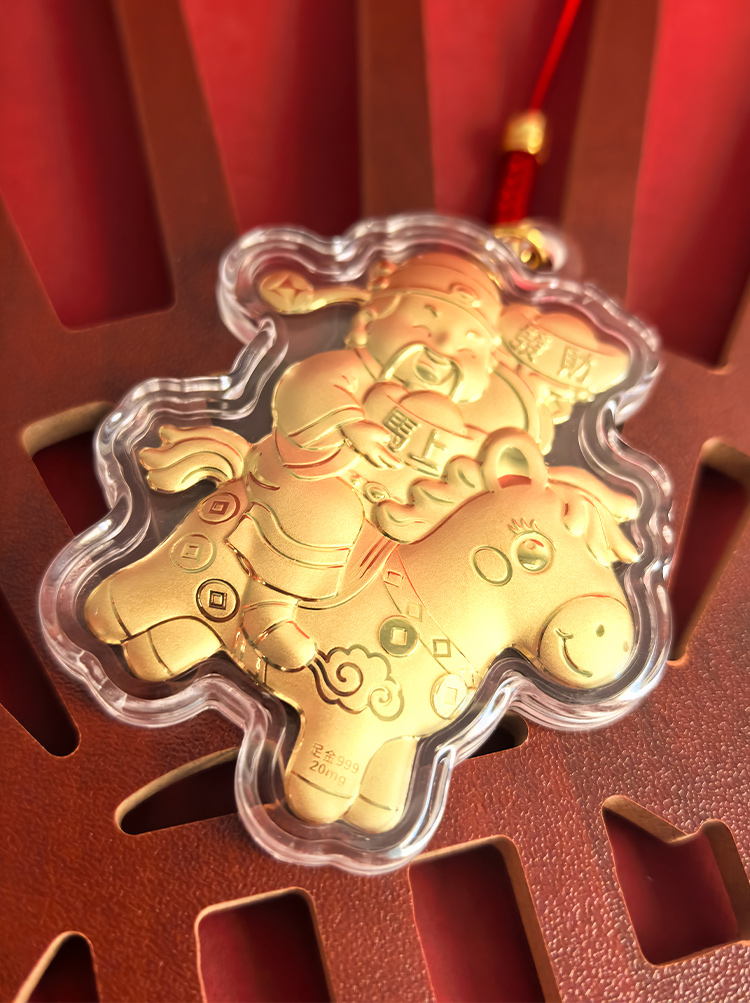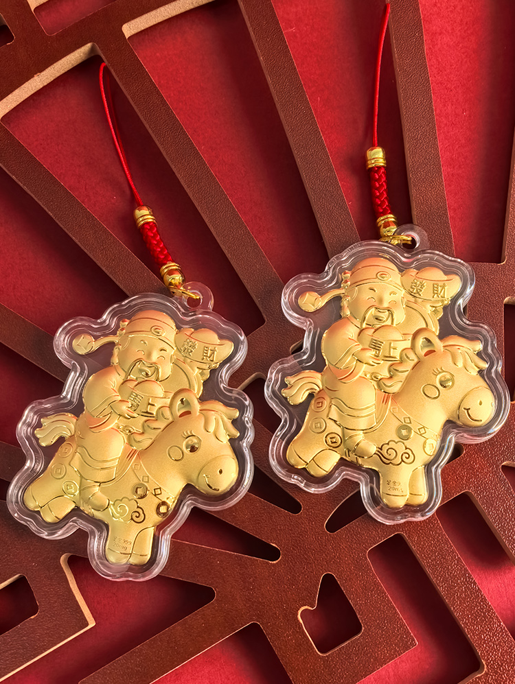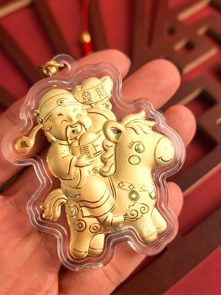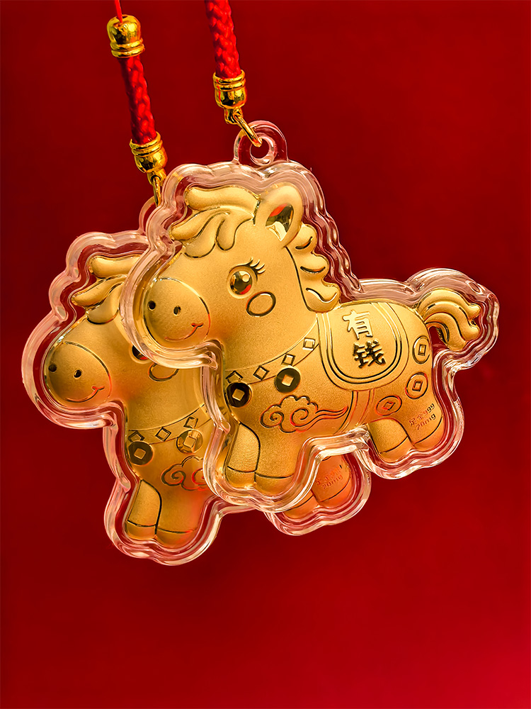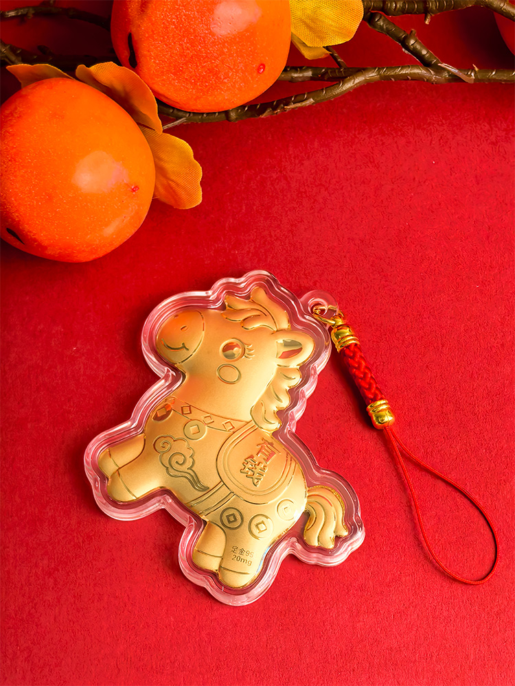 BAOFANDI宝梵迪马年{带证书}‘足金999’ 20mg马上有钱/暴富发财大号钥匙扣卡通生肖马包包饰品挂件BF