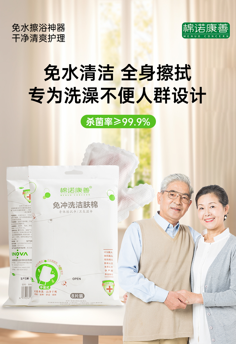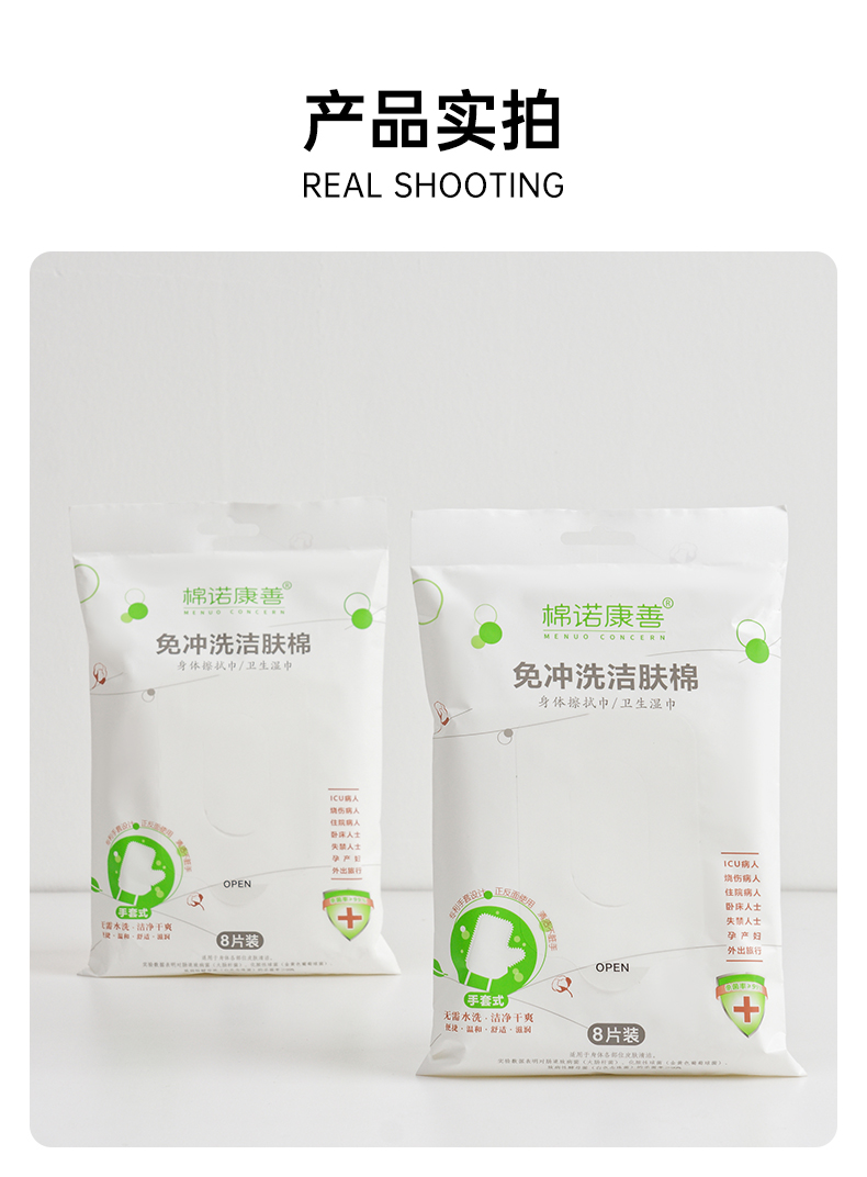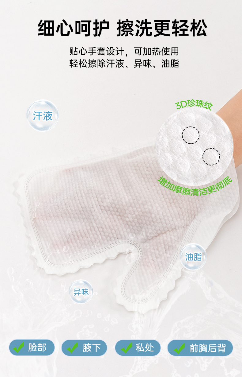 【到手2包=16片】 免冲洗洁肤棉 卧床手套卫生湿巾 擦屁股擦身体清洁老人护理湿纸巾