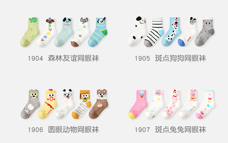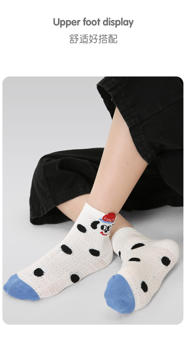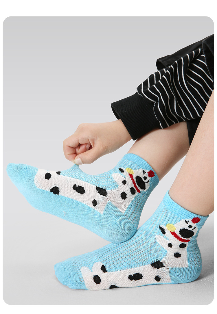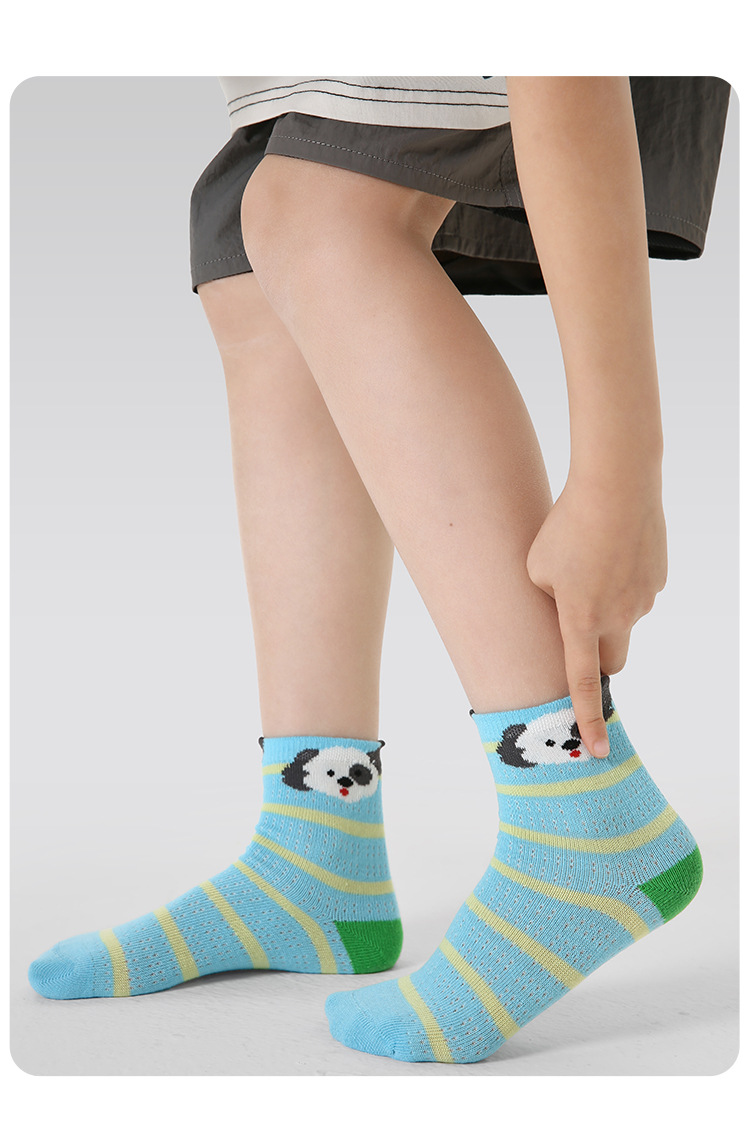 【醒粉福利19.9元5双】2025春夏薄款卡通小狗网眼袜 无骨精梳棉透气童袜