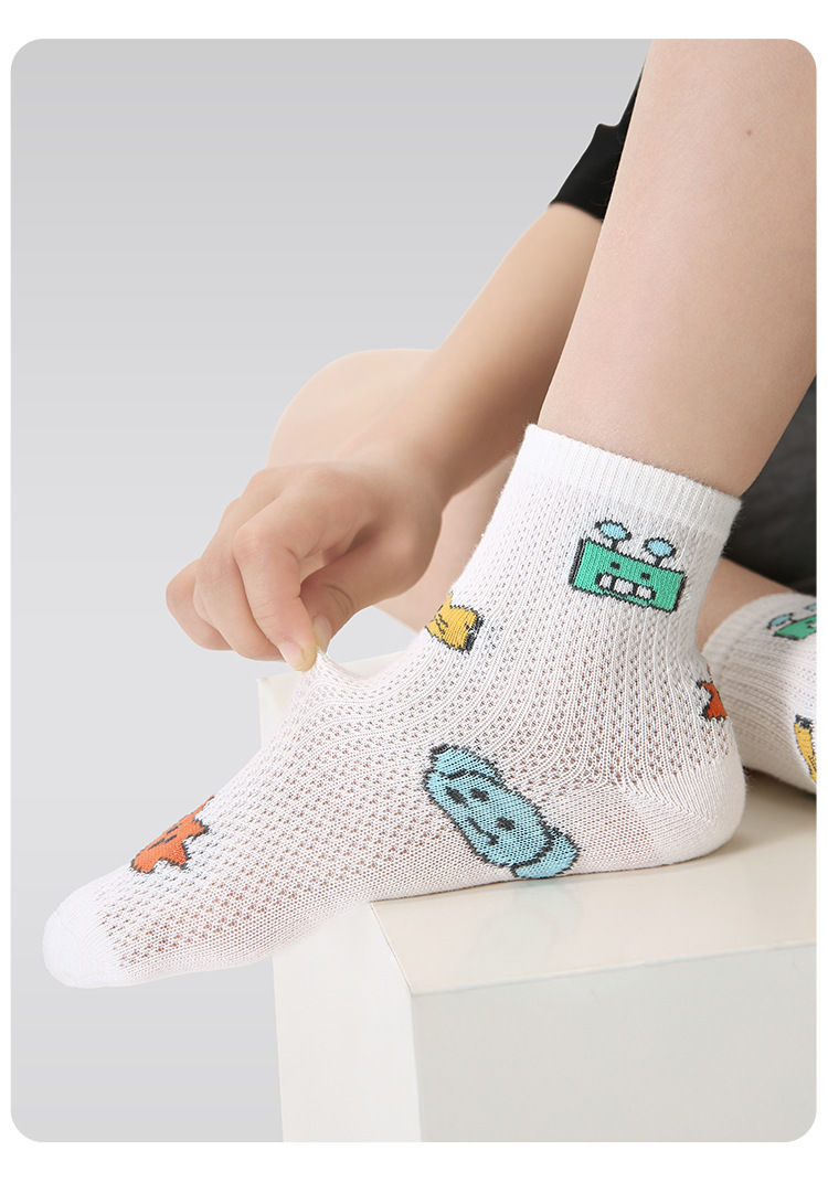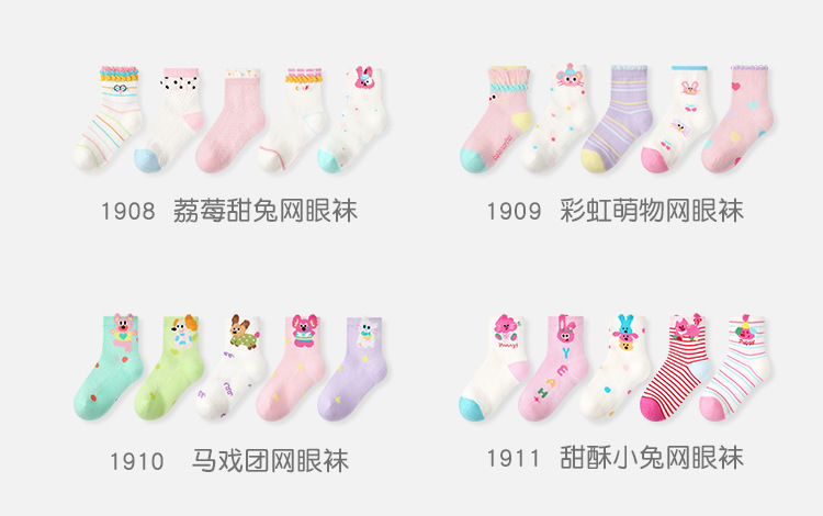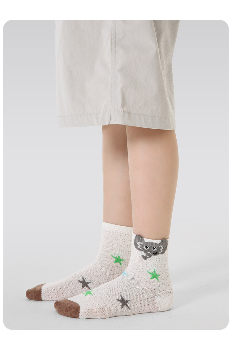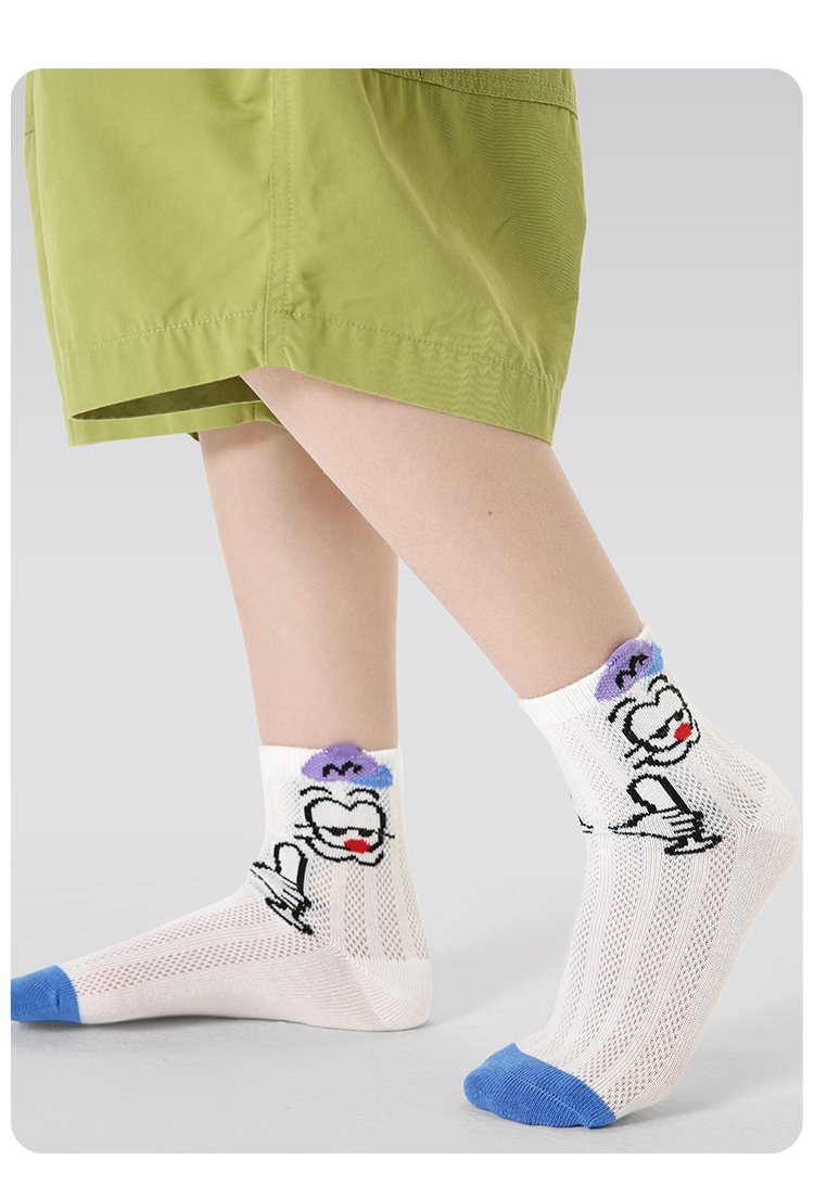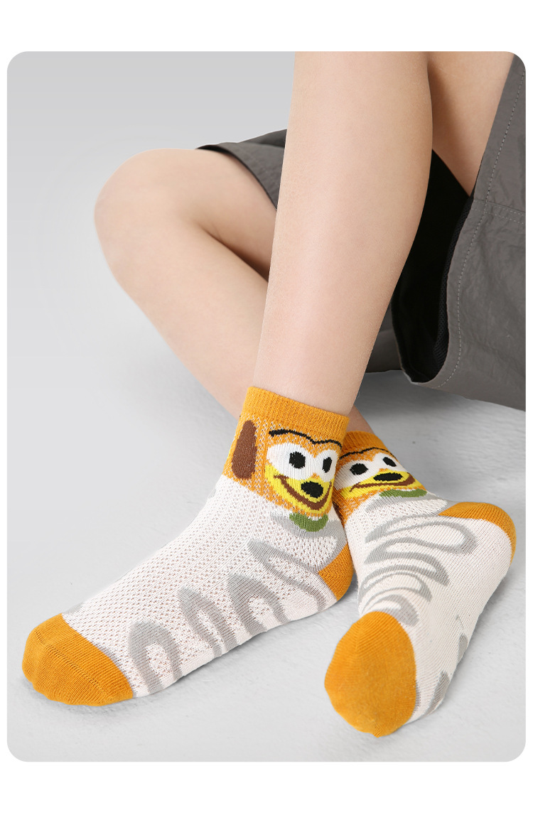 【醒粉福利19.9元5双】2025春夏薄款卡通小狗网眼袜 无骨精梳棉透气童袜