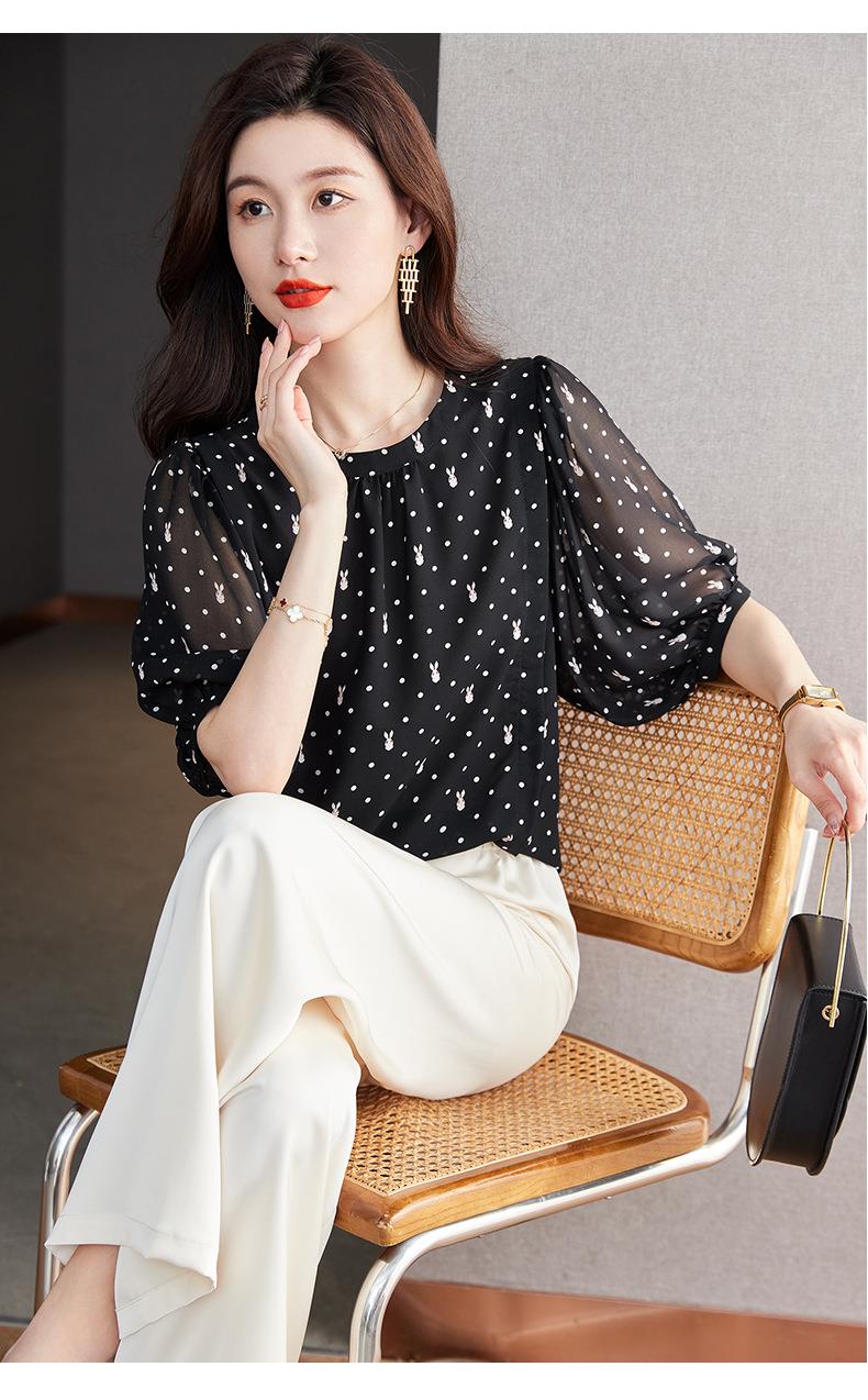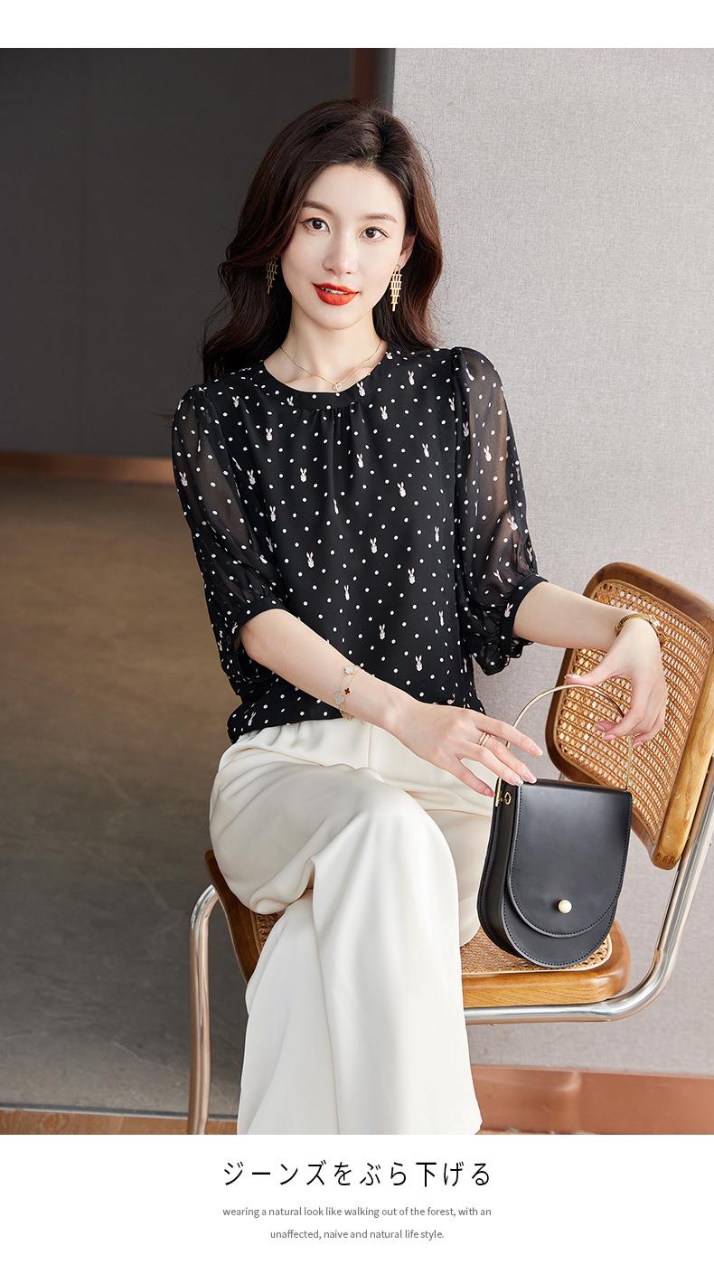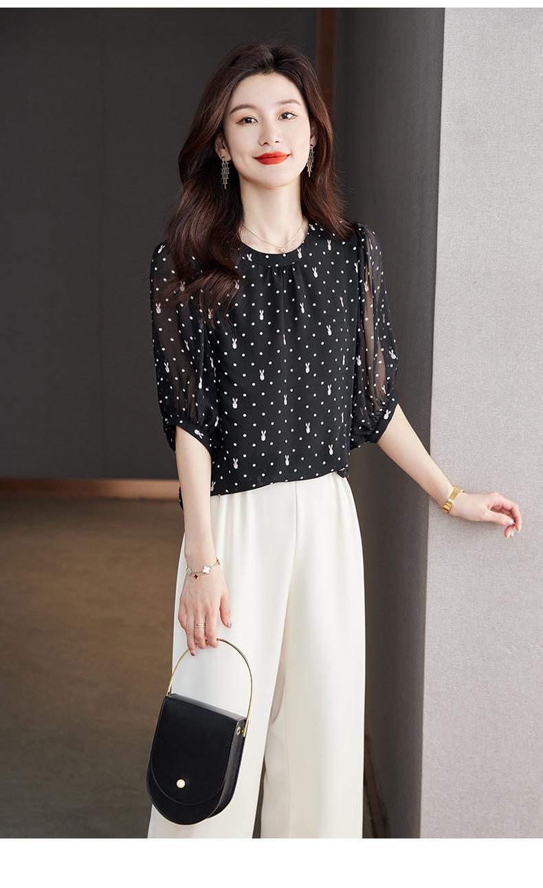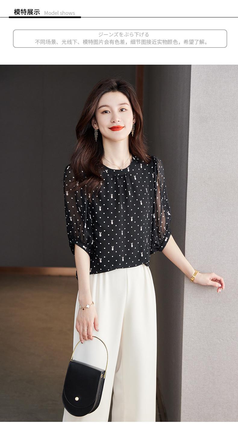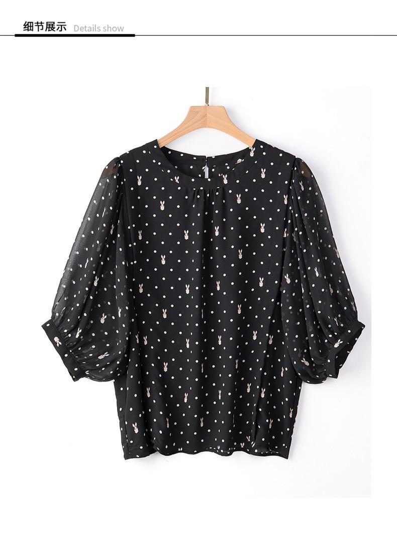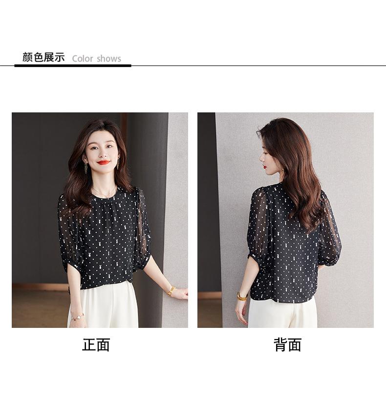 2023夏季新款雪纺衫五分袖衬衫女大码T恤女圆领小衫5023