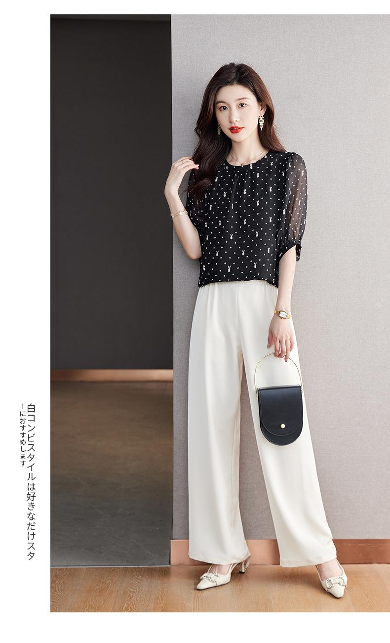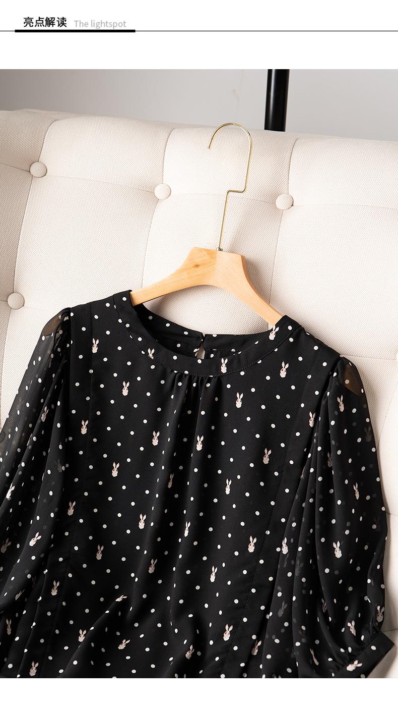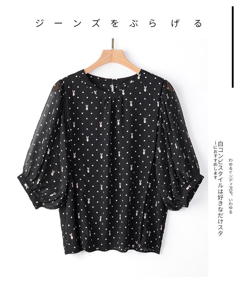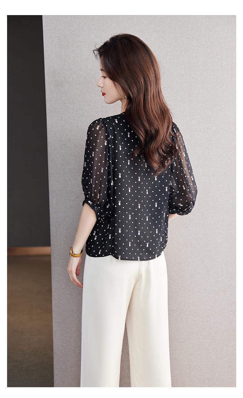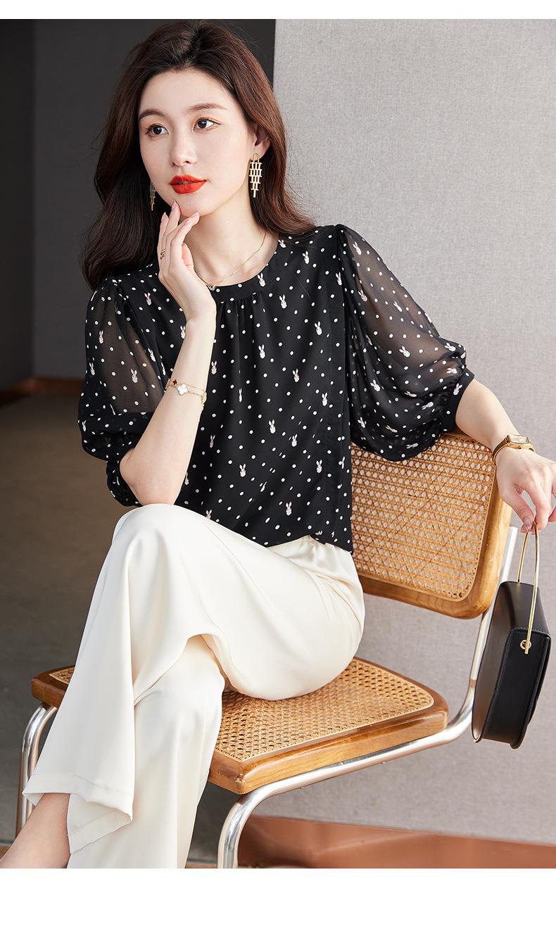 2023夏季新款雪纺衫五分袖衬衫女大码T恤女圆领小衫5023