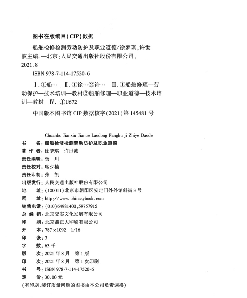 书名:船舶检修检测劳动防护及职业道德 船舶检修检测服务人员培训教材丛书