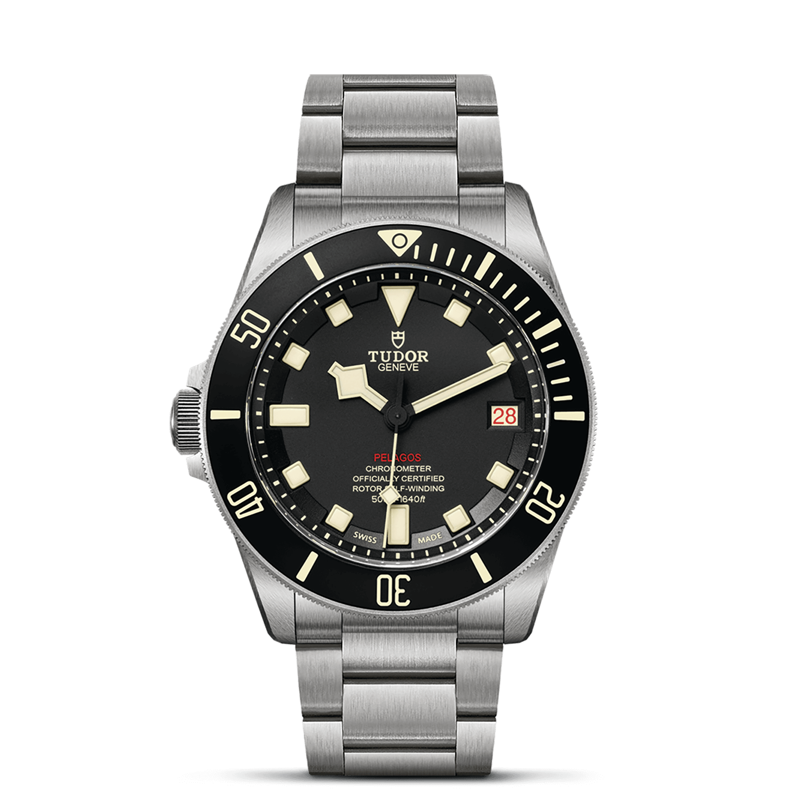 钛金属表带,配摺扣及保险扣,钢摺扣内置由帝舵表研发、并获得专利的自动调节弹簧装置