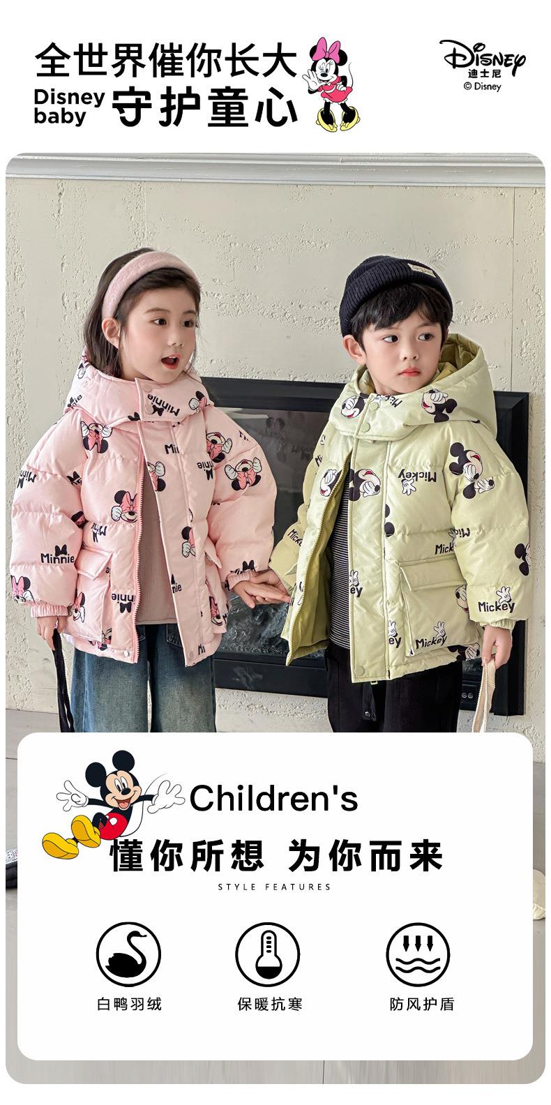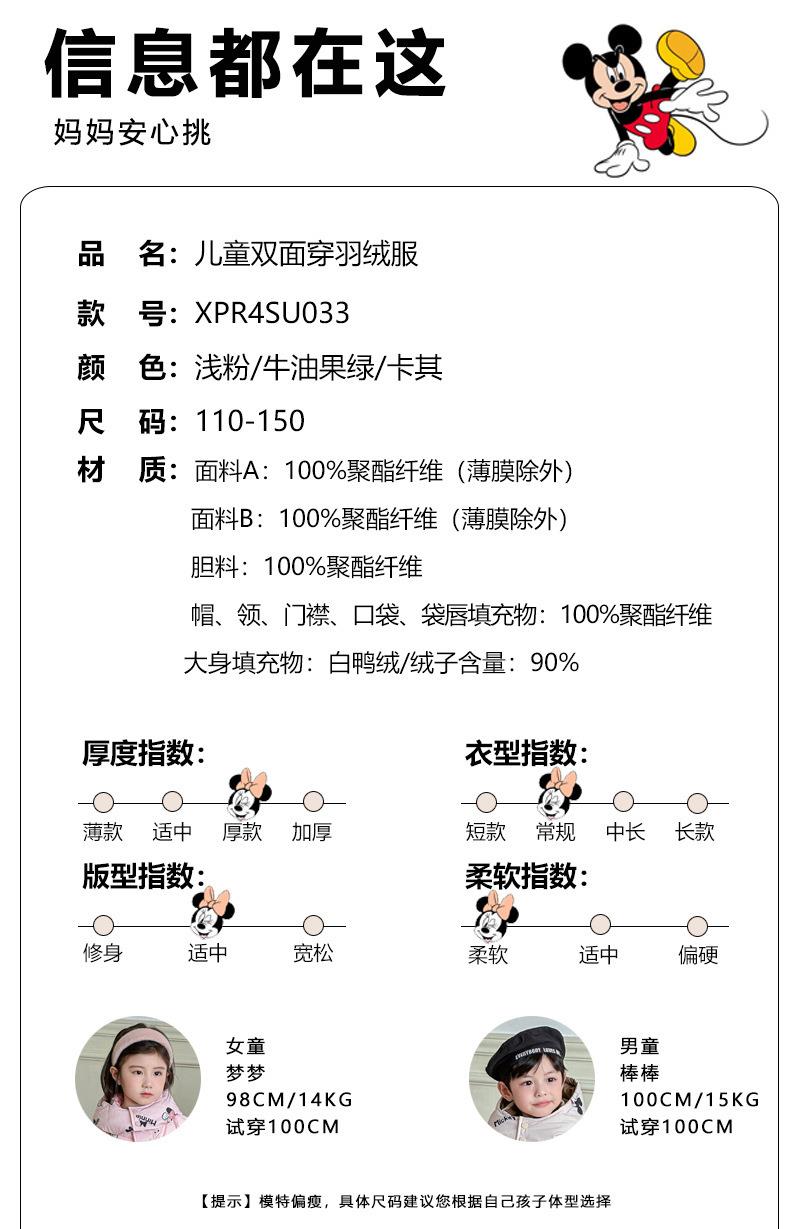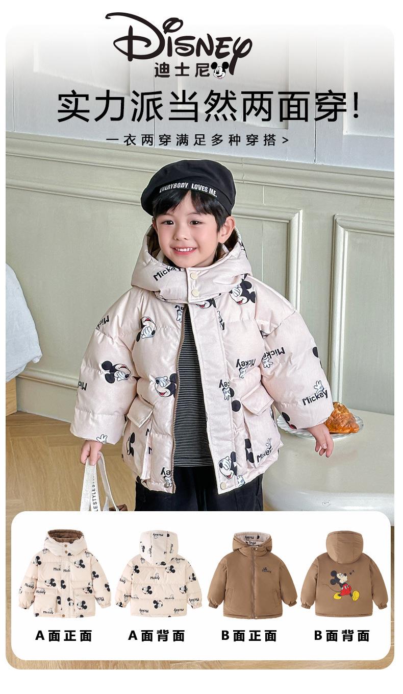 迪士尼儿童双面穿90白鸭绒羽绒服加厚连帽外套韩版新款中小童冬装